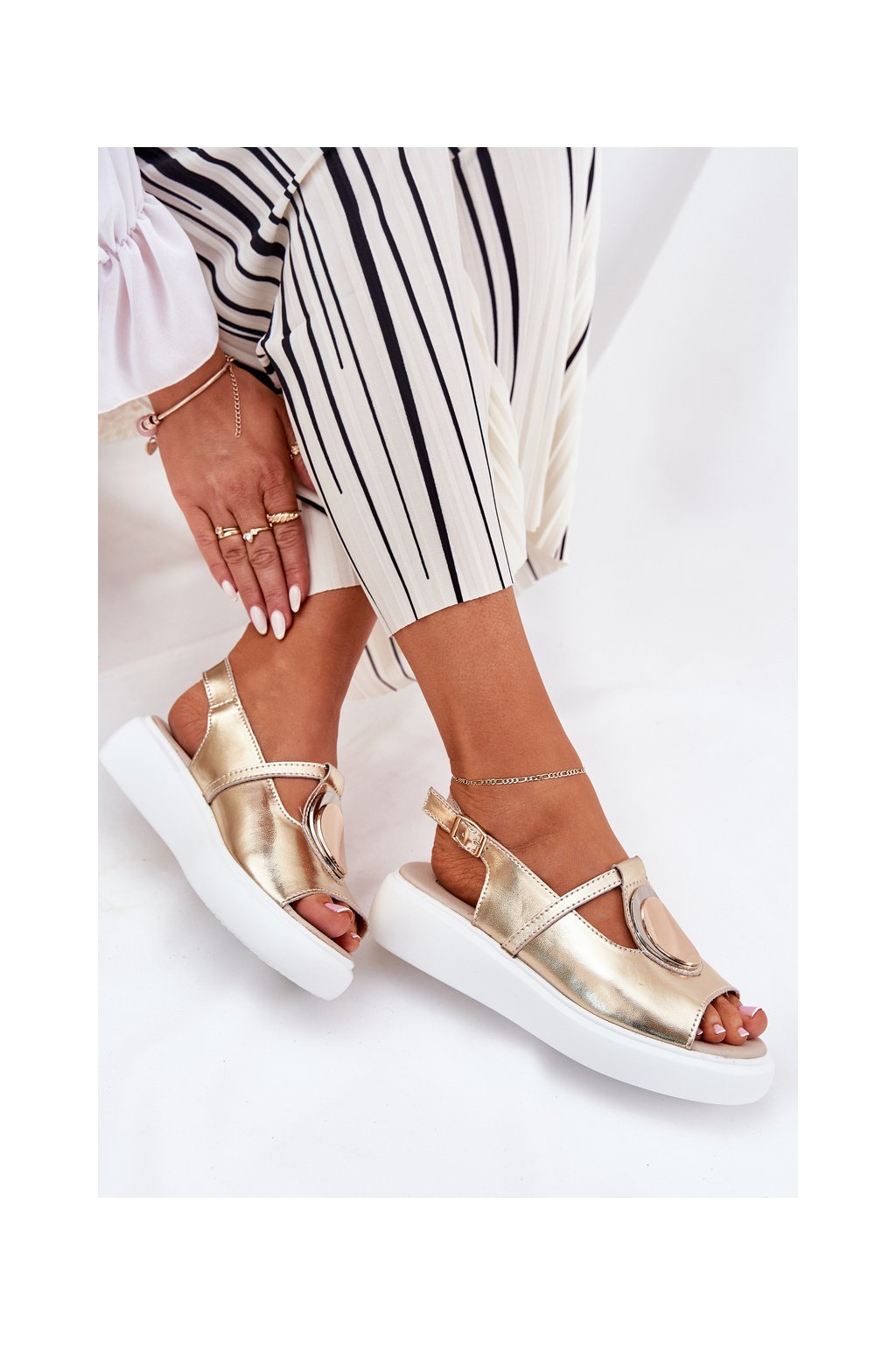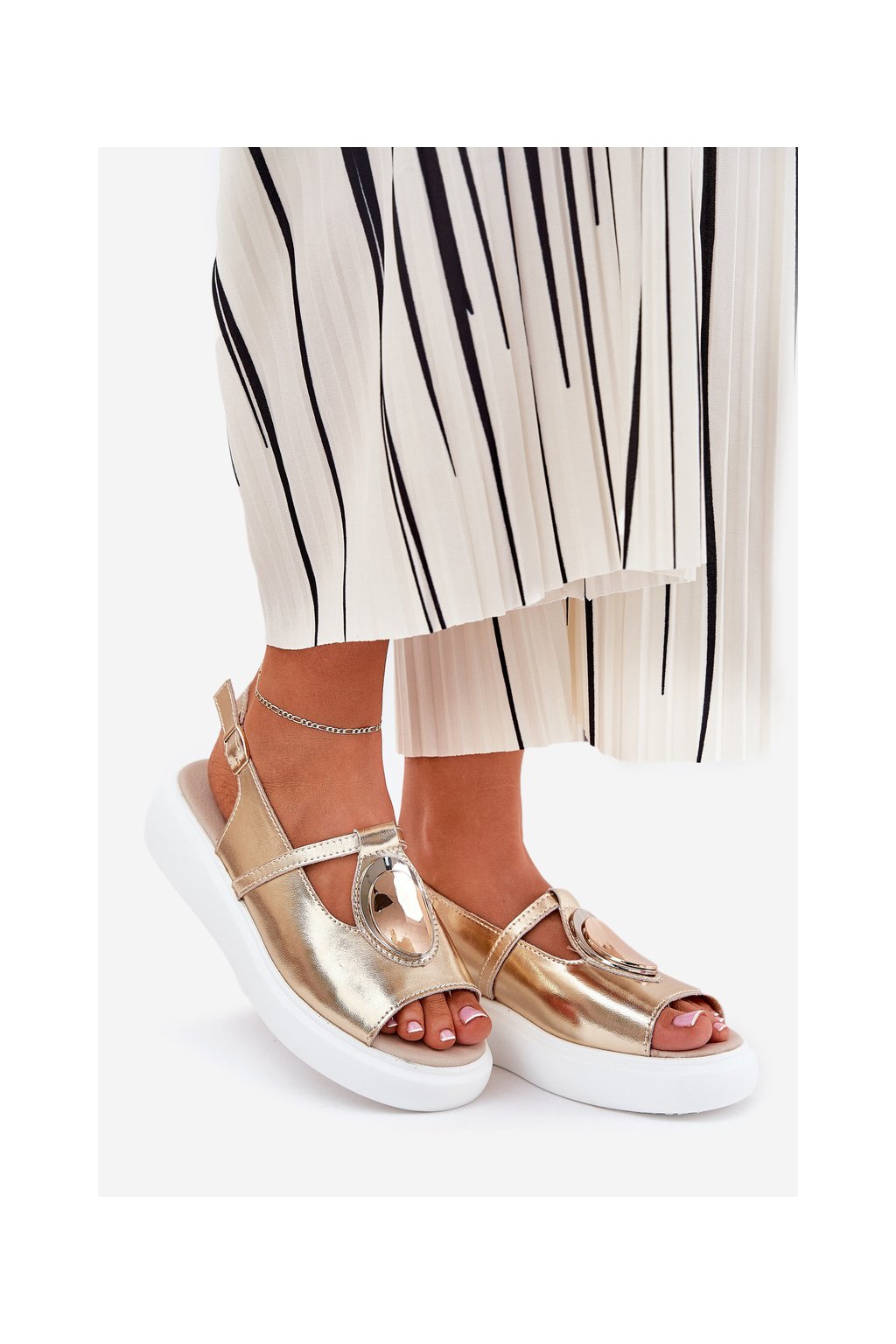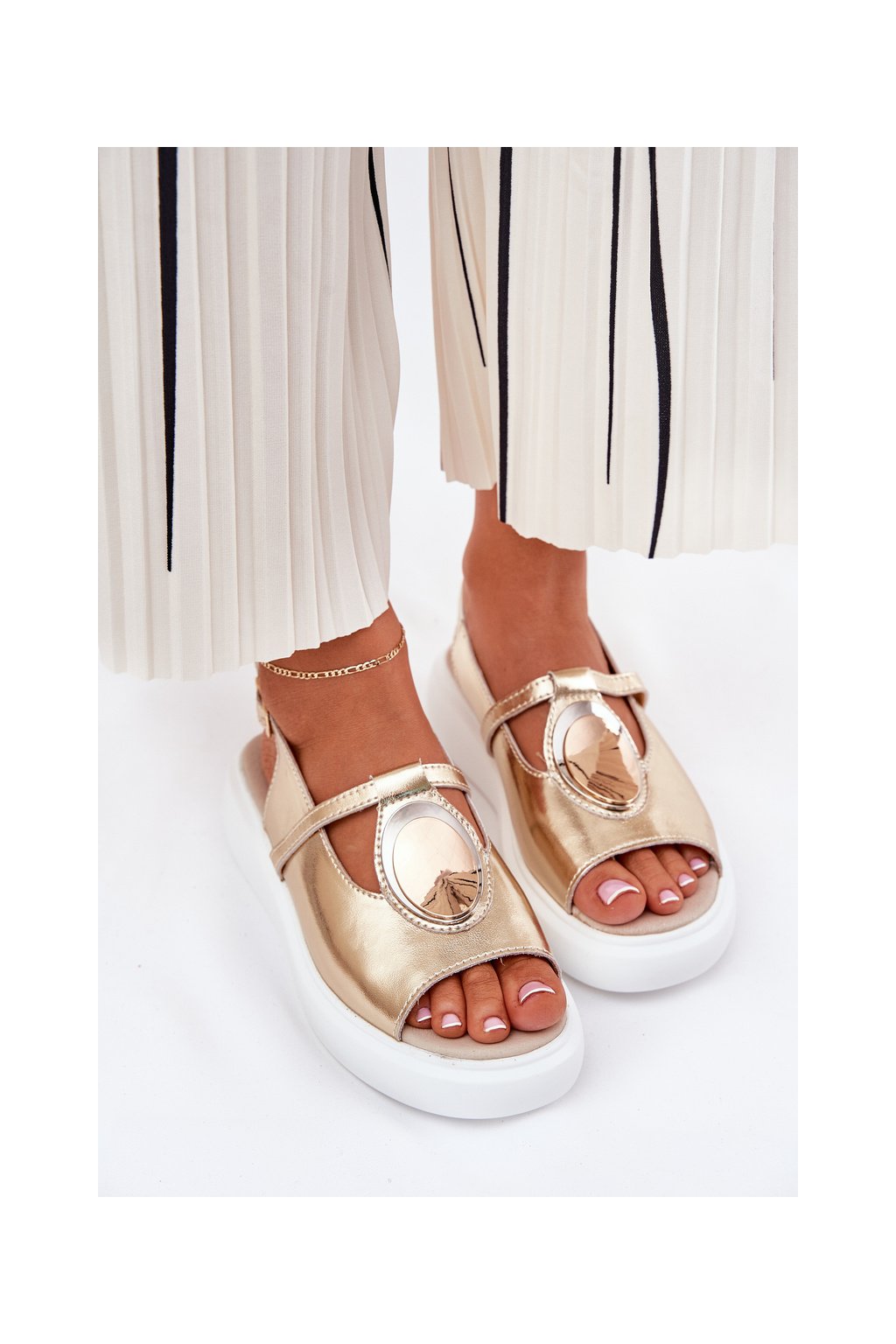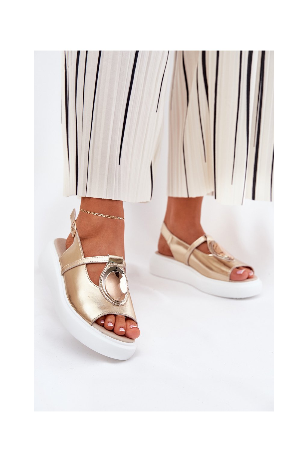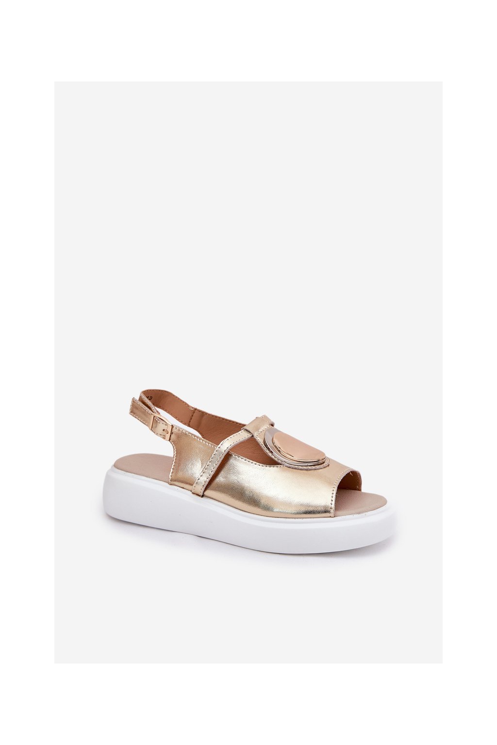 Zlaté dámske kožené sandále na platforme a klinčeku S.Barski GR51-603 GOLD