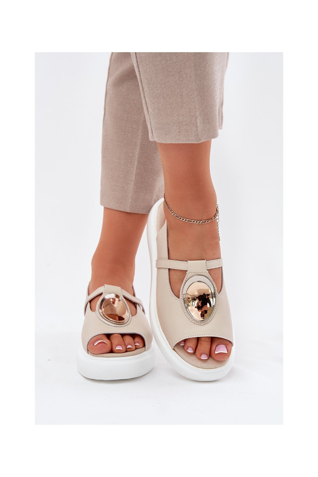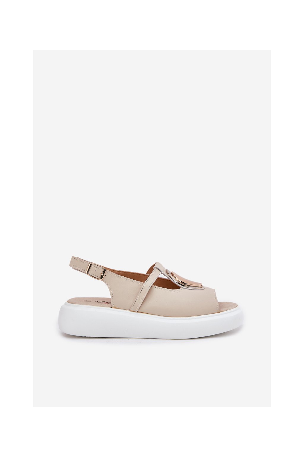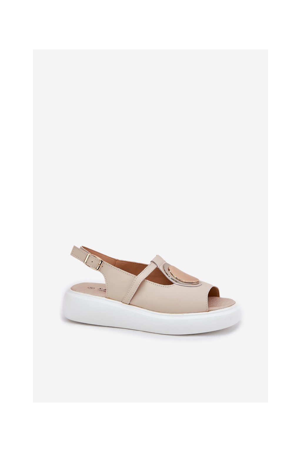 Béžové dámske kožené sandále na platforme a klínku S.Barski GR51-603 BEIGE