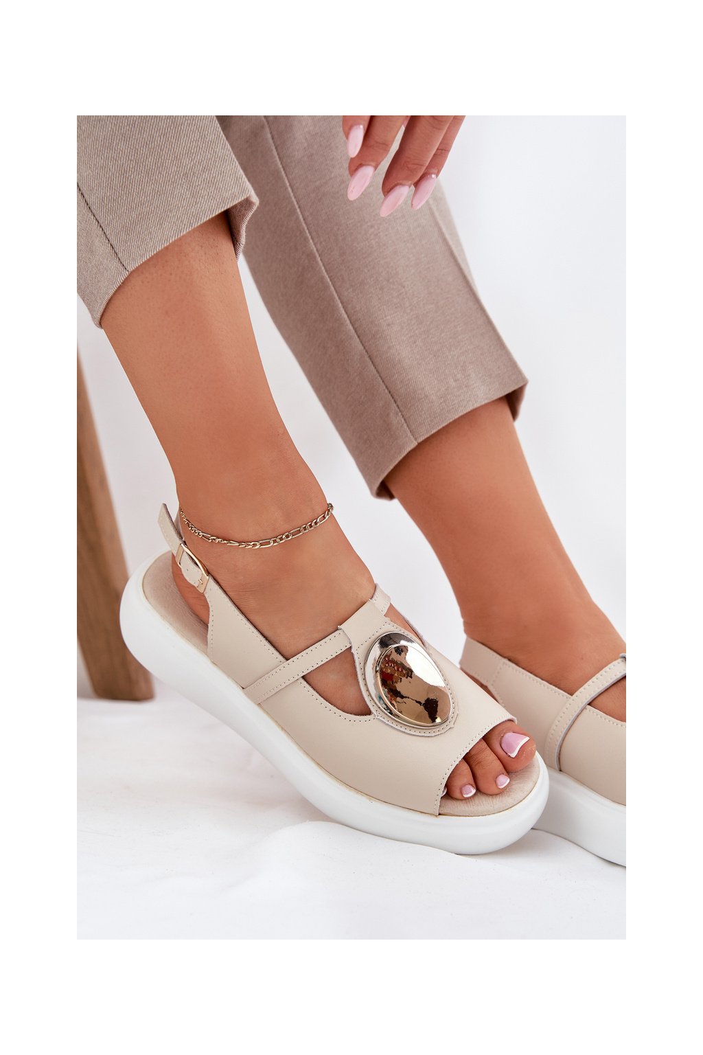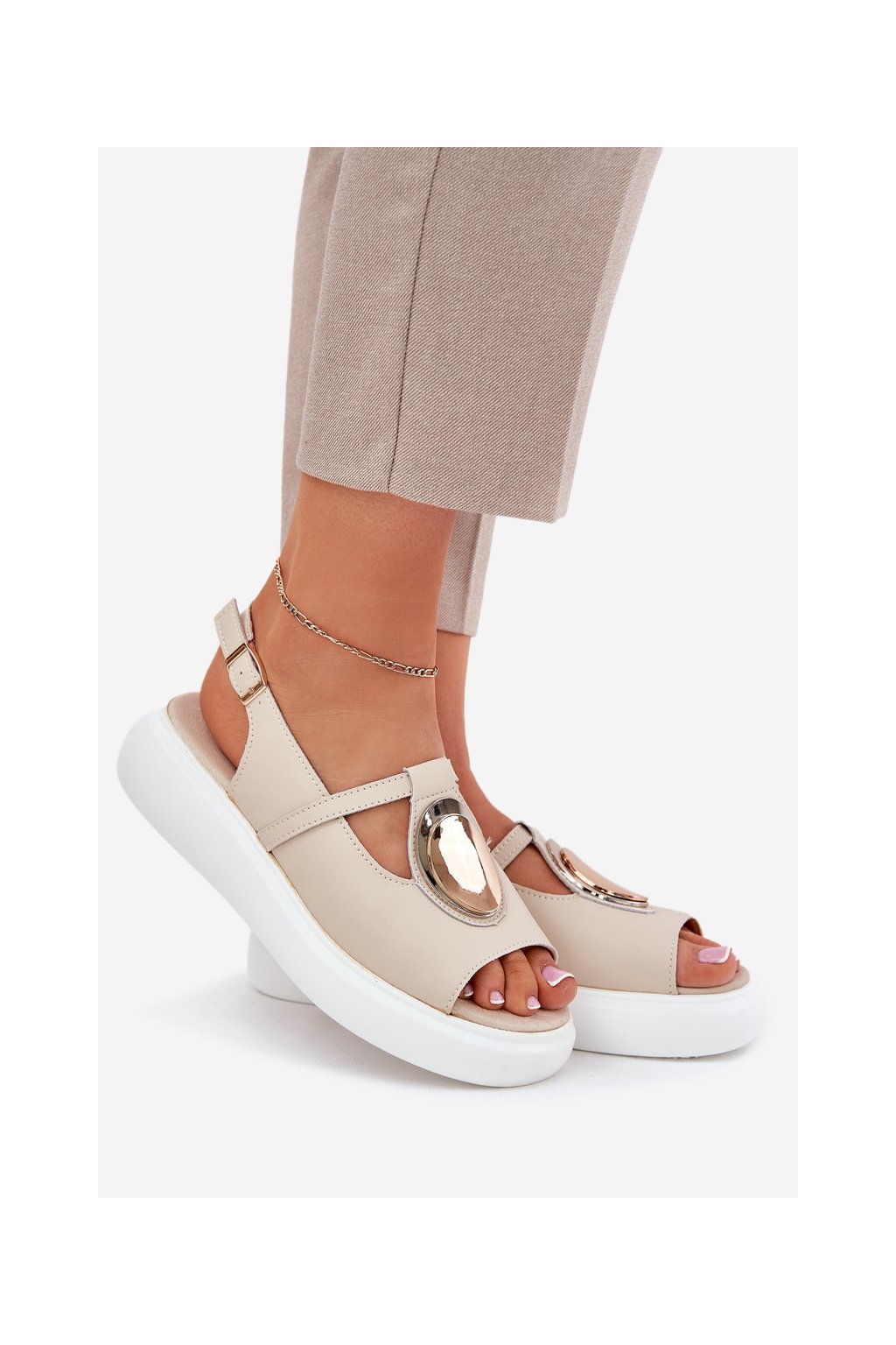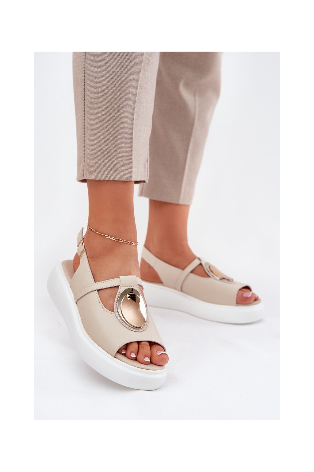 Béžové dámske kožené sandále na platforme a klínku S.Barski GR51-603 BEIGE