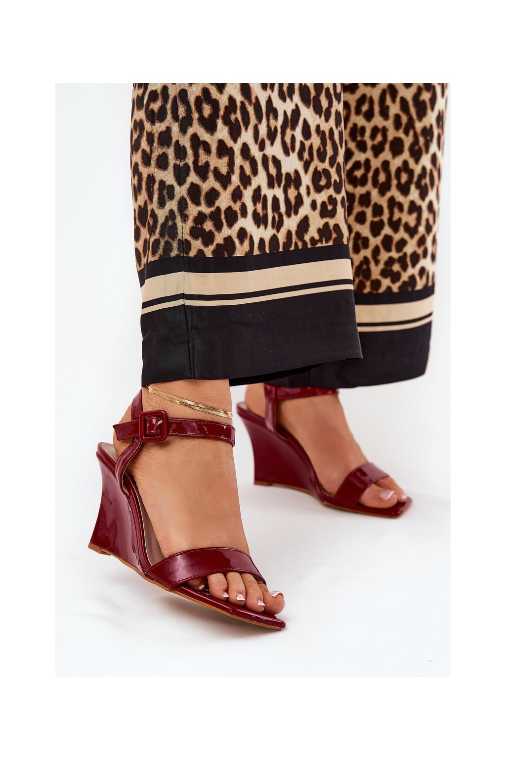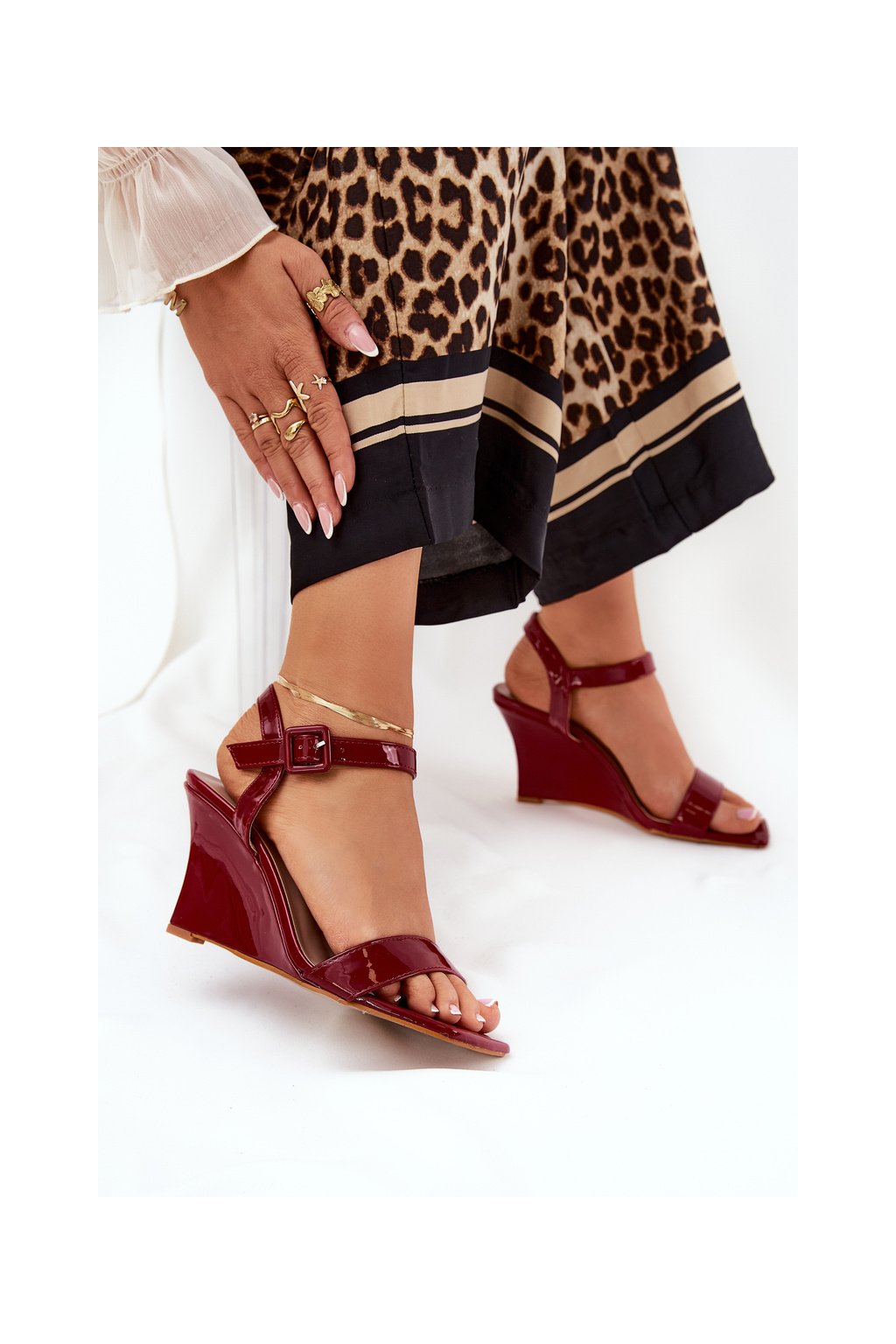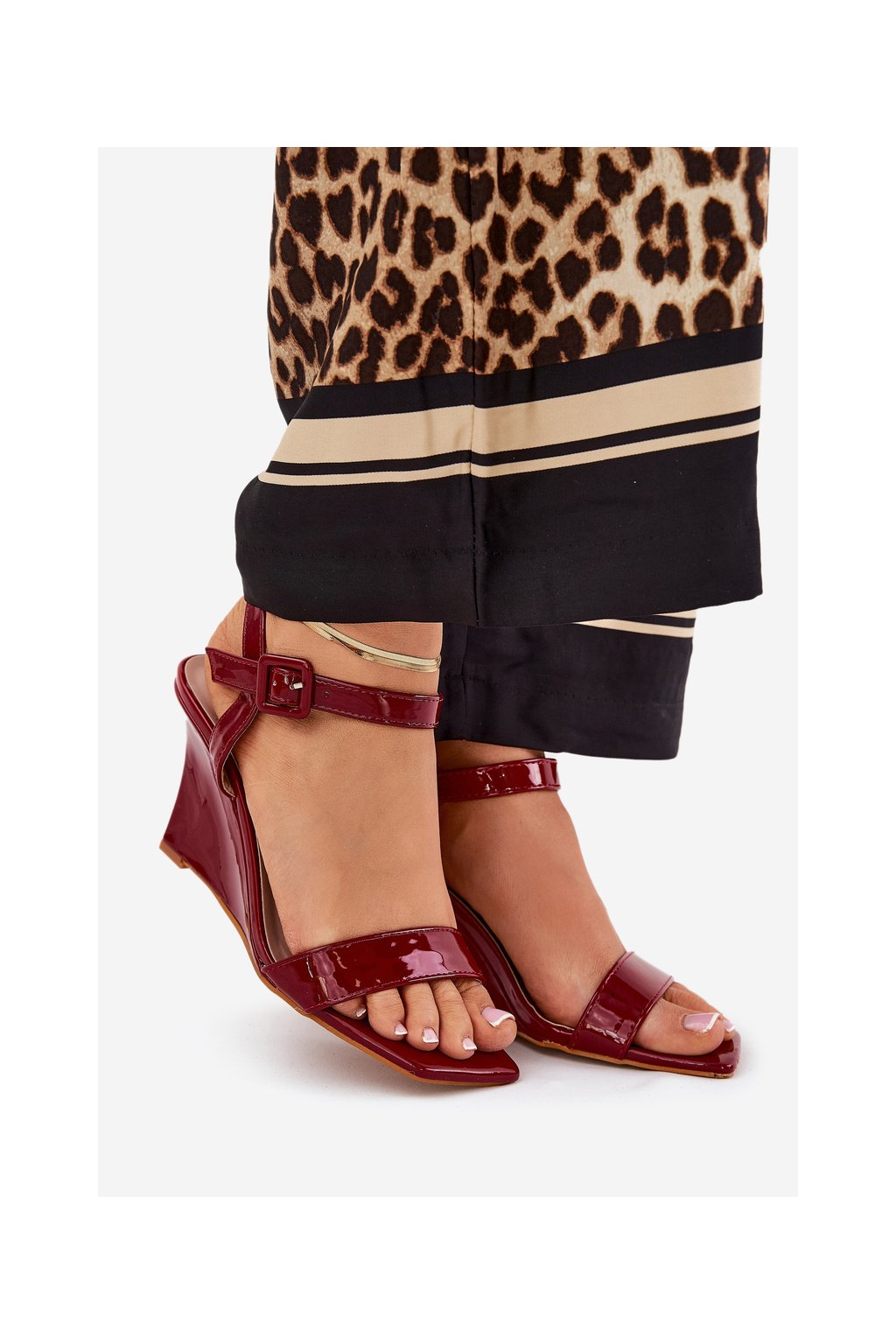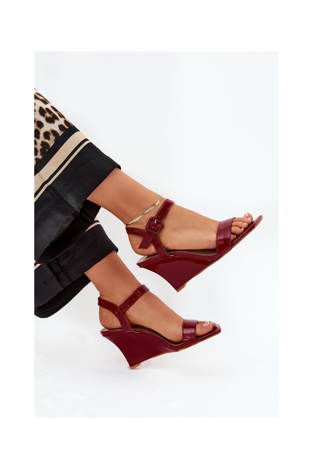 Červené dámske lakované sandále na platformovom podpätku s prackou, BD120 RED
