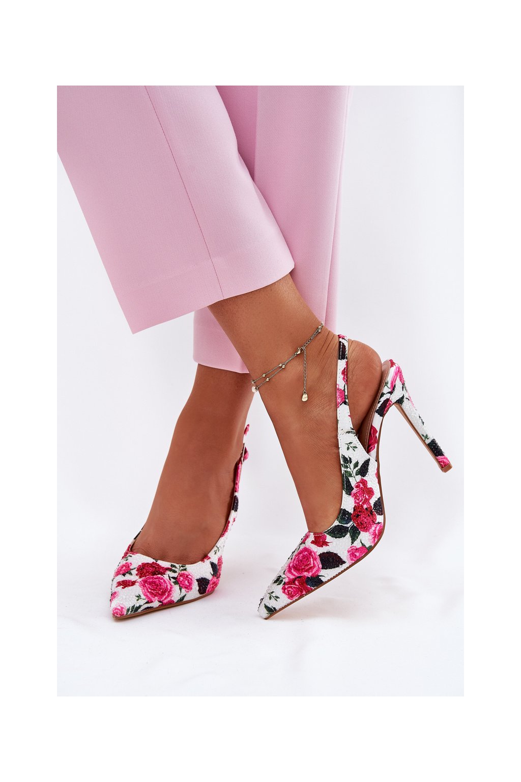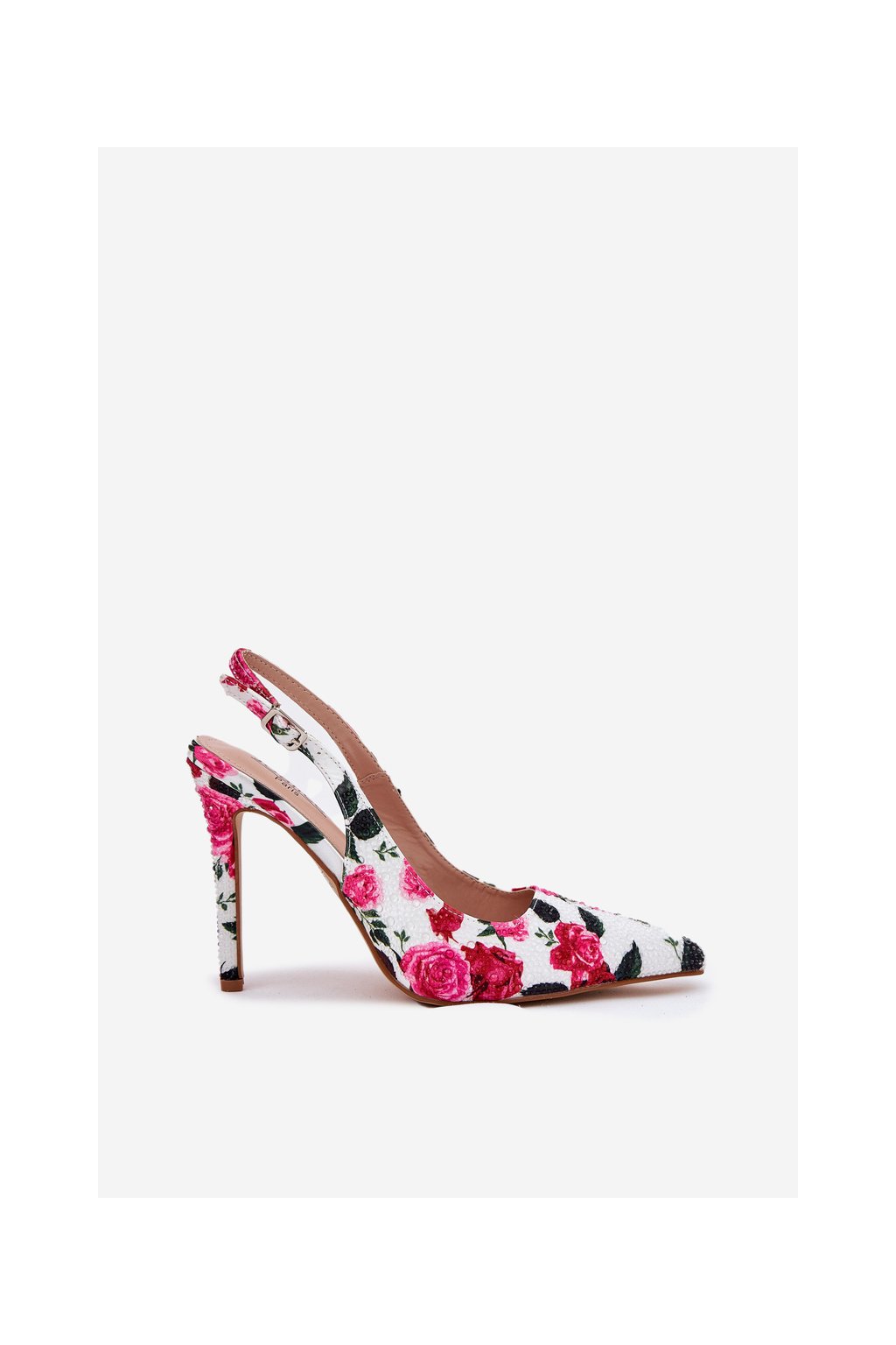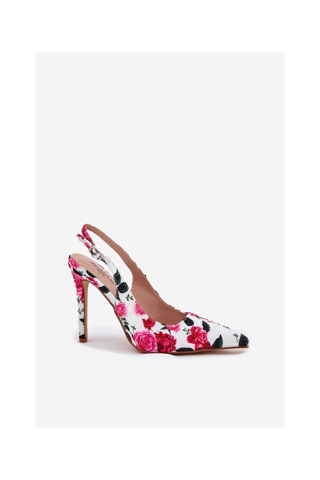 Biele dámske sandále na ihlovom podpätku s ružami, textil, kód produktu CLS-515 WHITE