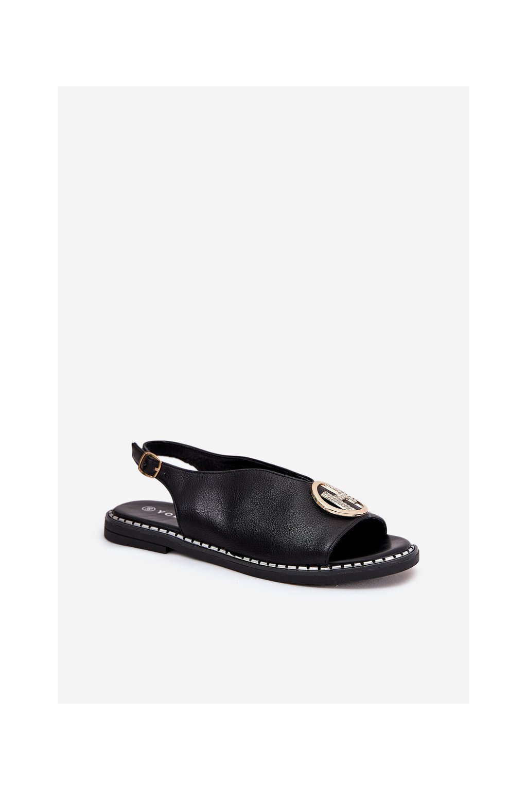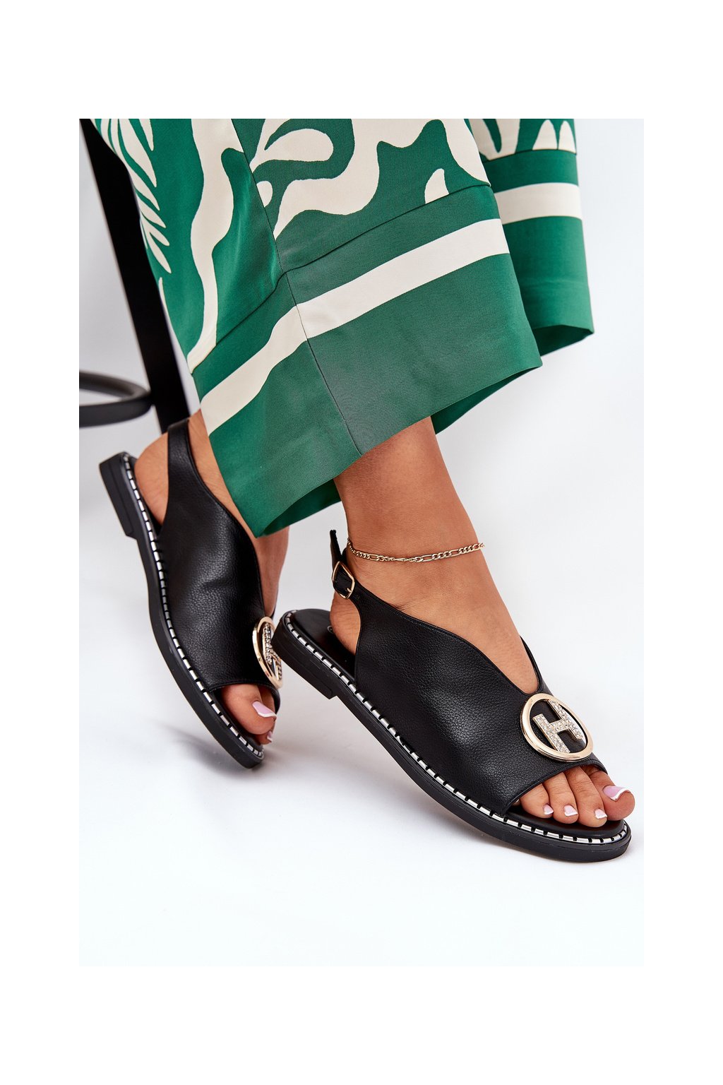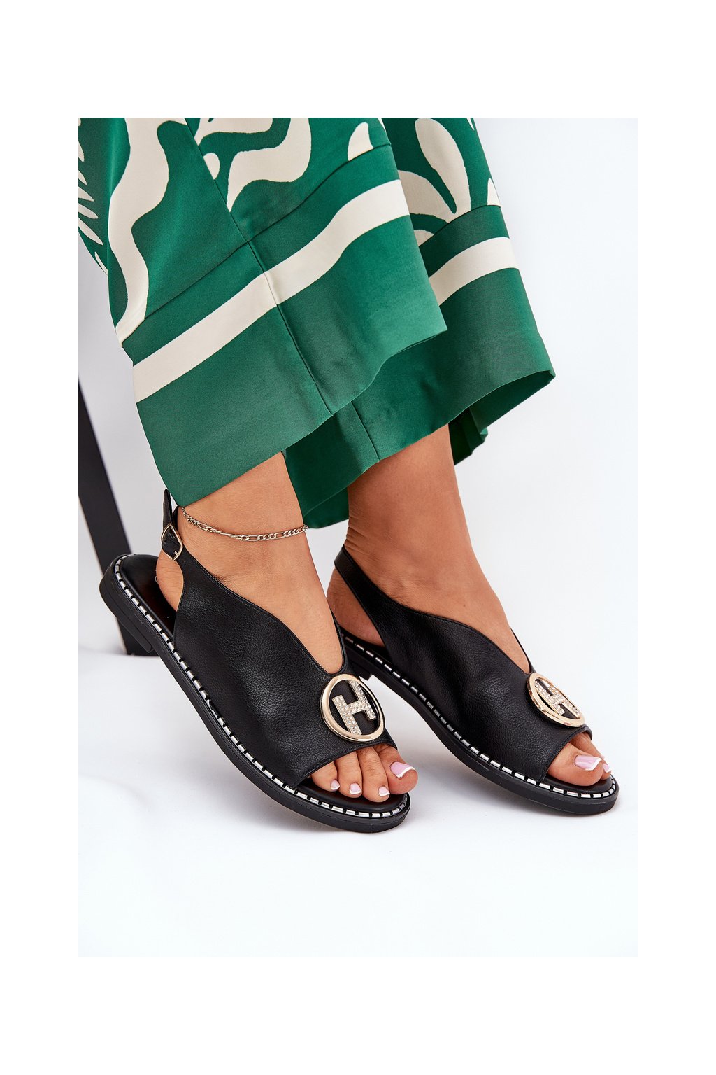 Čierne dámske elegantné sandále z eko kože, plochý podpätok - A8229 BLACK