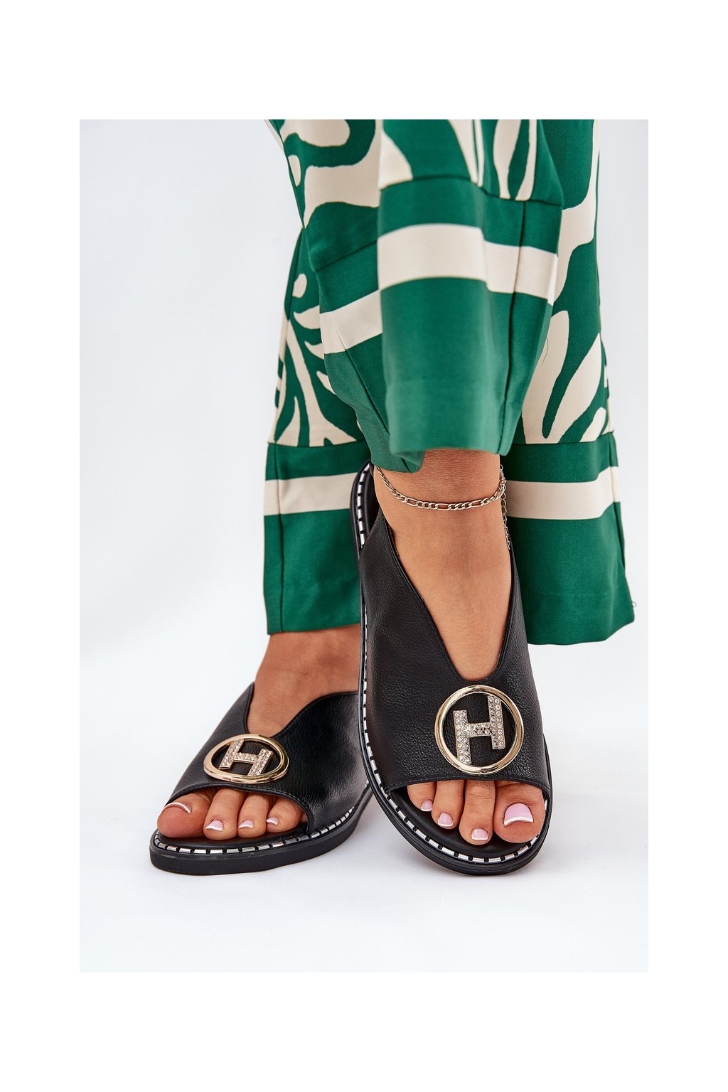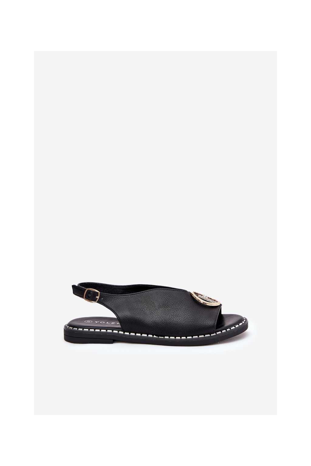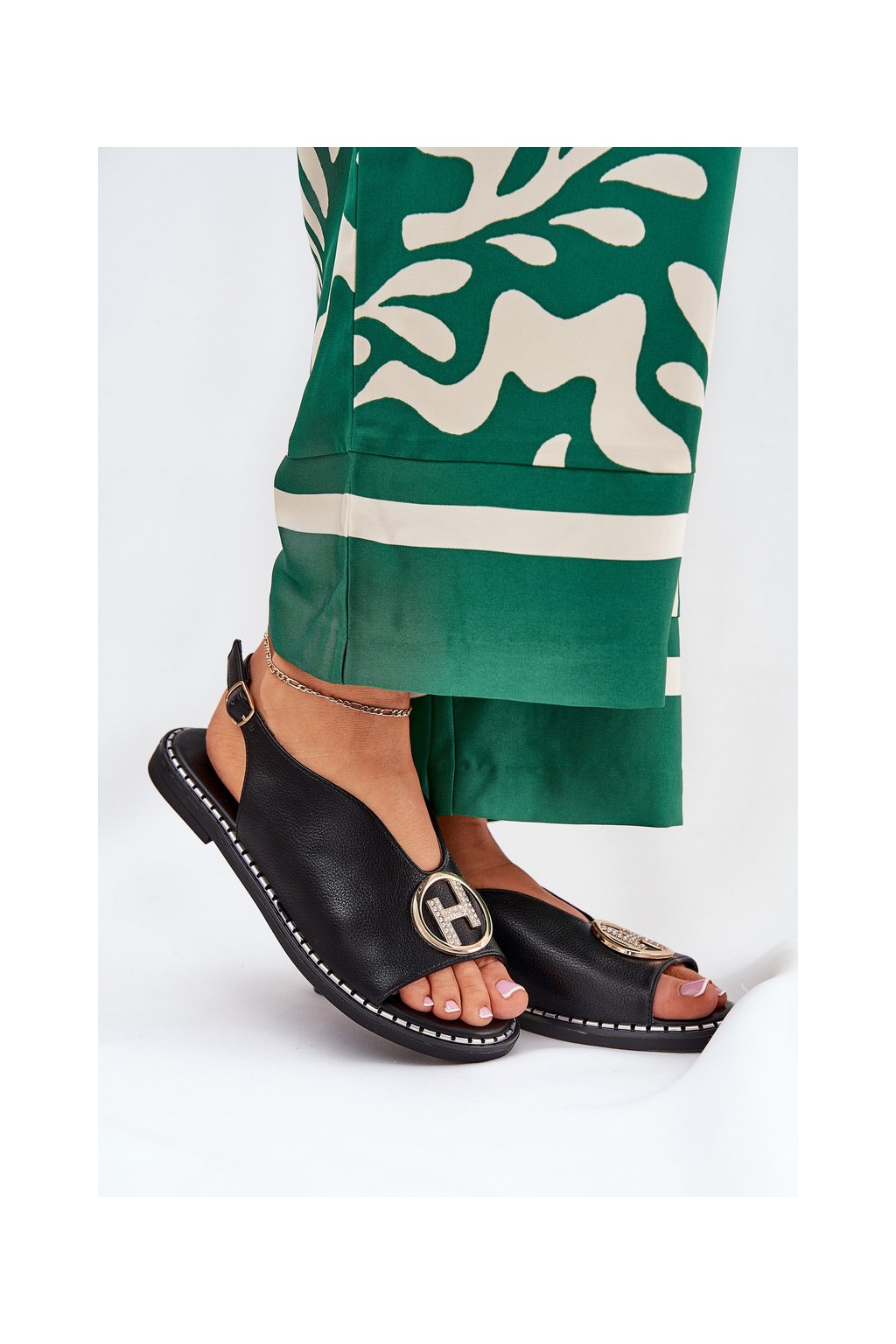 Čierne dámske elegantné sandále z eko kože, plochý podpätok - A8229 BLACK