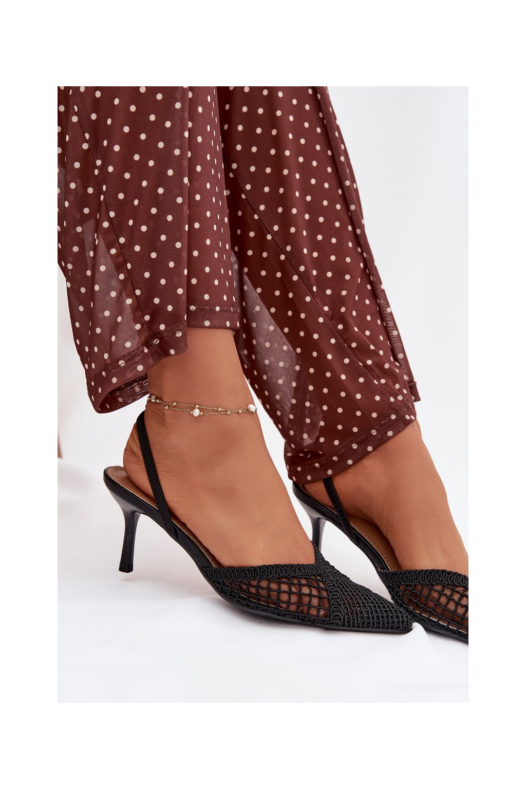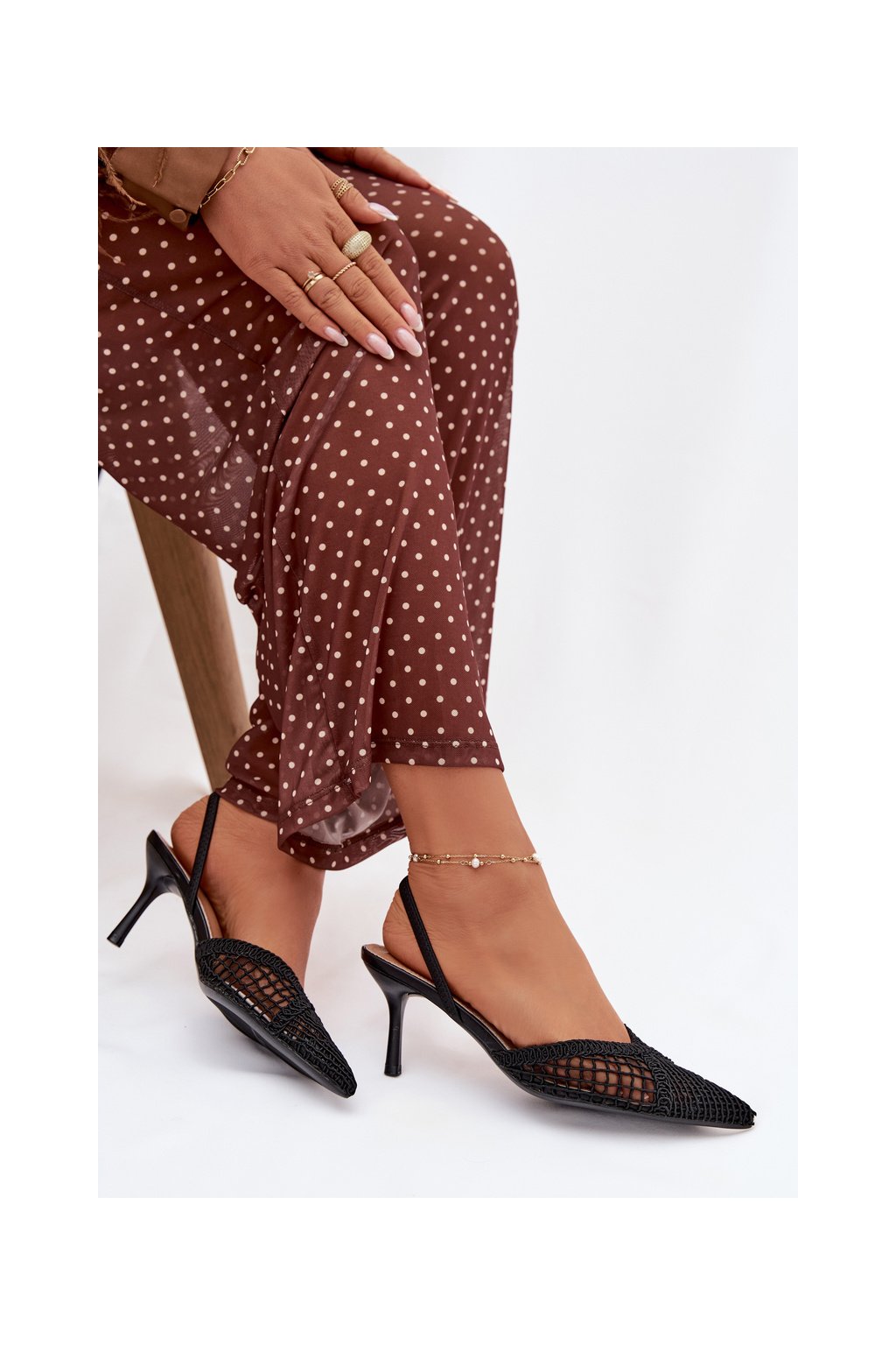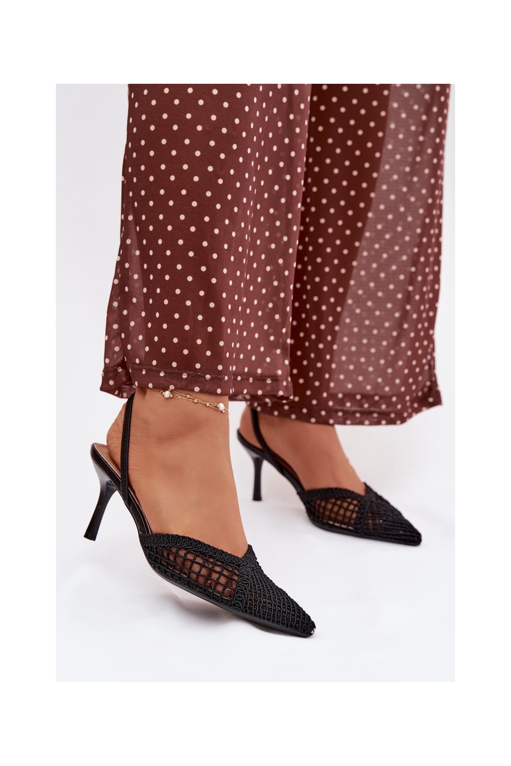 Sandále z pleteniny na podpätku čierne hanelis / G493 BLACK