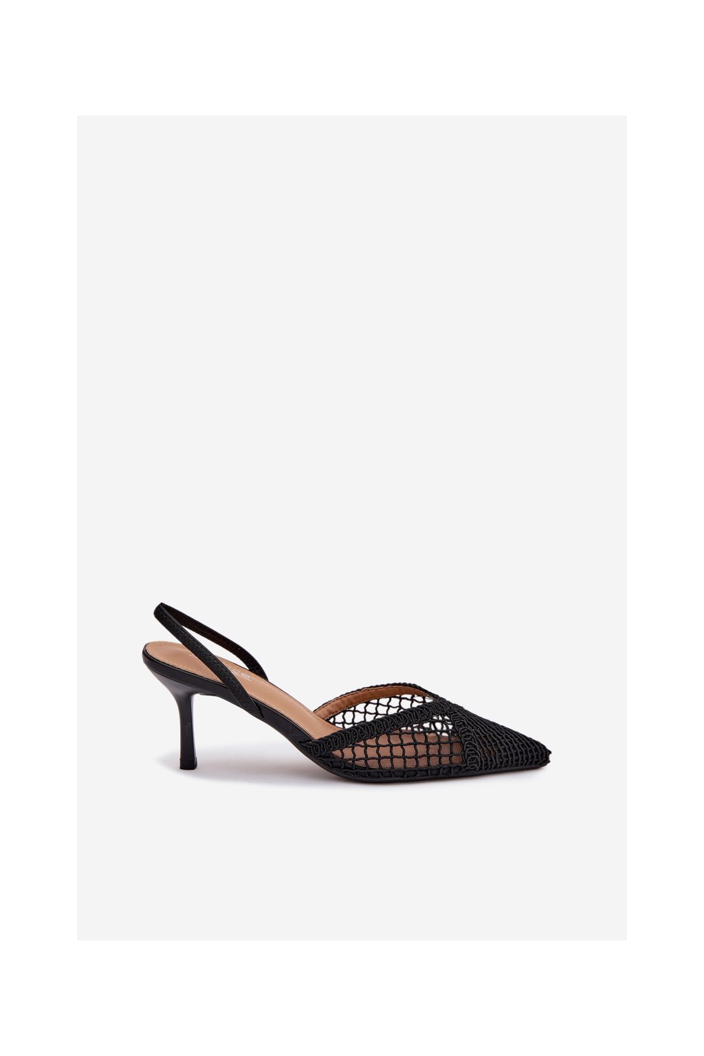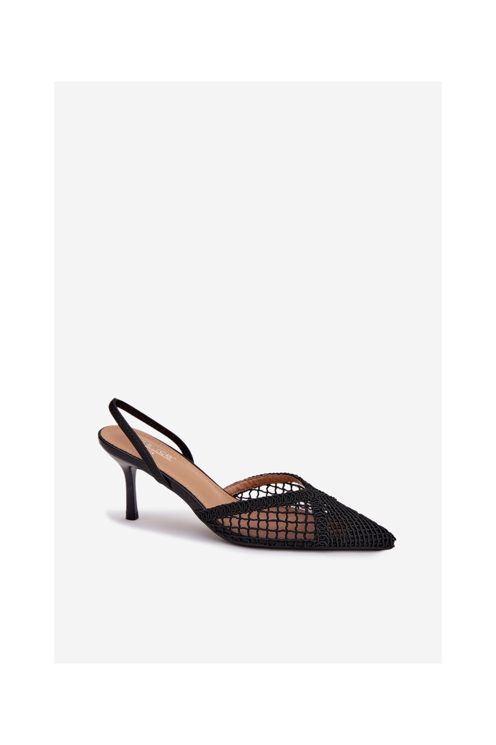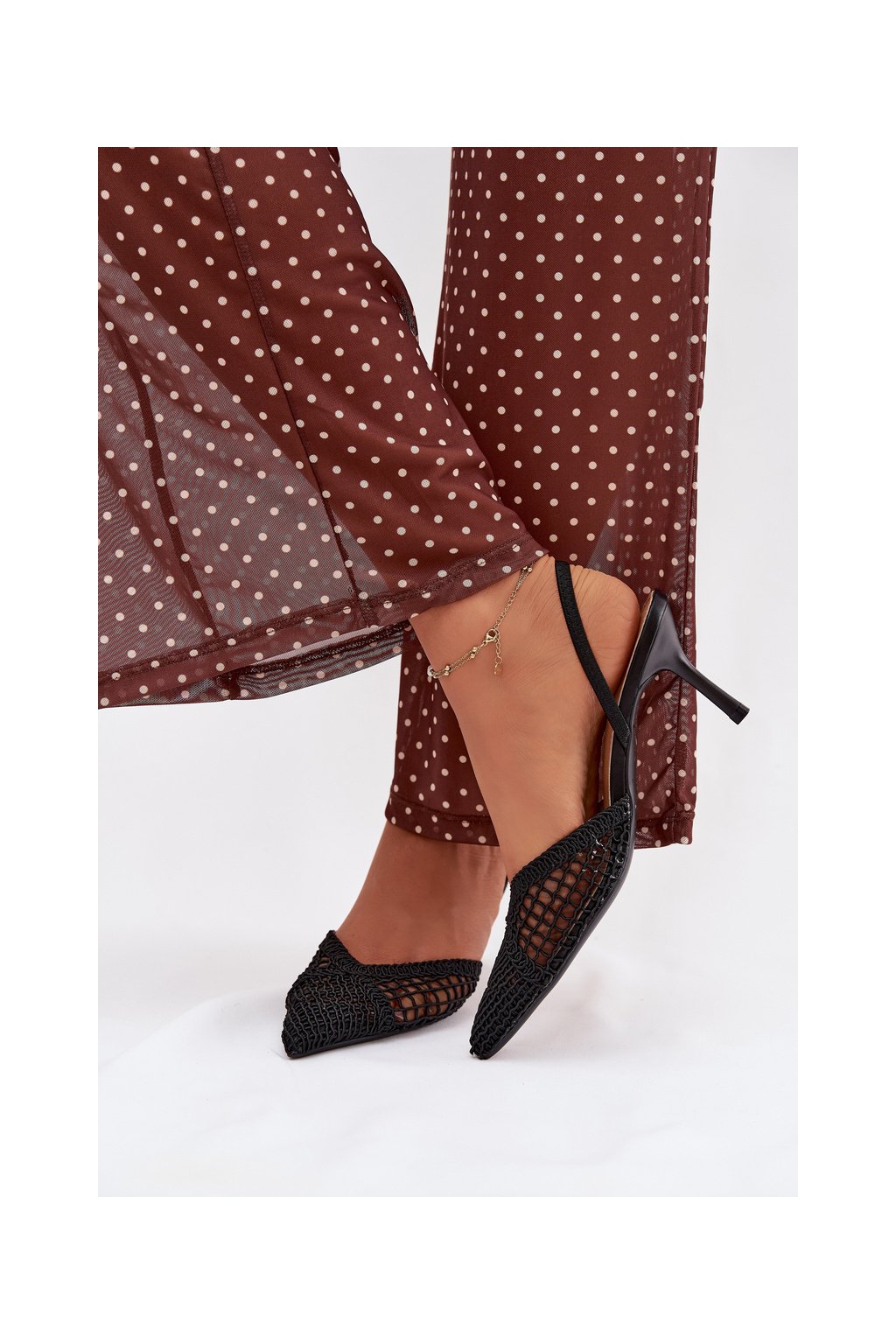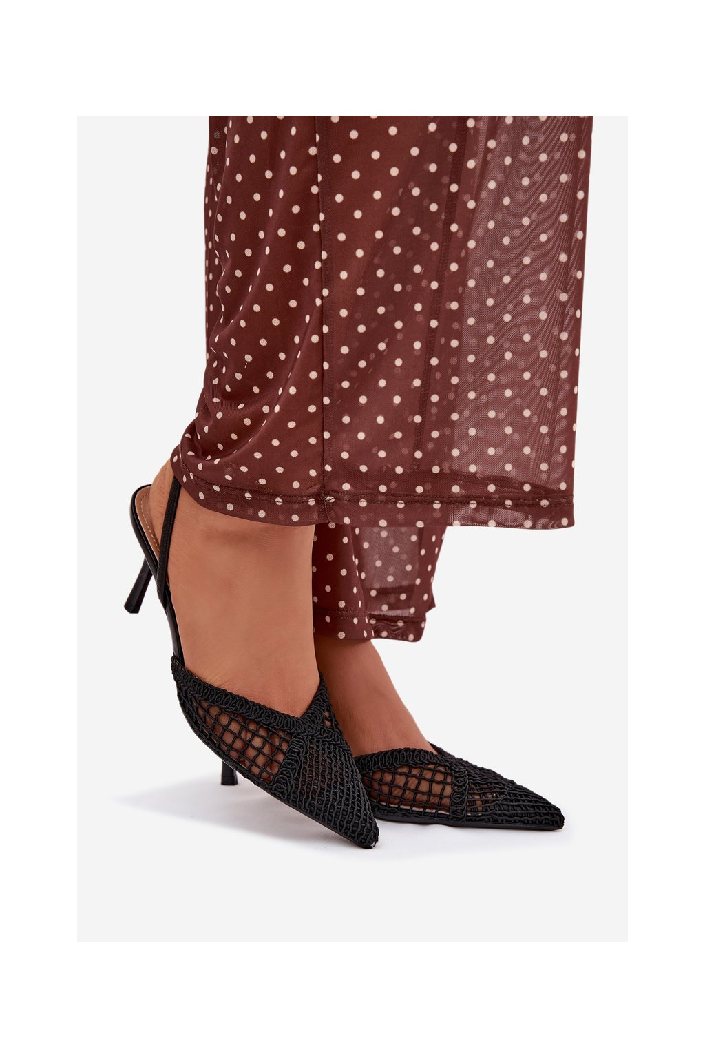 Sandále z pleteniny na podpätku čierne hanelis / G493 BLACK