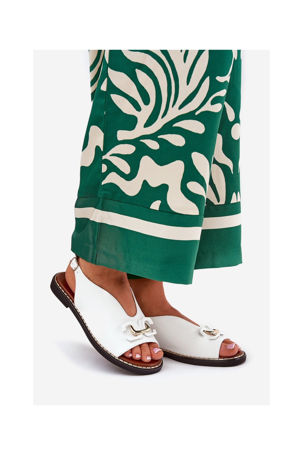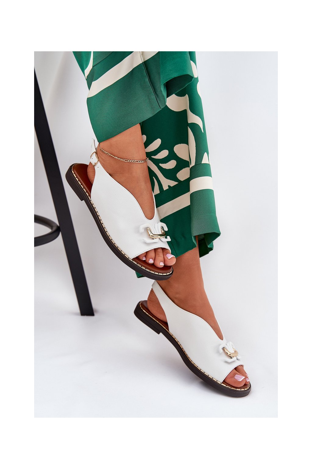 Na prednej časti topánok sa nachádza ozdoba, ktorá im dodáva výnimočný šarm. Sú osadené na plochom podpätku a zaručujú pohodlie počas celého dňa. Zapínajú sa pomocou nastaviteľného pásika so sponou, ktorý umožňuje prispôsobiť sa nohe. Tieto sandále budú skvelým doplnkom k šatám, sukniam a látkovým nohaviciam, čím vytvoria elegantný a módny styling. Pri výbere veľkosti sa riaďte tabuľkou veľkostí.