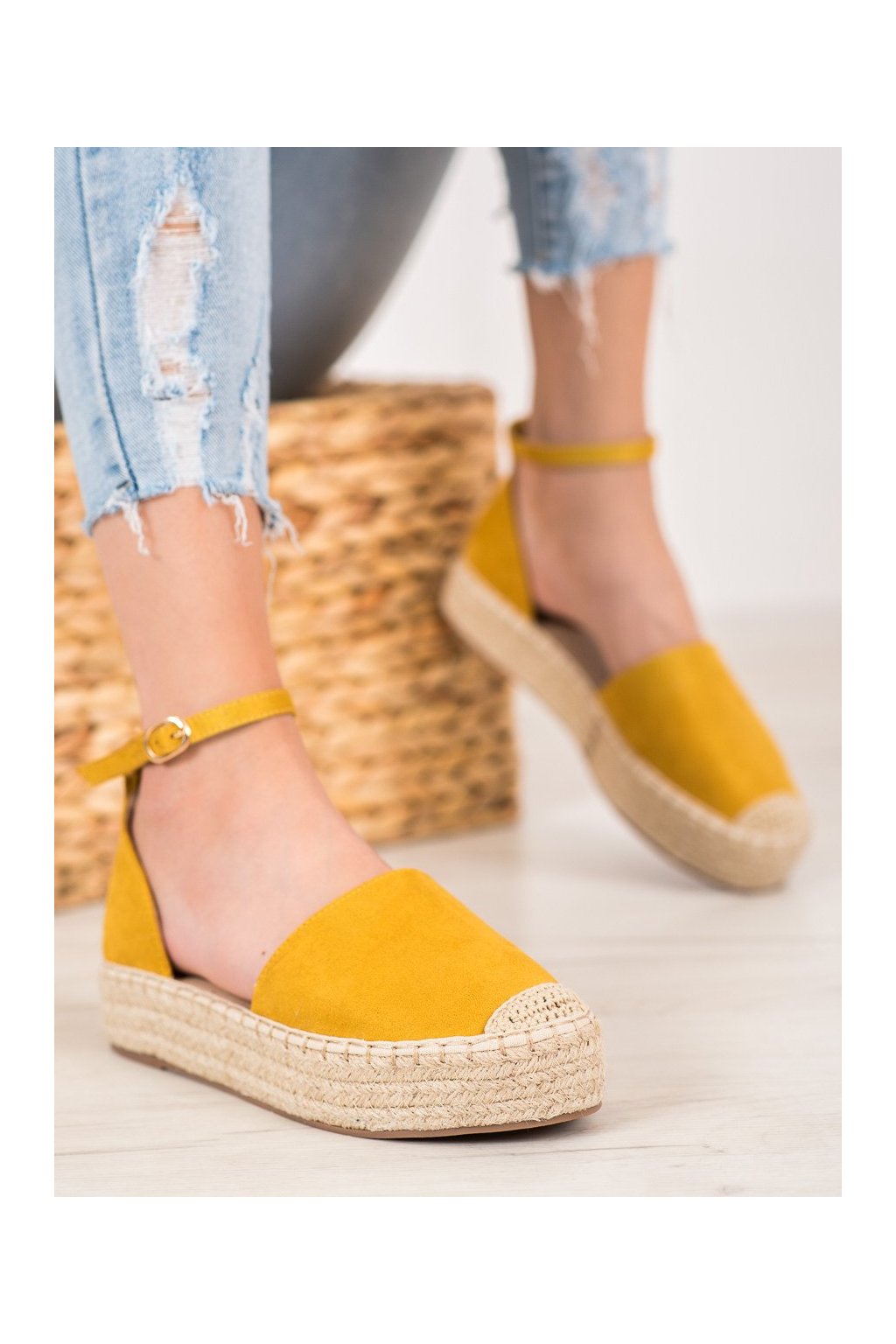 Zlaté dámske semišové sandále na rovnej podrážke Shelovet LL907Y