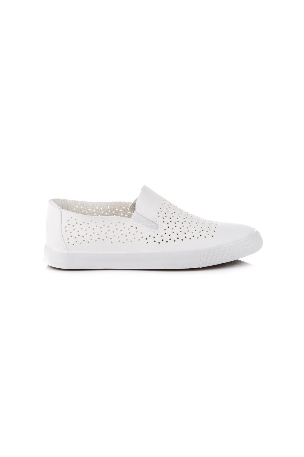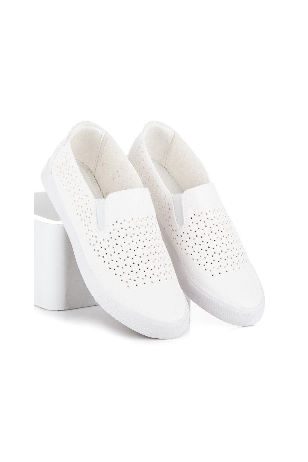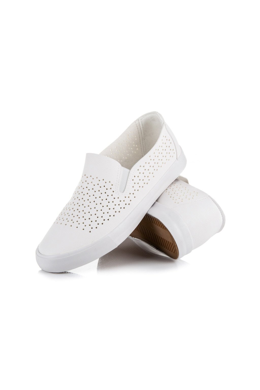 Biele dámske tenisky slip on z eko kože na šnúrovanie, športový štýl, kód produktu TL33W