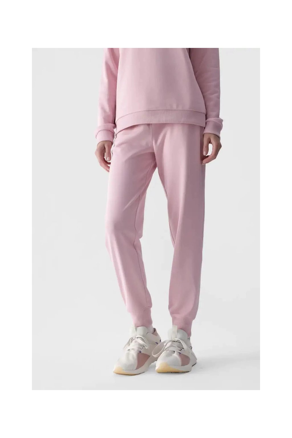 Dámske ružové tepláky typu jogger 4F z bavlny s viazaním, kód produktu F0945-56S