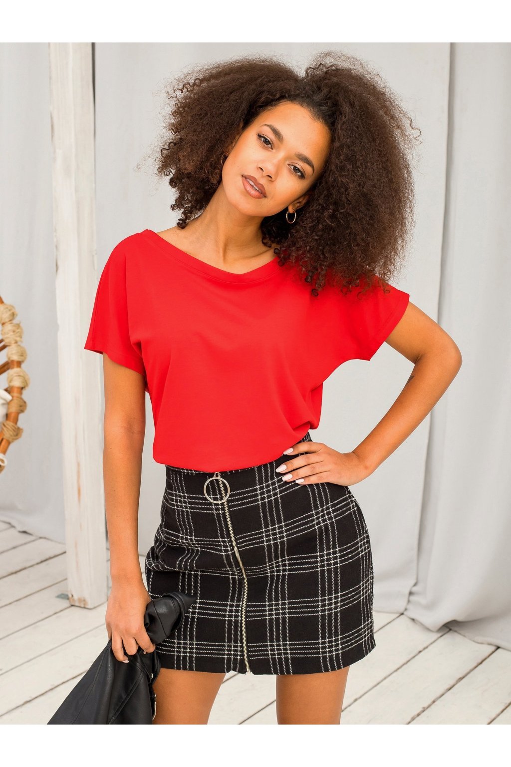 Červené dámske tričko je určite must have, pokiaľ ide o módne tričká, o to viac pri modeli ako Fire, ktorý je bez akéhokoľvek vzoru. Tričko ako toto vám poskytne dokonalý východiskový bod na vytváranie zložitejších vzhľadov všetkého druhu. Červené tričko vyzerá skvele s modrými alebo čiernymi džínsami a teniskami alebo lodičkami na podpätku z našej online kolekcie! Je to spoľahlivý spôsob, ako vyniknúť z davu vďaka nekomplikovanému vzhľadu, ktorý je veľmi ženský.