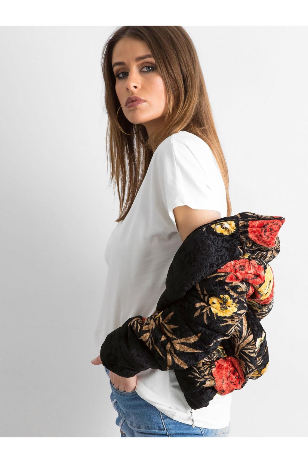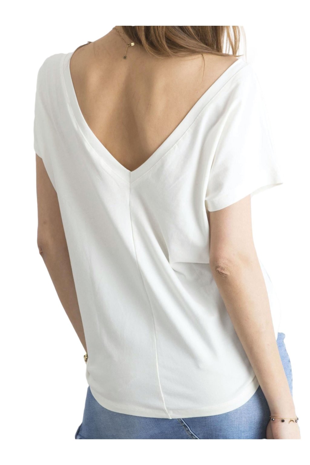 T-shirty z naszej flagowej serii Fire wyraźnie wyróżniają się krojem spośród większości klasycznych koszulek. Będziesz wiedziała o co chodzi, jeśli przyjrzysz się temu modelowi z tyłu - od razu w oczy rzuca się piękne trójkątne wycięcie na plecach, które dodaje kobiecości każdej stylizacji. Koszulka wykonana jest z bardzo przyjemnego w dotyku materiału, który zawiera dużo bawełny, dzięki czemu zapewnia jednocześnie przewiewność i jest przyjazny w kontakcie ze skórą. T-shirt ma ponadto luźniejszy fason, który ładnie opływa sylwetkę i sprytnie tuszuje mniejsze mankamenty sylwetki, a także klasyczne krótkie rękawy oraz kobiecy dekolt z przodu. Tak stylowa koszulka basic aż się prosi o zestawienie jej z modnymi jeansami lub szortami z naszej najnowszej kolekcji online. Pasują do niej zarówno buty na obcasie, jak i płaskie obuwie sportowe, dlatego bez problemu stworzysz z jej pomocą zestawy w stylu casualowym oraz nieco bardziej eleganckim. Przekonaj się o tym jak ciekawy może okazać się pozornie zwykły t-shirt basic!