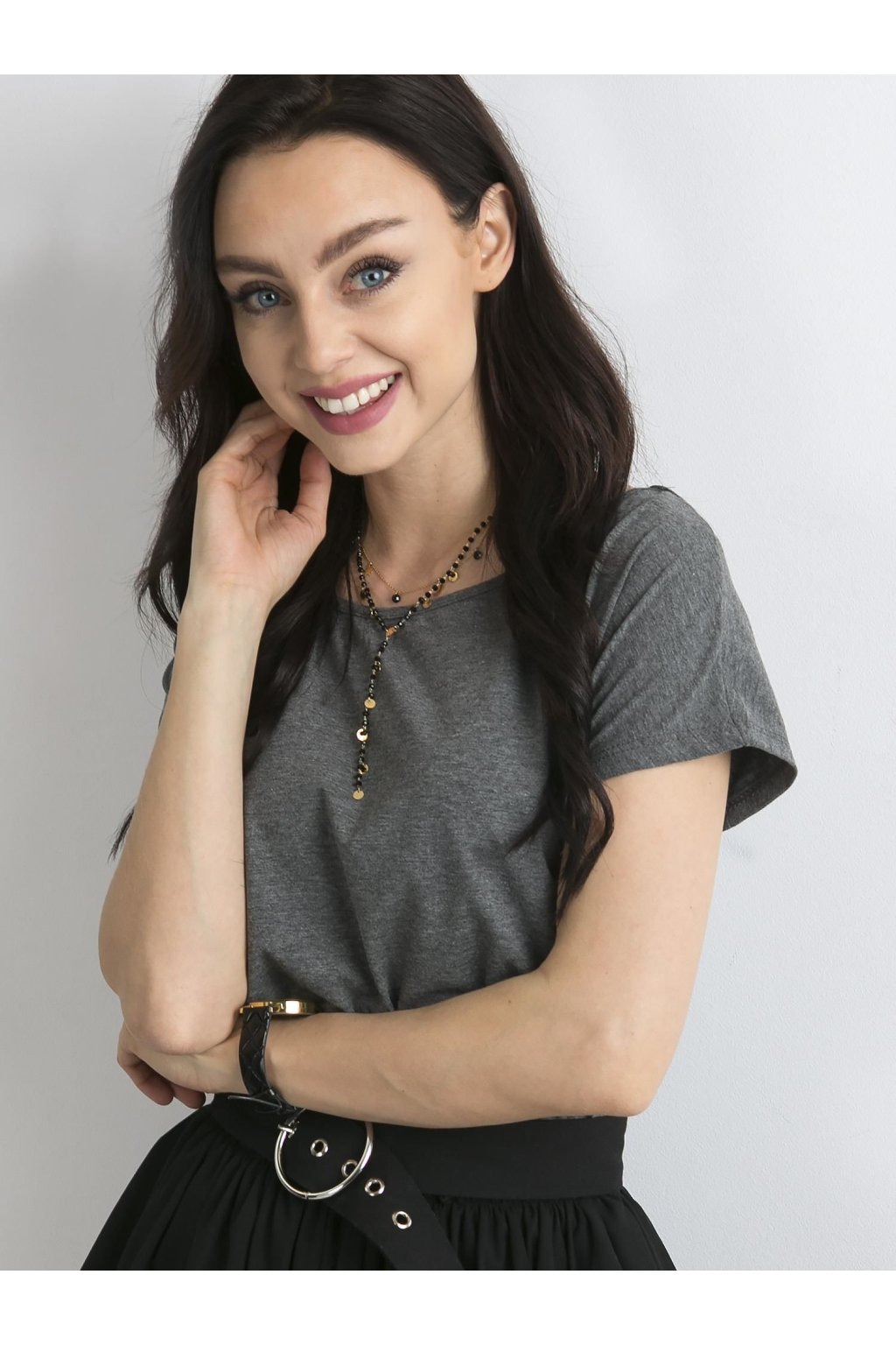 Ciemnoszary melanżowy t-shirt Circle Gładka koszulka w stylu basic to prawdziwy must have nie tylko w szafie miłośniczki najnowszych trendów, ale także w kolekcji każdej kobiety. Taki model pozwoli Ci na łatwe i szybkie stworzenie prostej stylizacji, szczególnie wtedy gdy się spieszysz i musisz szybko wyjść z domu. Nasz damski t-shirt basic wykonany został w klasycznym stylu z przewiewnego i przyjemnego w dotyku materiału bawełnianego. Dzięki temu jest nie tylko bardzo wygodny w noszeniu, ale także oddychający i przyjazny w kontakcie ze skórą, dlatego zapewnia wysoki komfort noszenia. Oferowany t-shirt basic ma ponadto okrągły dekolt, krótkie rękawy oraz luźniejszy fason, który gwarantuje dużą wygodę i świetnie układa się na sylwetce. Dostępny jest w wielu modnych kolorach do wyboru, które pasują idealnie do naszych jeansów oraz szortów.