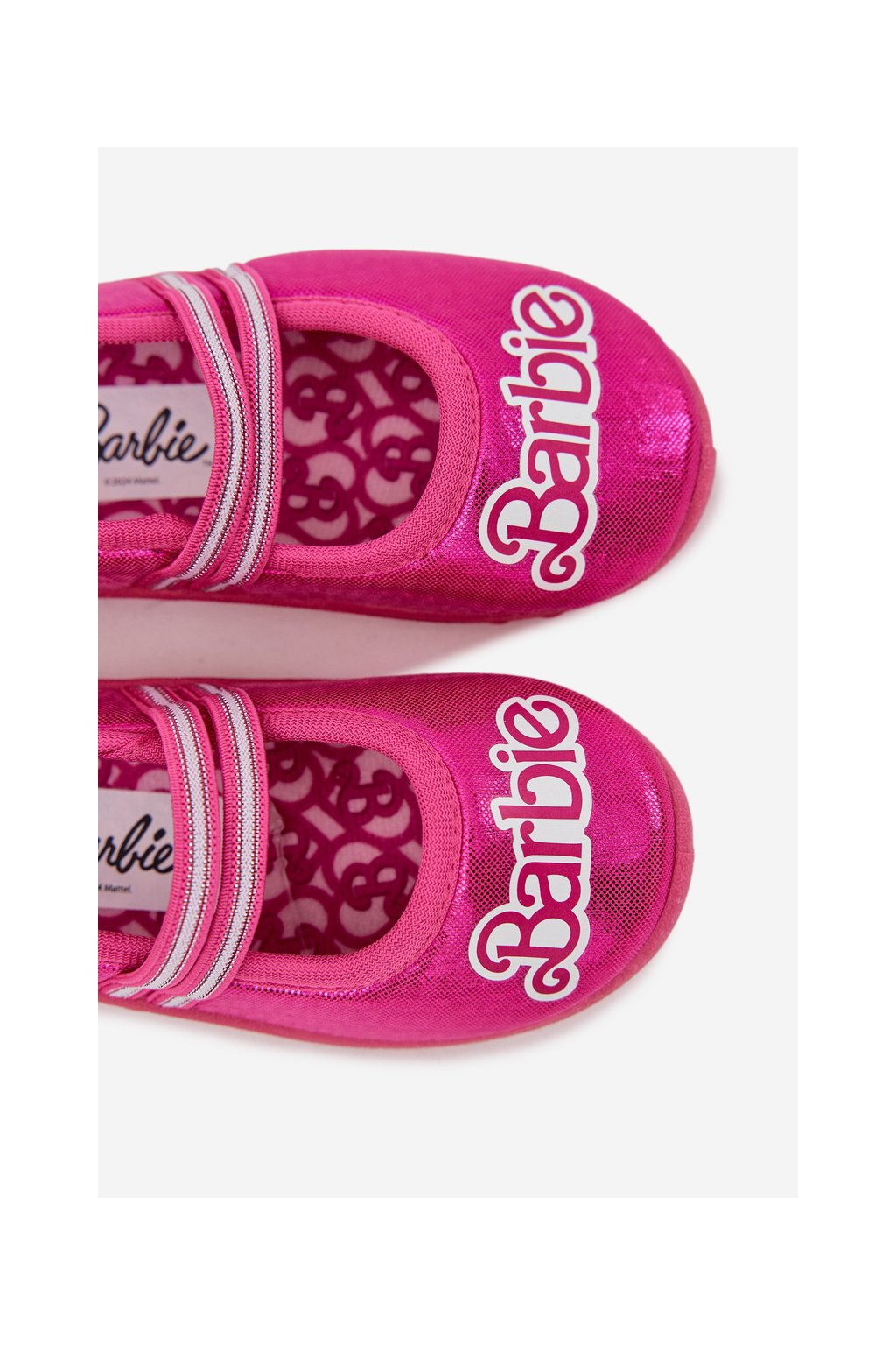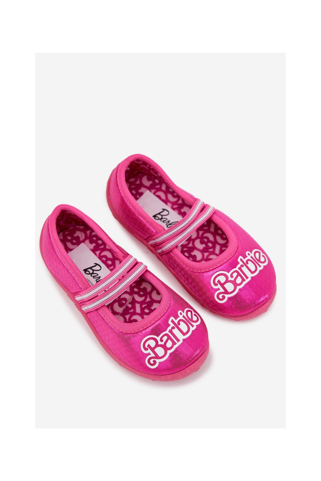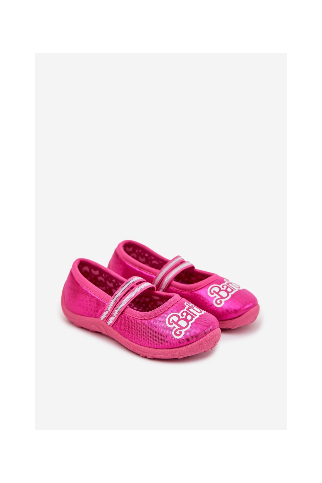 Ružové dievčenské balerínky Barbie s rovnou podrážkou, textil, kód produktu BA002573