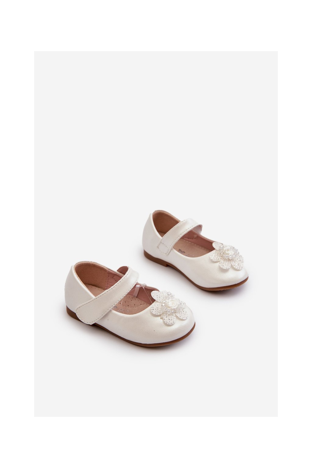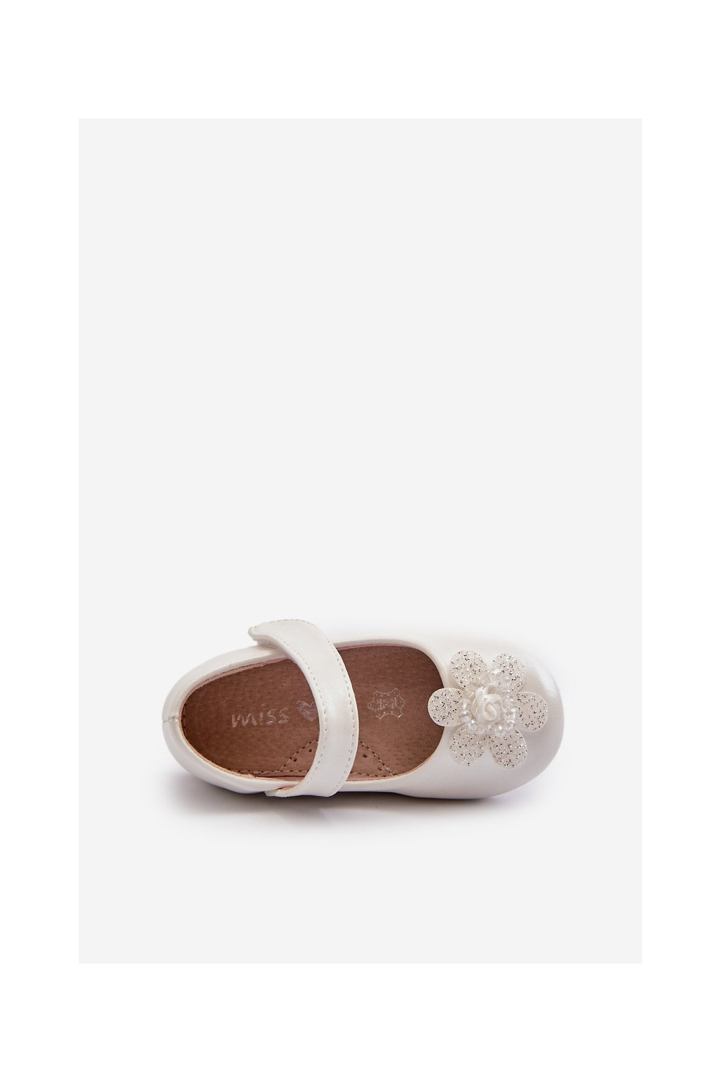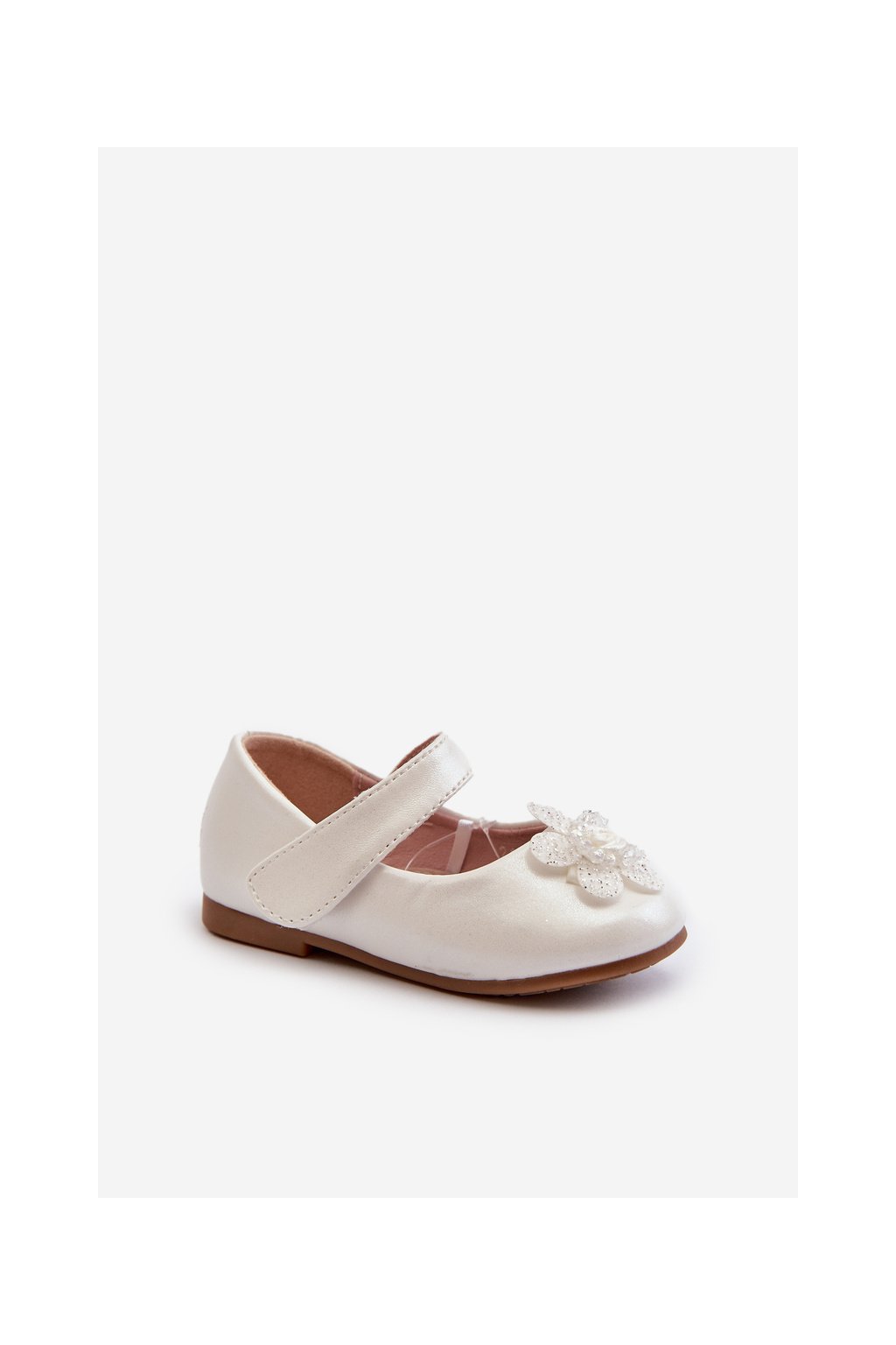 Biele detské balerínky z eko kože s prírodnou kožou na vložke a suchým zipsom, kód produktu 24DZ19-7245 WHITE
