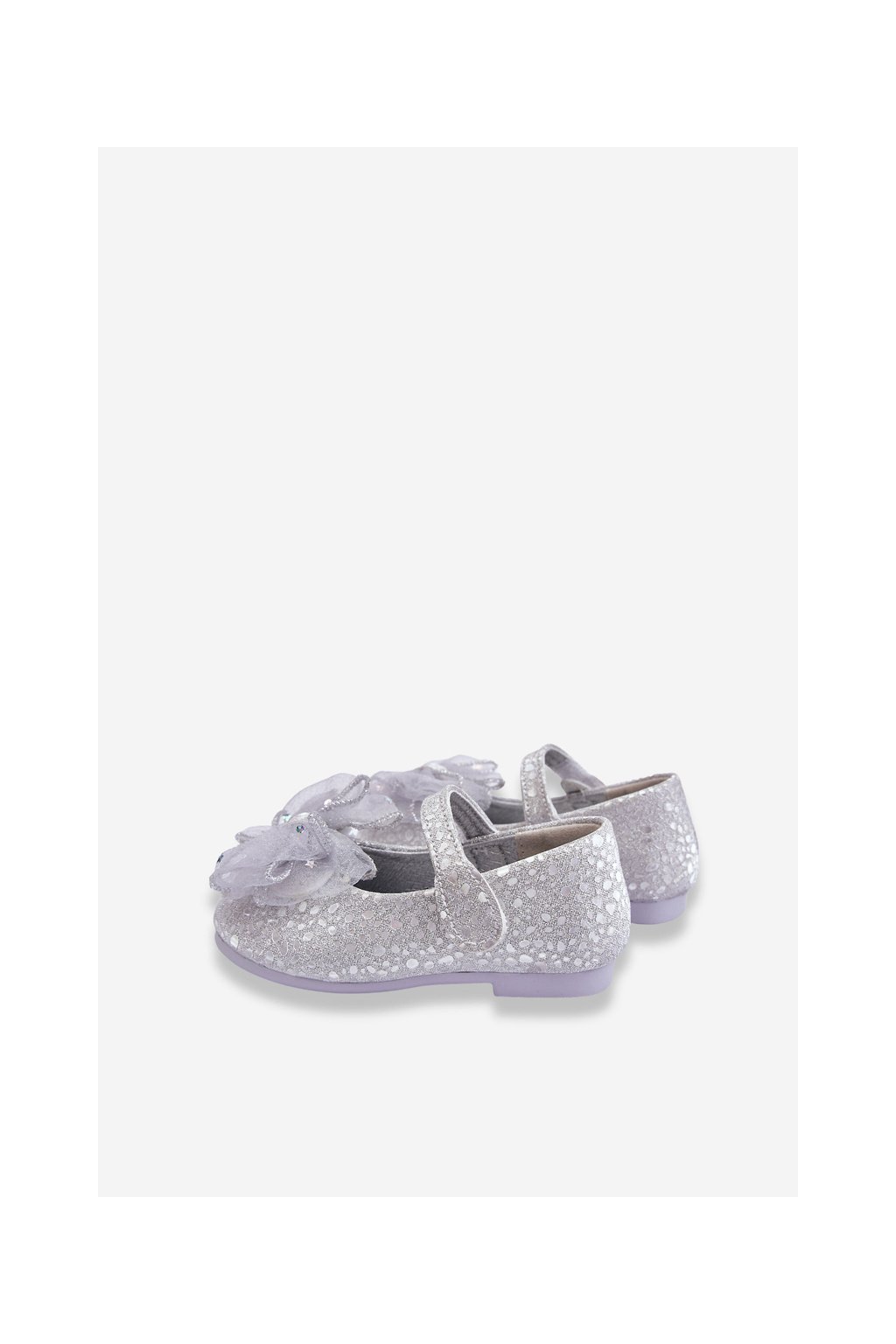 Strieborné detské balerínky s mašľou na suchý zips, syntetický materiál, MC326 SILVER
