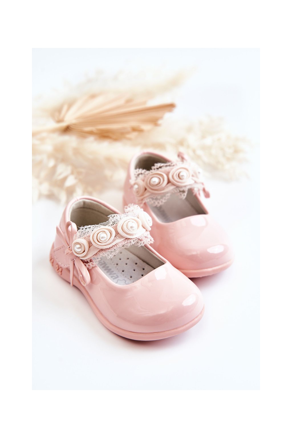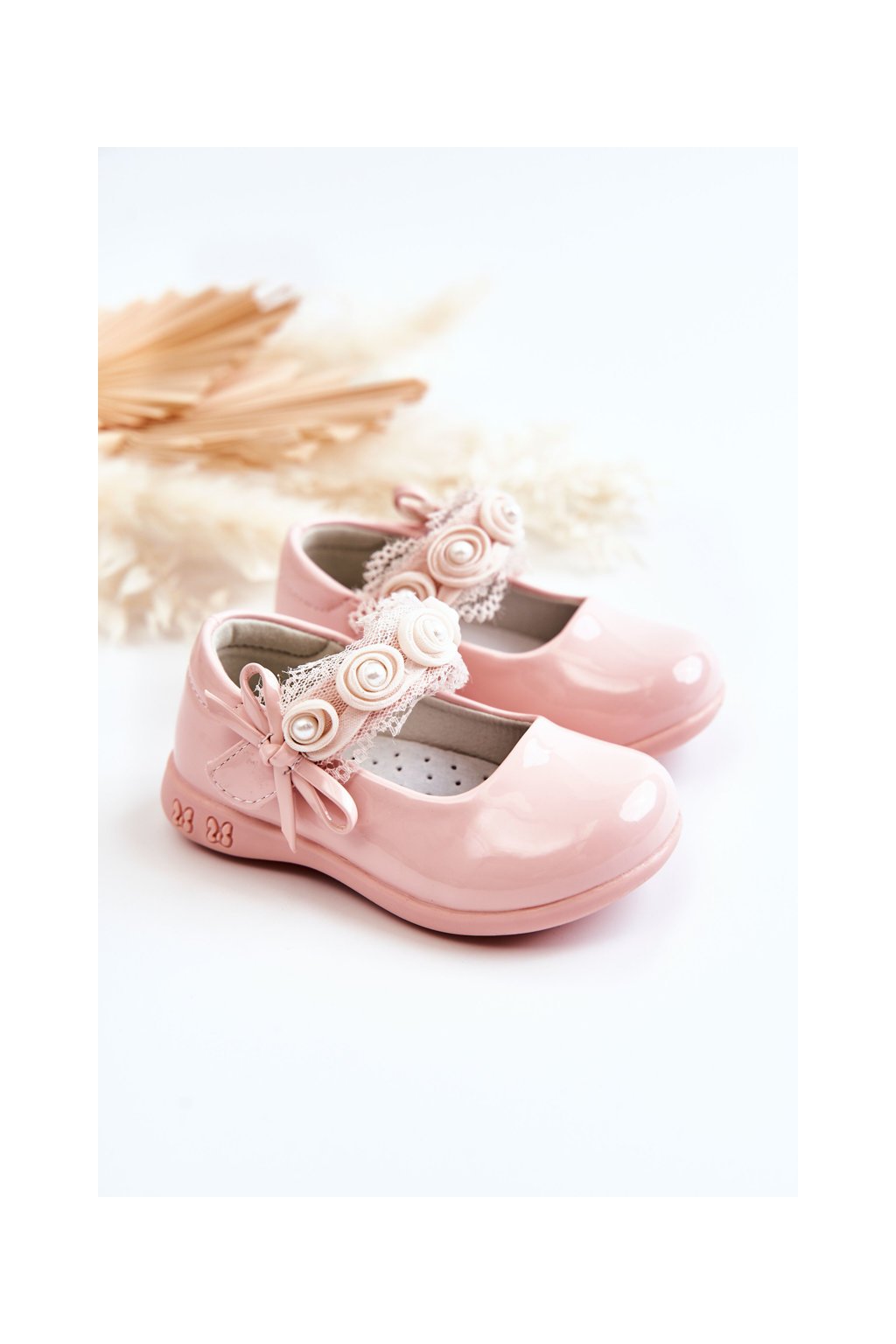 Ružové detské balerínky s eko-patentovanou kožou a ružami NC82 PINK
