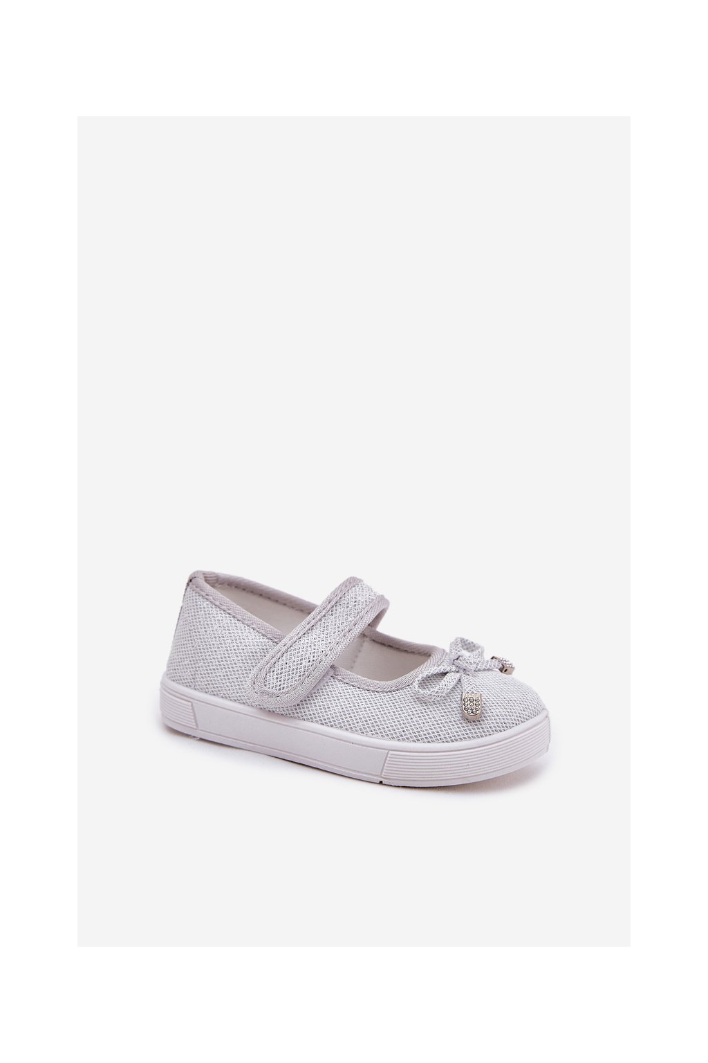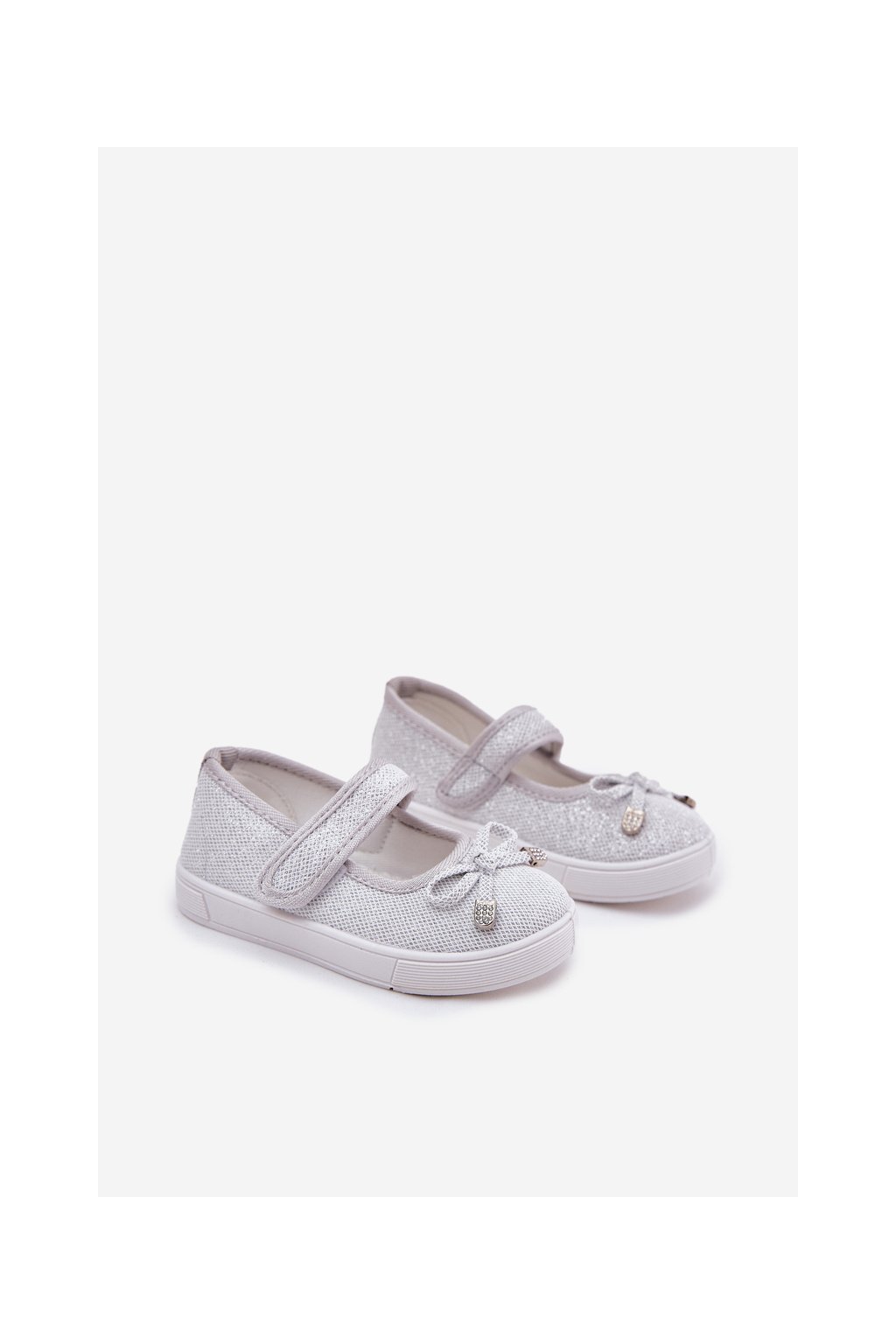 Strieborné dievčenské textilné baleríny s mašľou na suchý zips, kód produktu Z513 SILVER