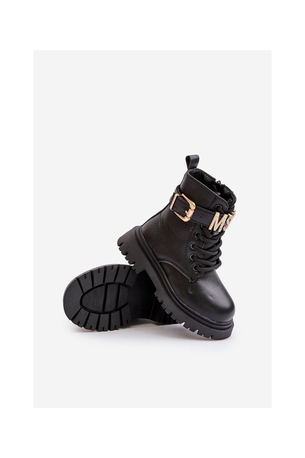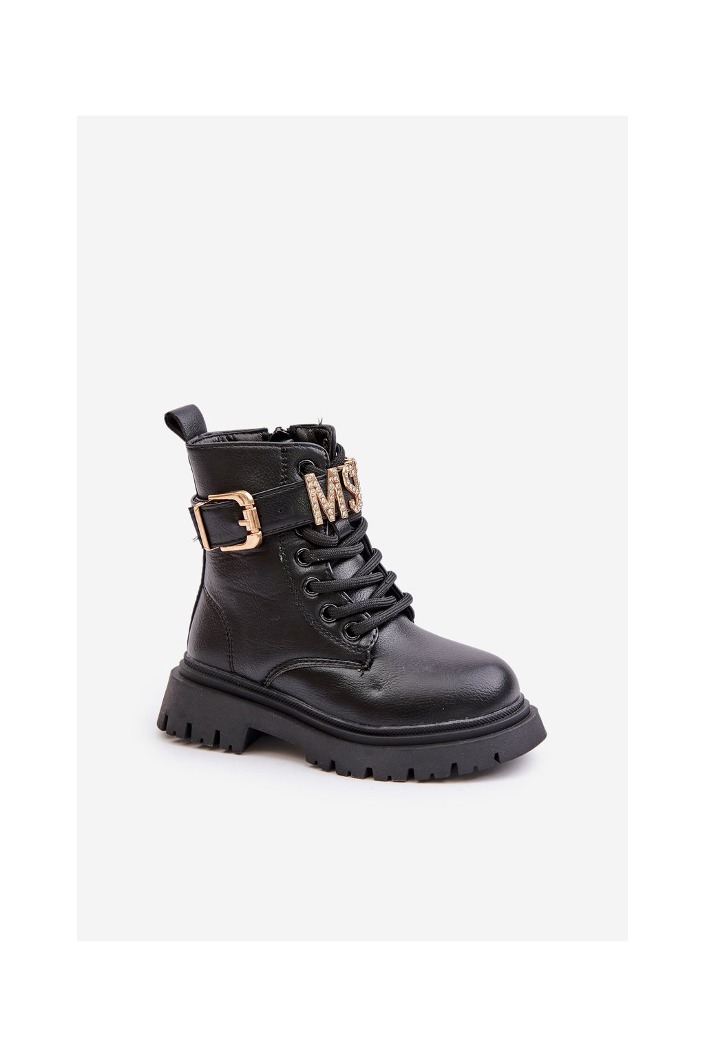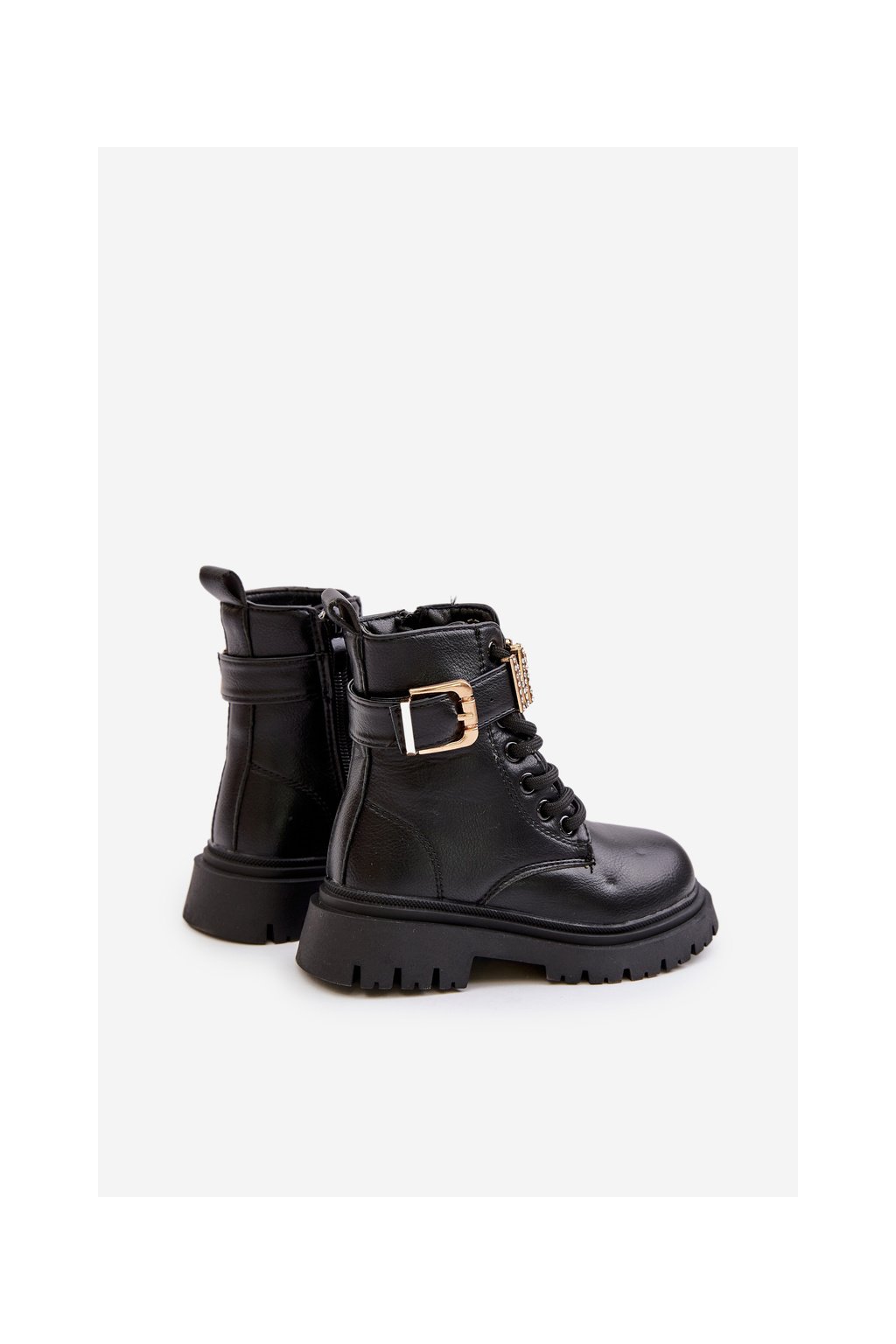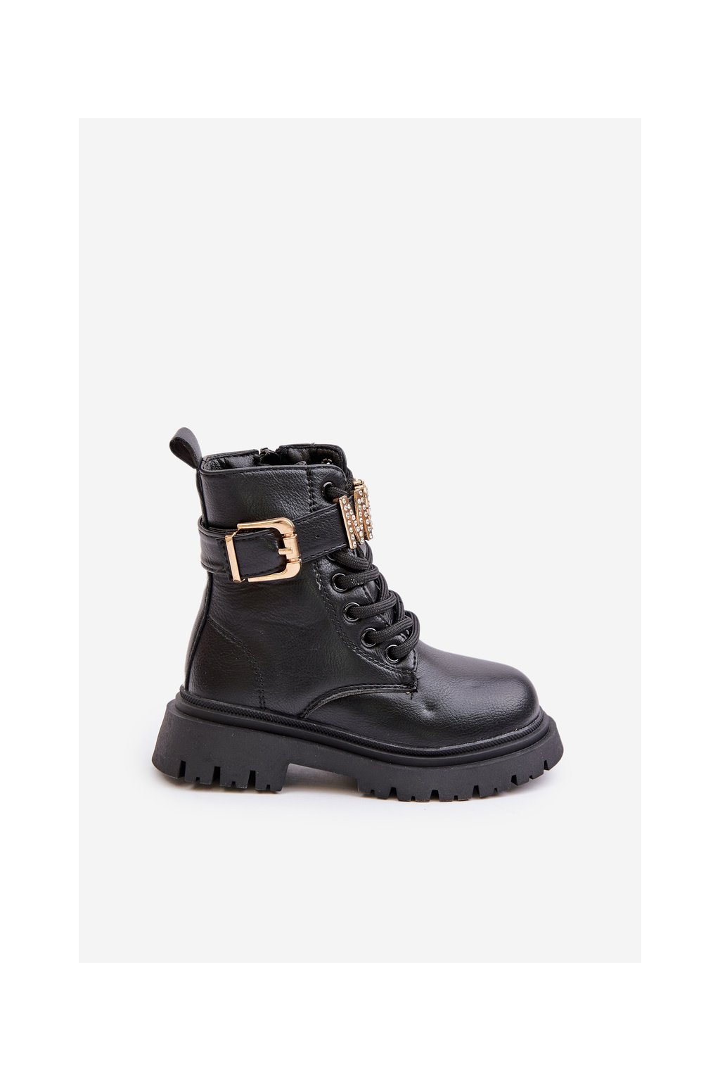 Čierne detské členkové topánky z eko kože na zips s rovnou podrážkou, kód produktu 7502-2A/3A BLACK
