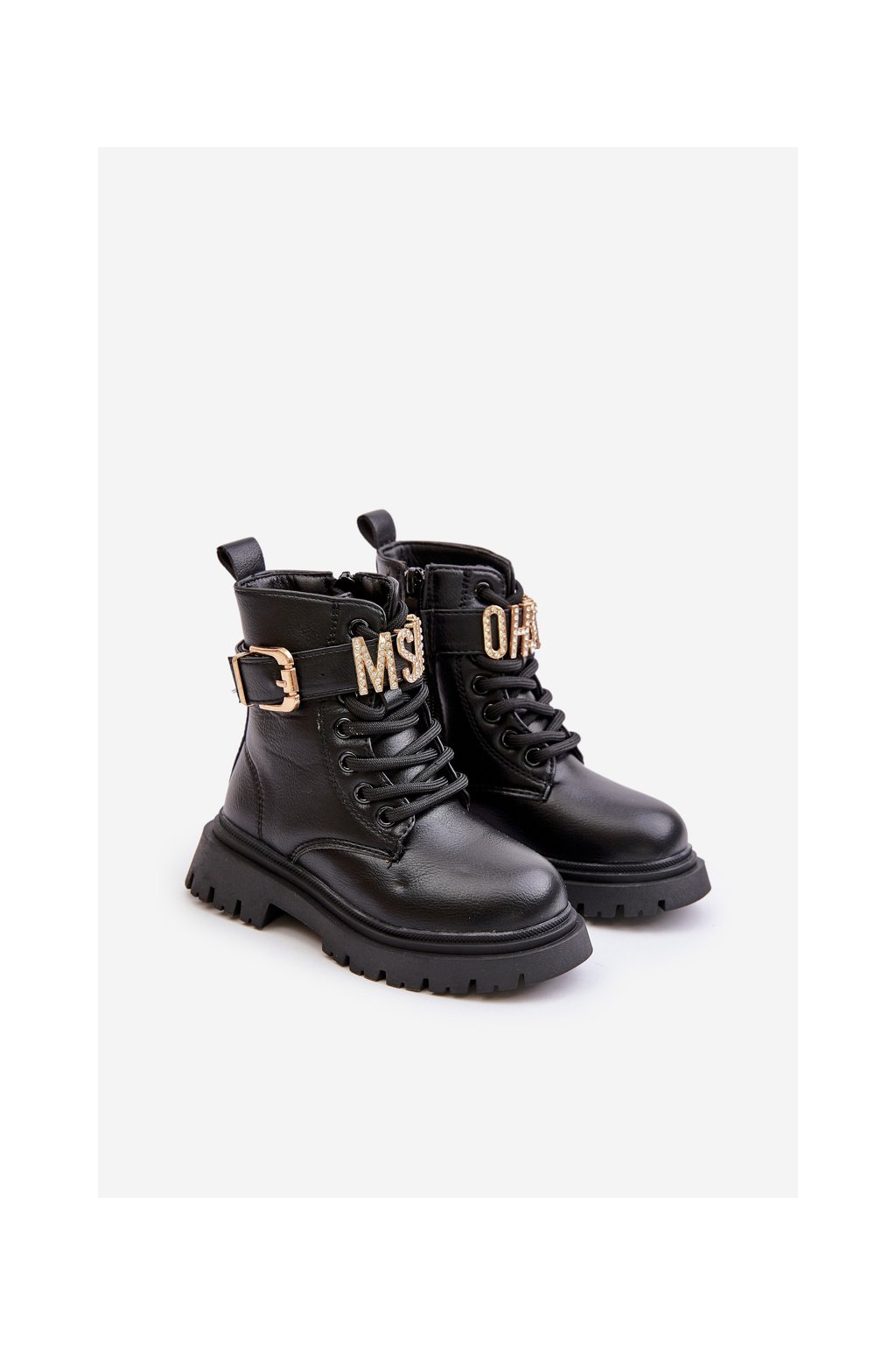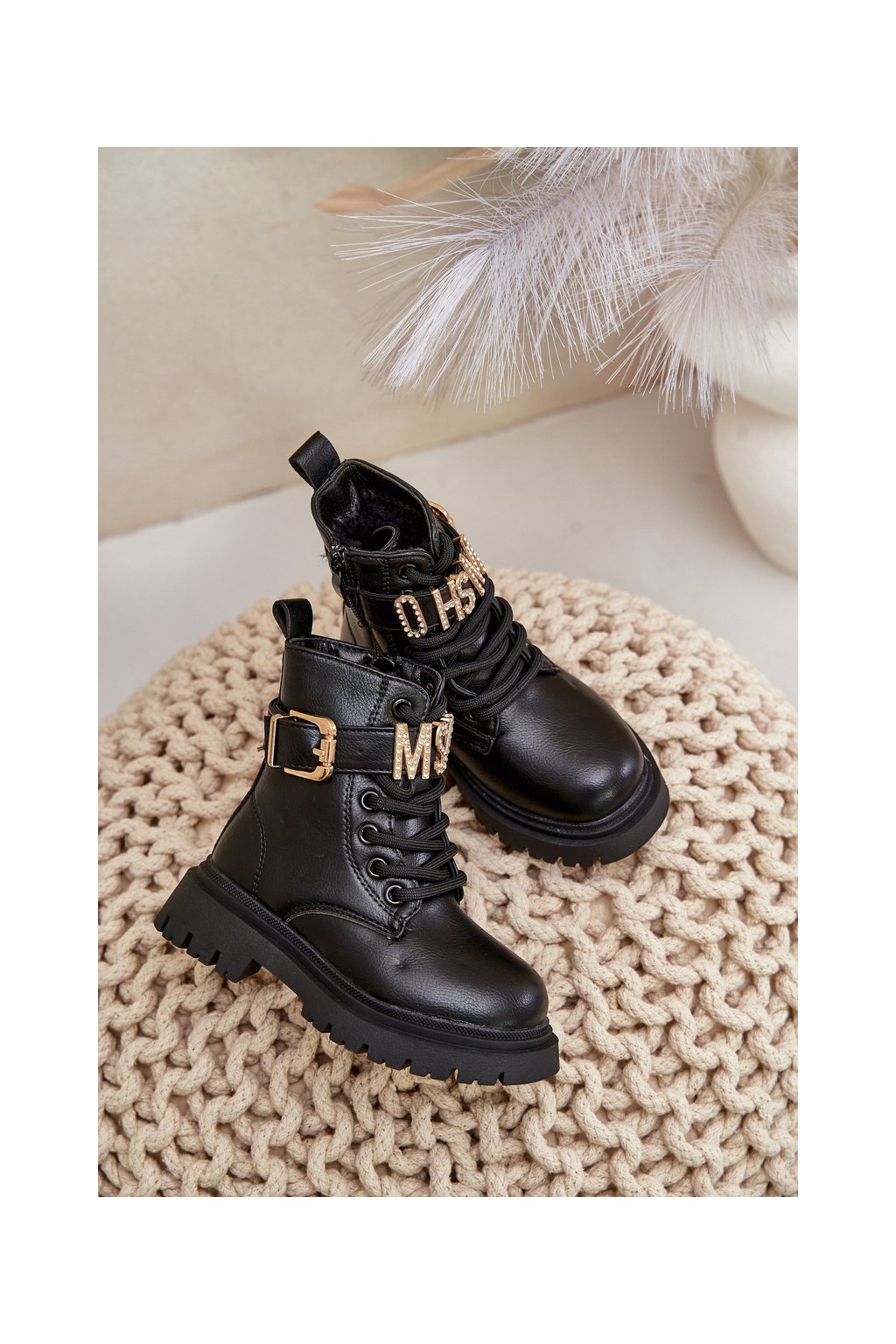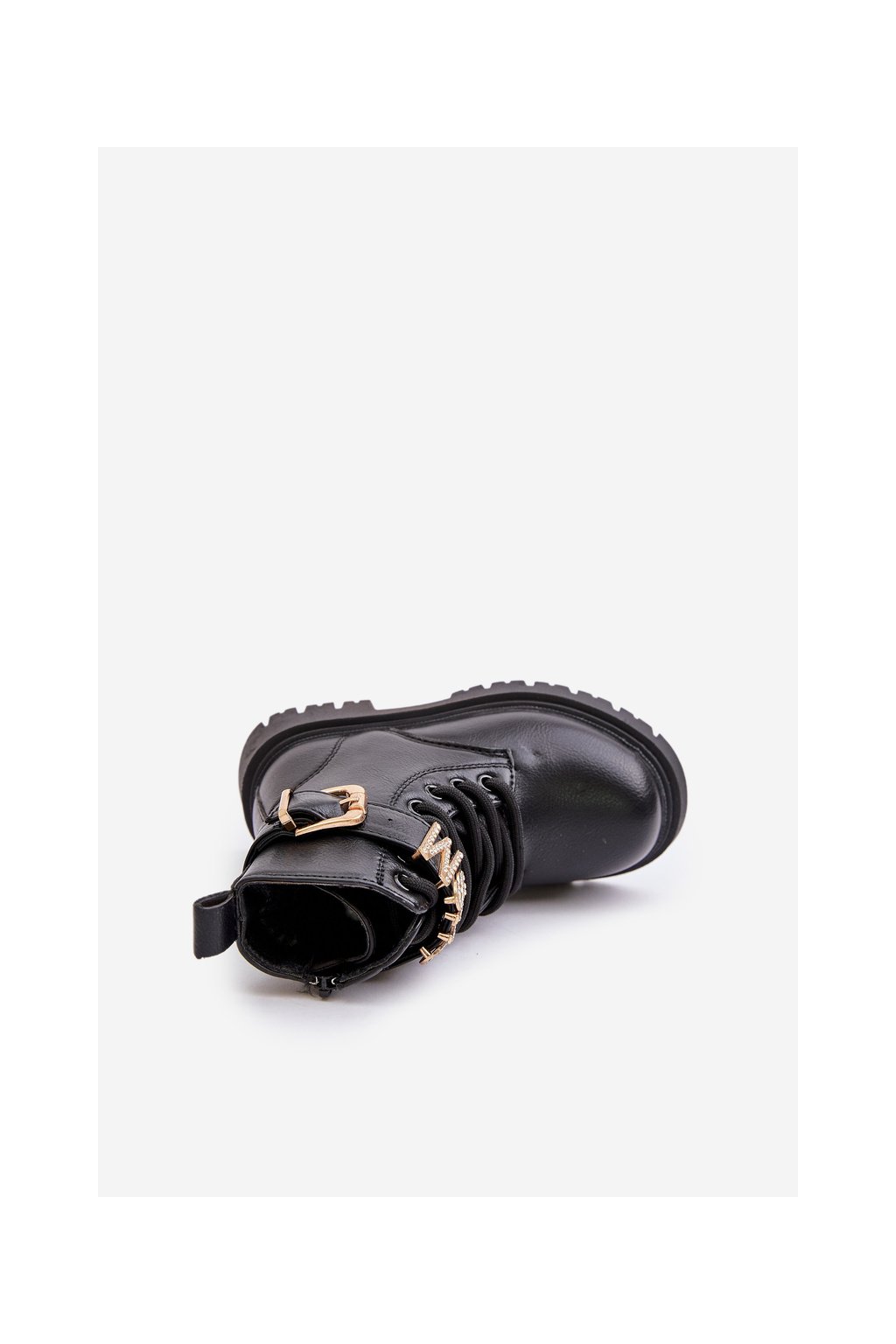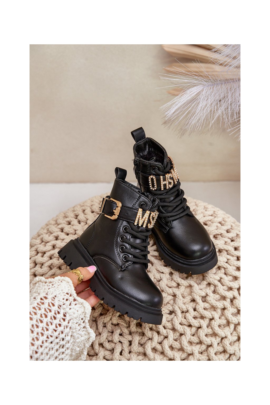 Čierne detské členkové topánky z eko kože na zips s rovnou podrážkou, kód produktu 7502-2A/3A BLACK