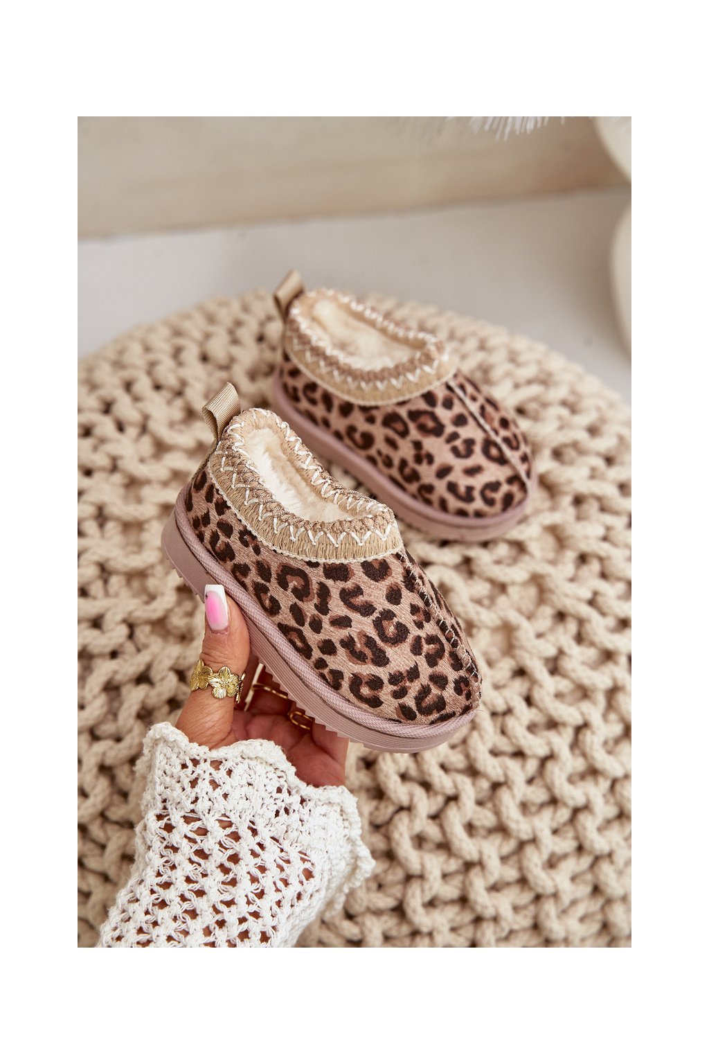 Sněhule Dětské Kotníkové Boty S Tygrím Vzorem Na Platformě Zateplené Kožíškem Hnědé Vilabria