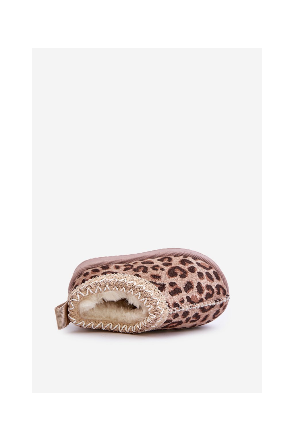 Hnedé detské členkové snežnice z eko semišu s hrejivou kožušinou na zateplenie, kód produktu 20219-1K/2K/3K LEOPARD