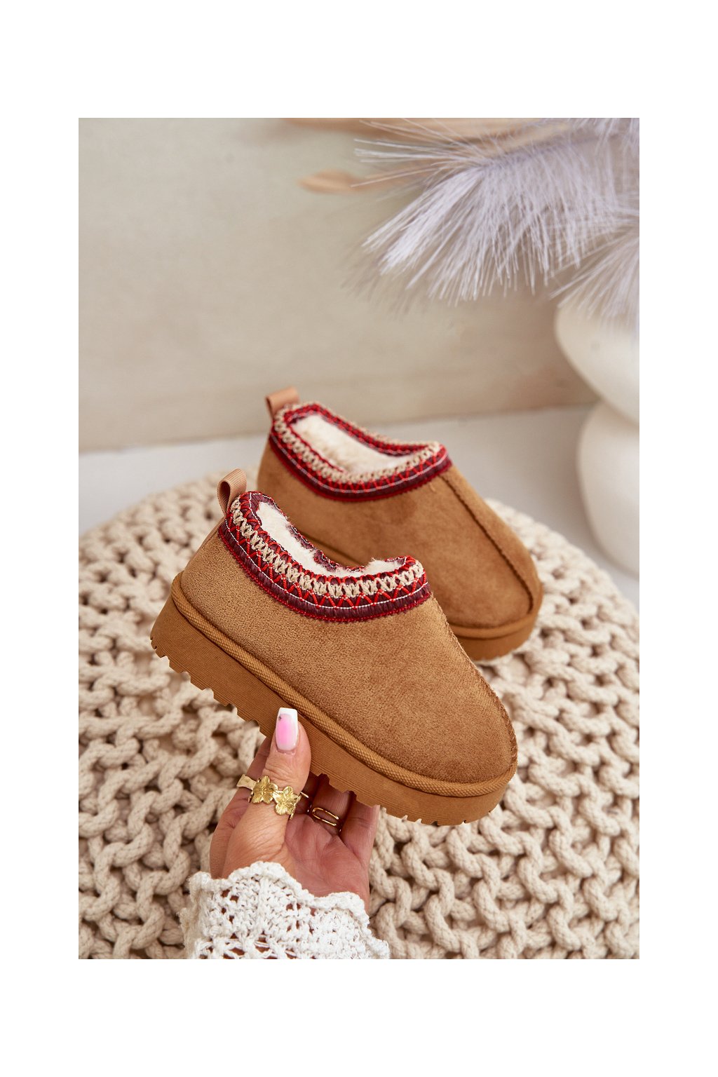 snehové členkové topánky Detské na platforme zateplené kožúškom camel vilabria / 20219-1B/2B/3B CAMEL