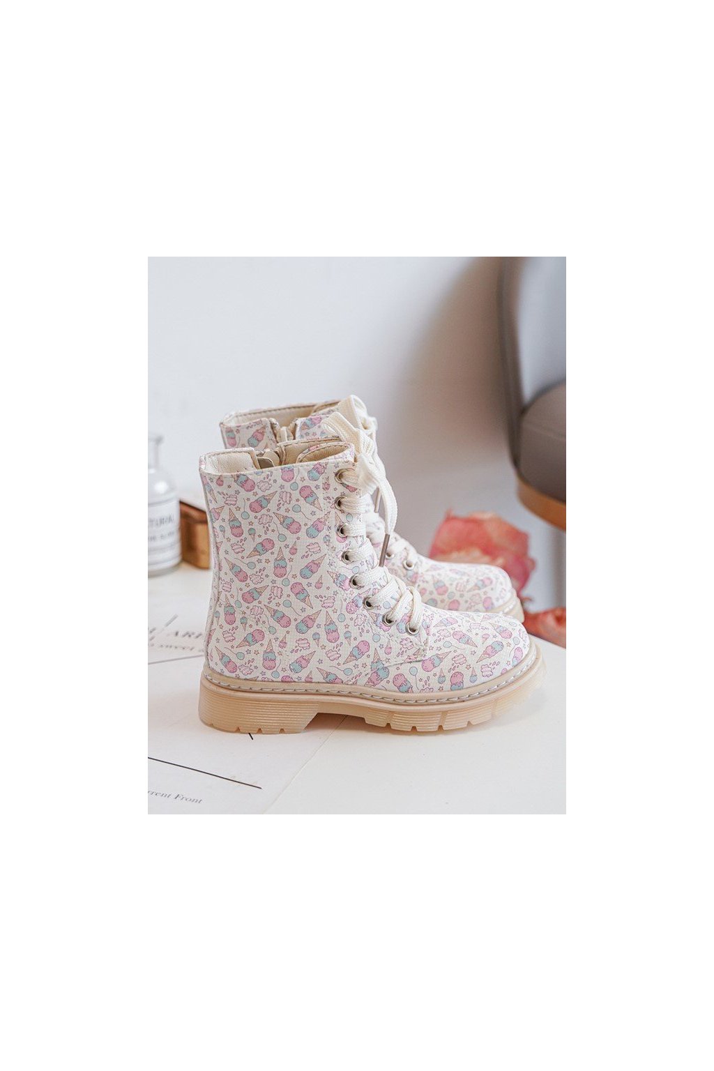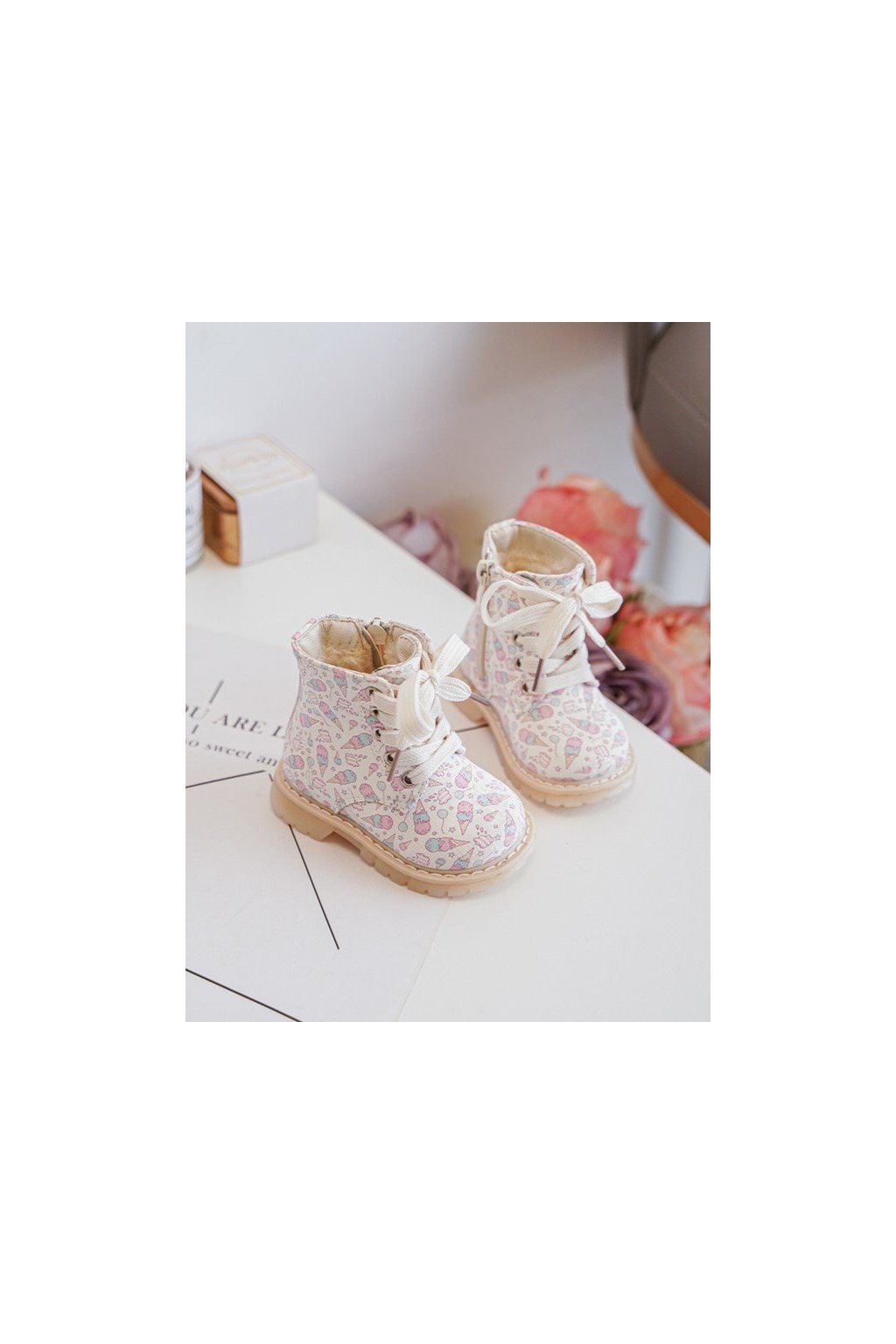 Detské členkové topánky béžové kód obuvi 2322-1A/2A/3A BEIGE