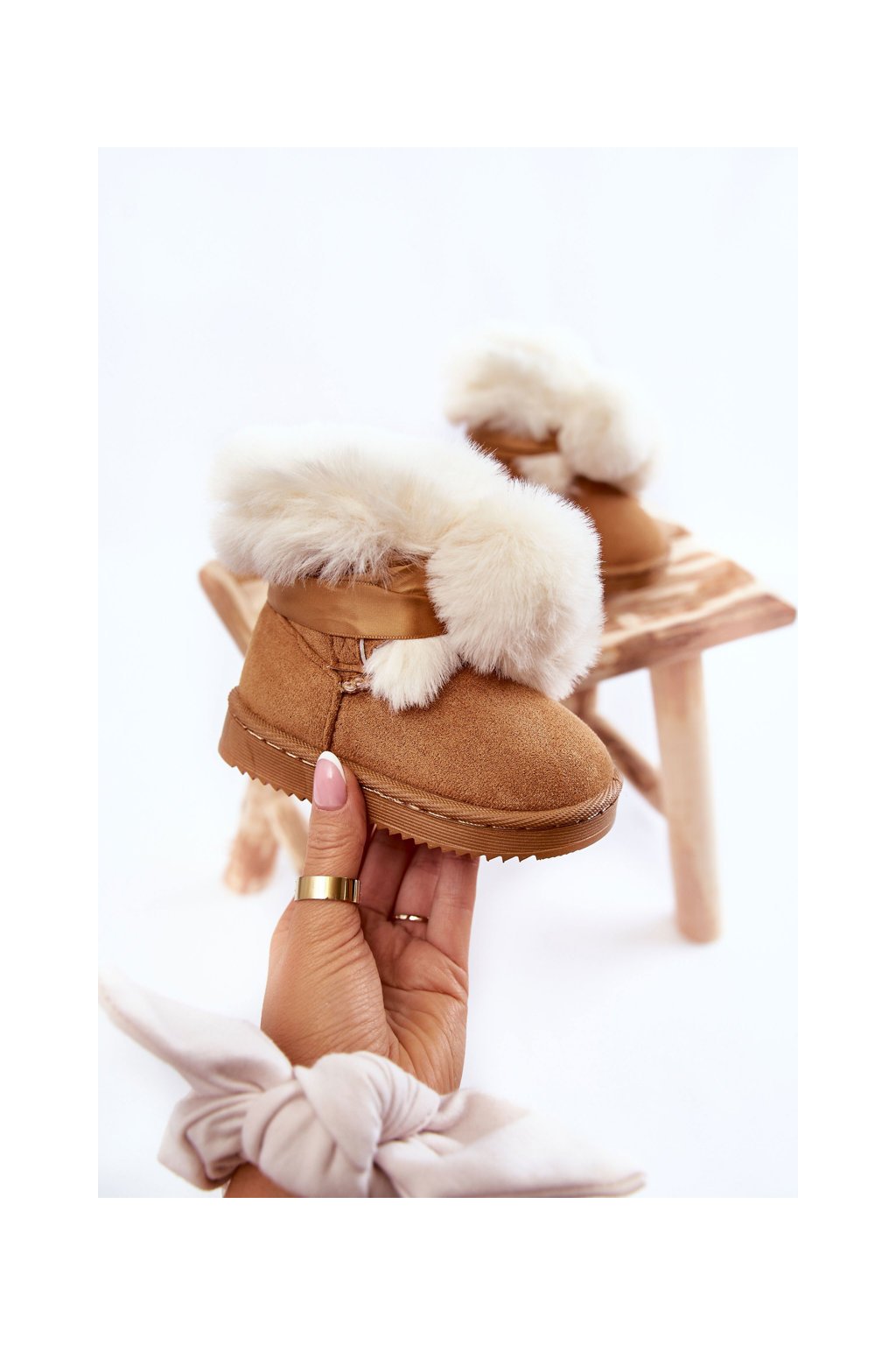 Detské mládežnické teplé snehule hnedé a bílá roofy / 20215-B KHAKI