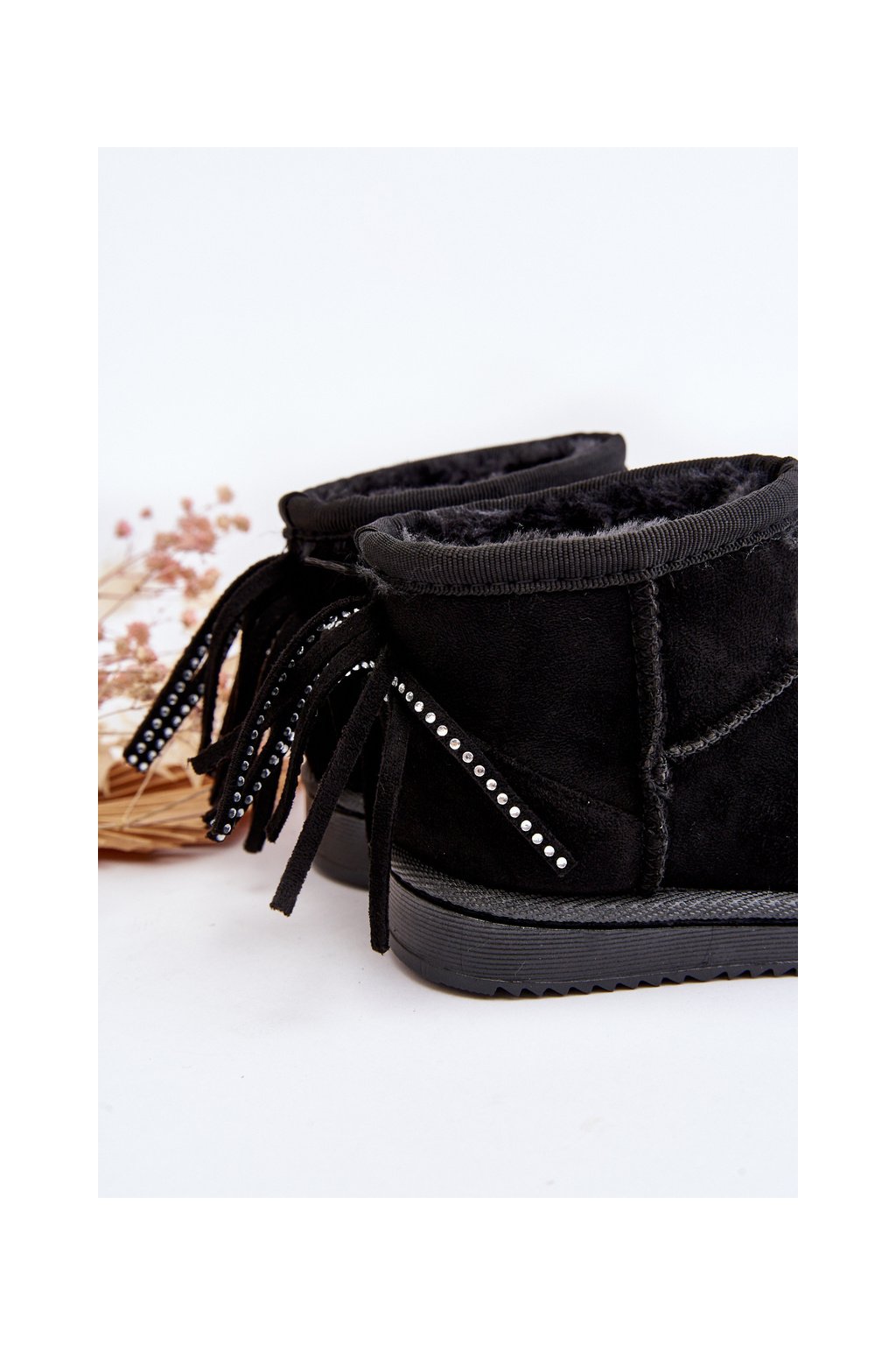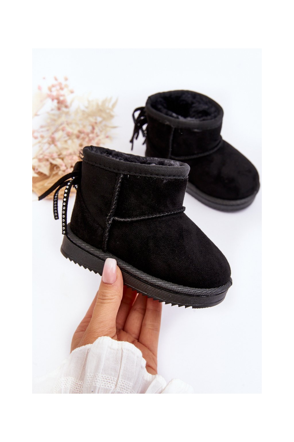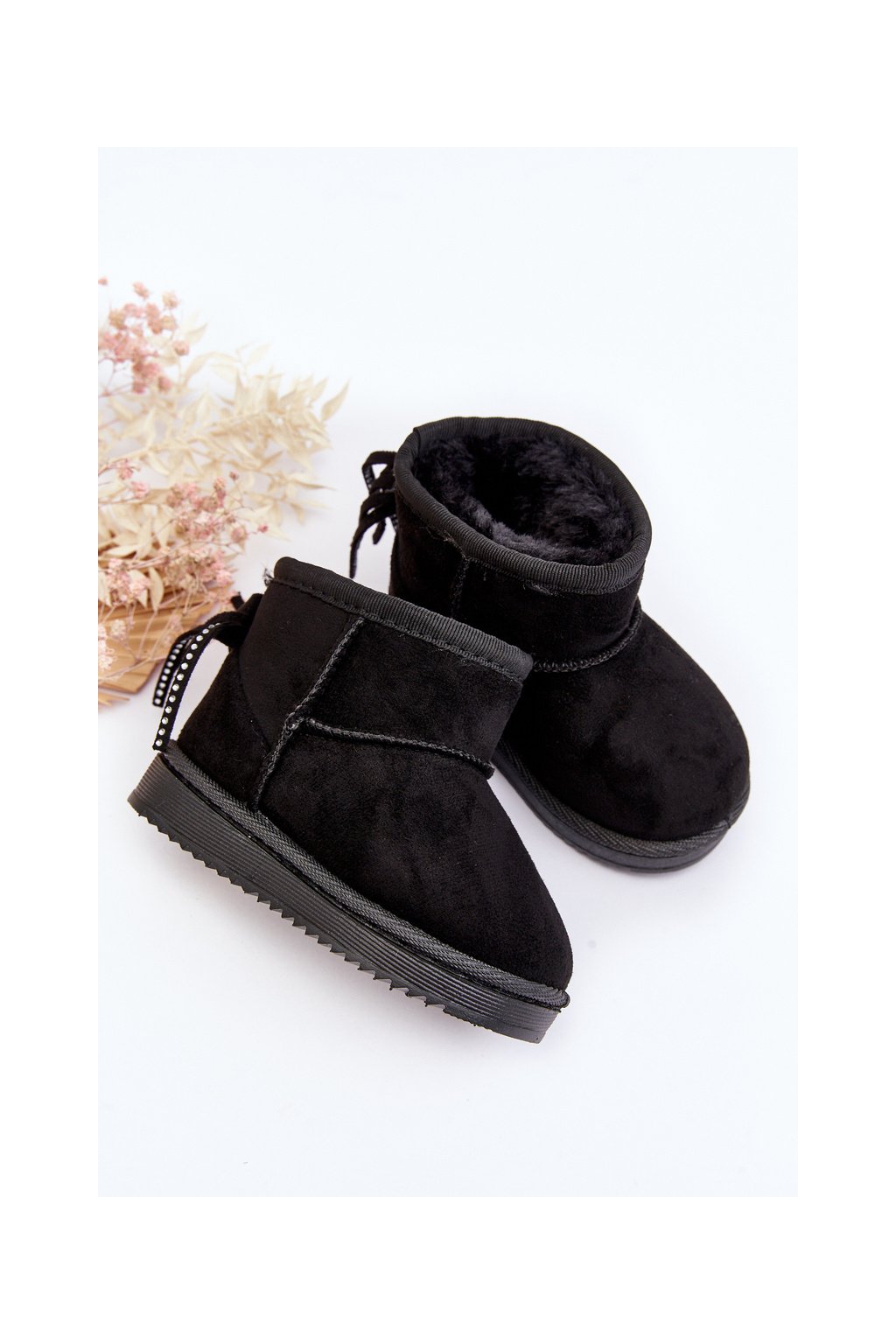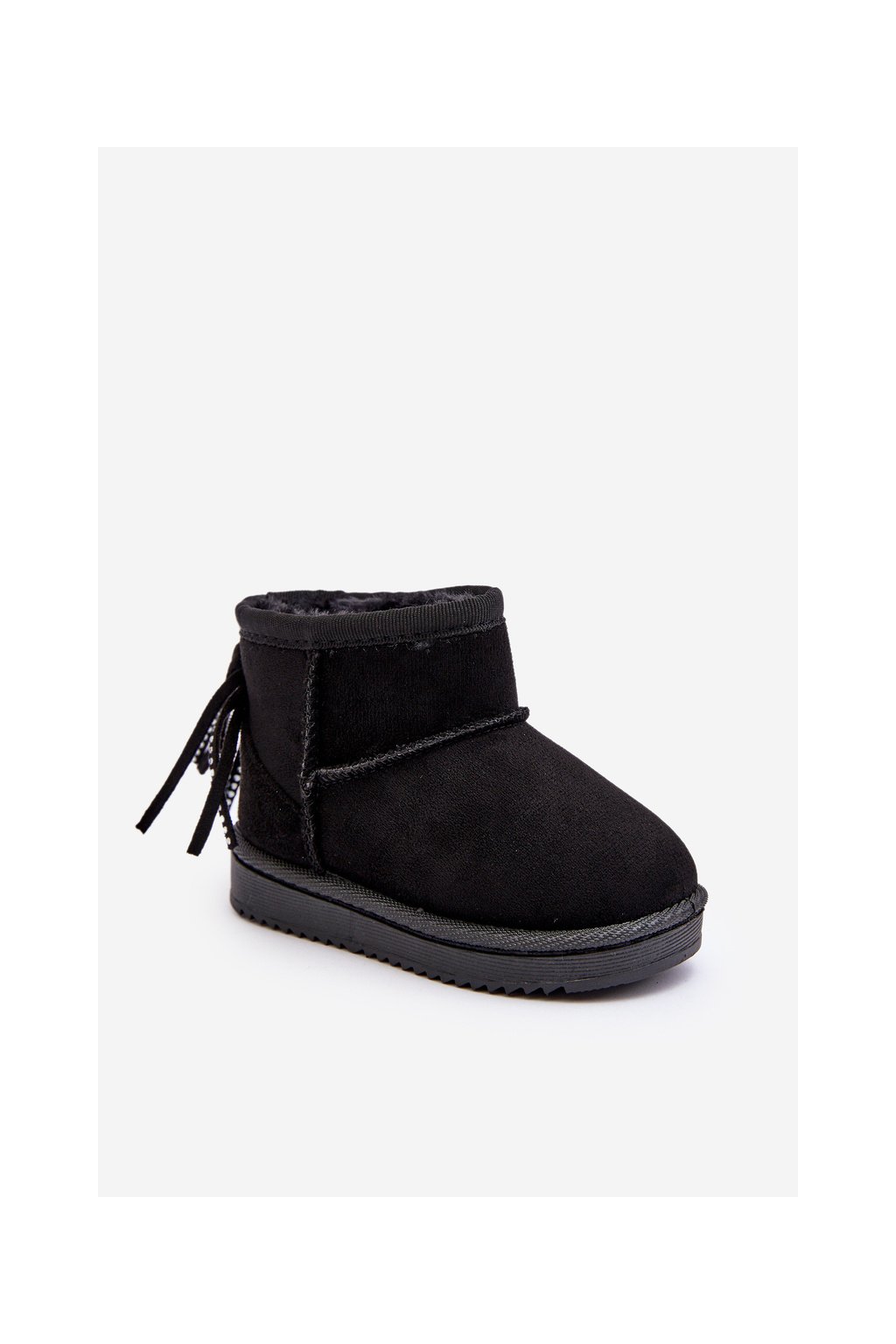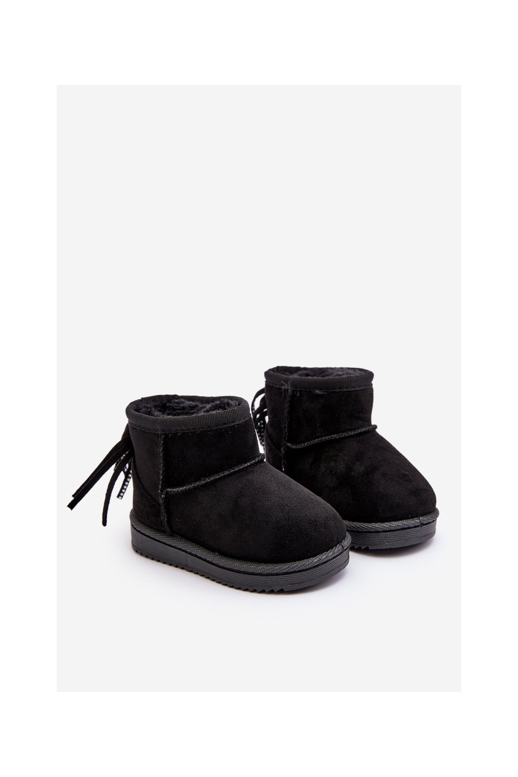 Detské čižmy s kožušinou a šňůrkami čierne mikyla / 20222-1A/2A/3A BLACK