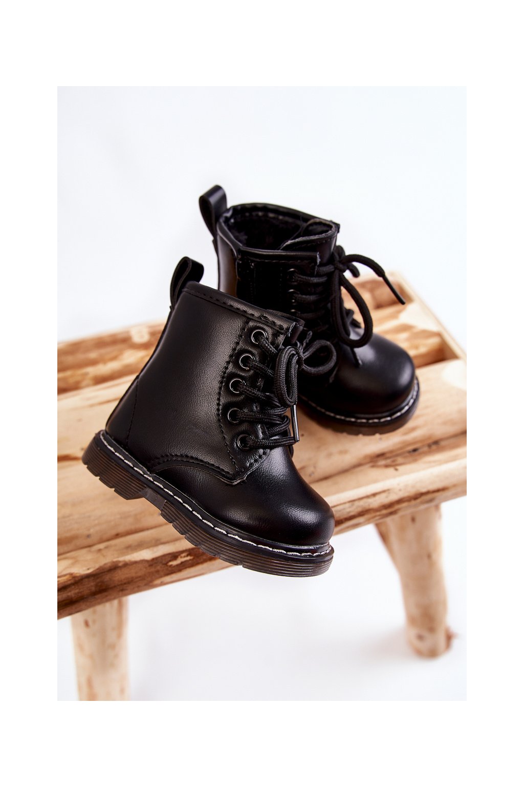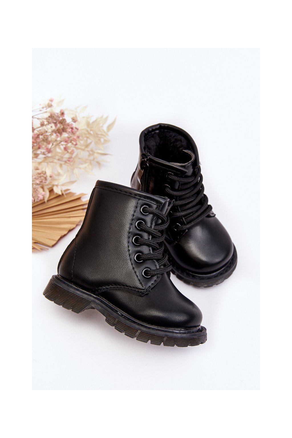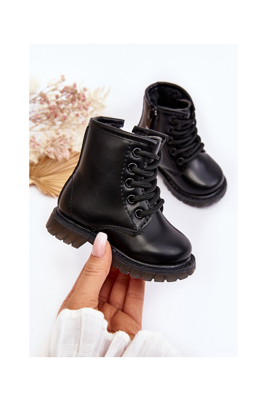Detské kožené čižmy se zipsom černe omua / 20318-A BLACK