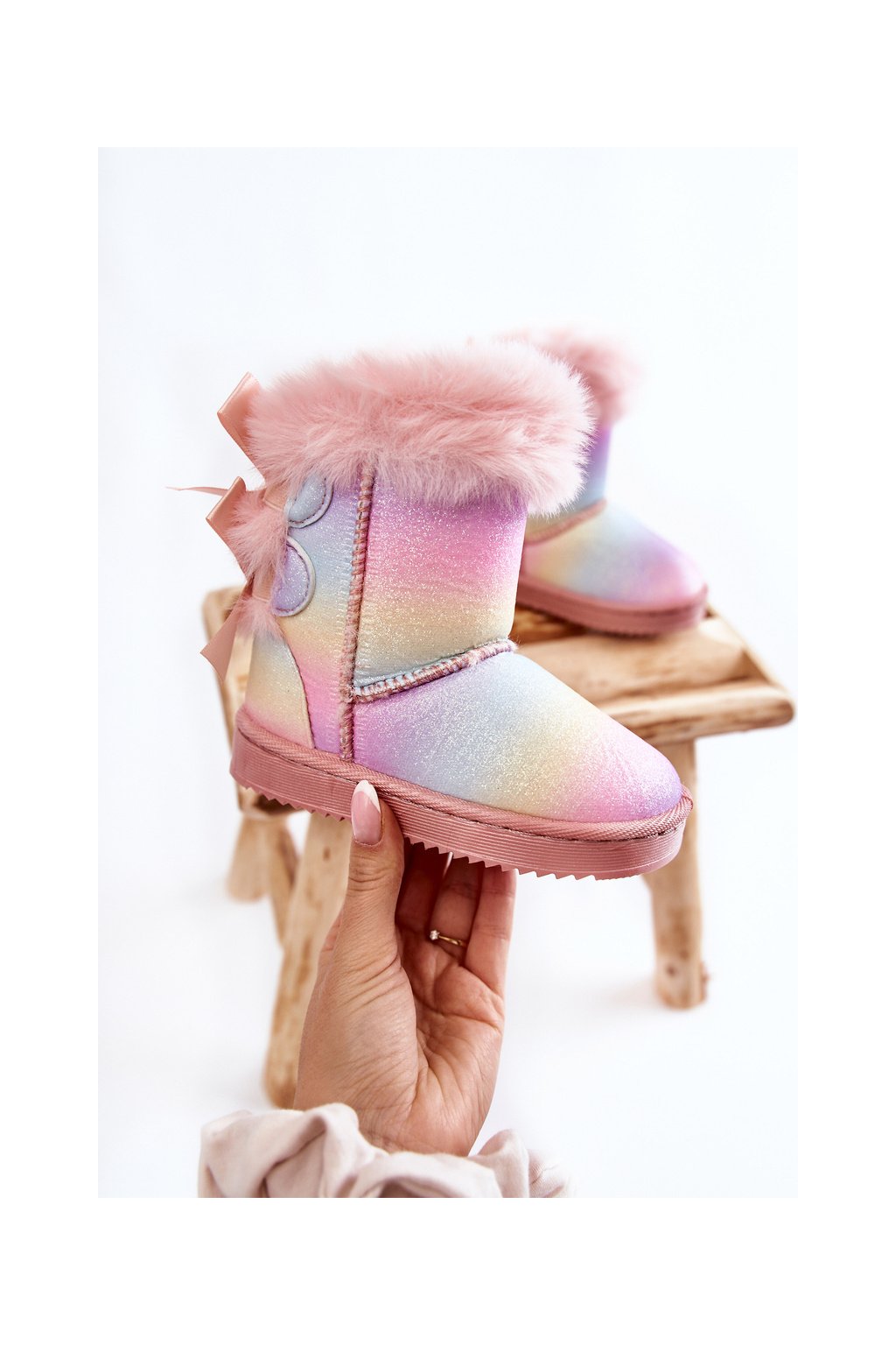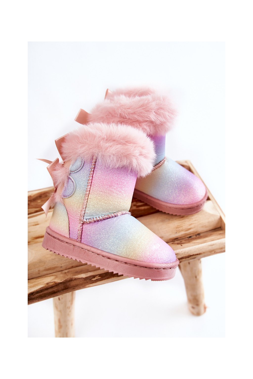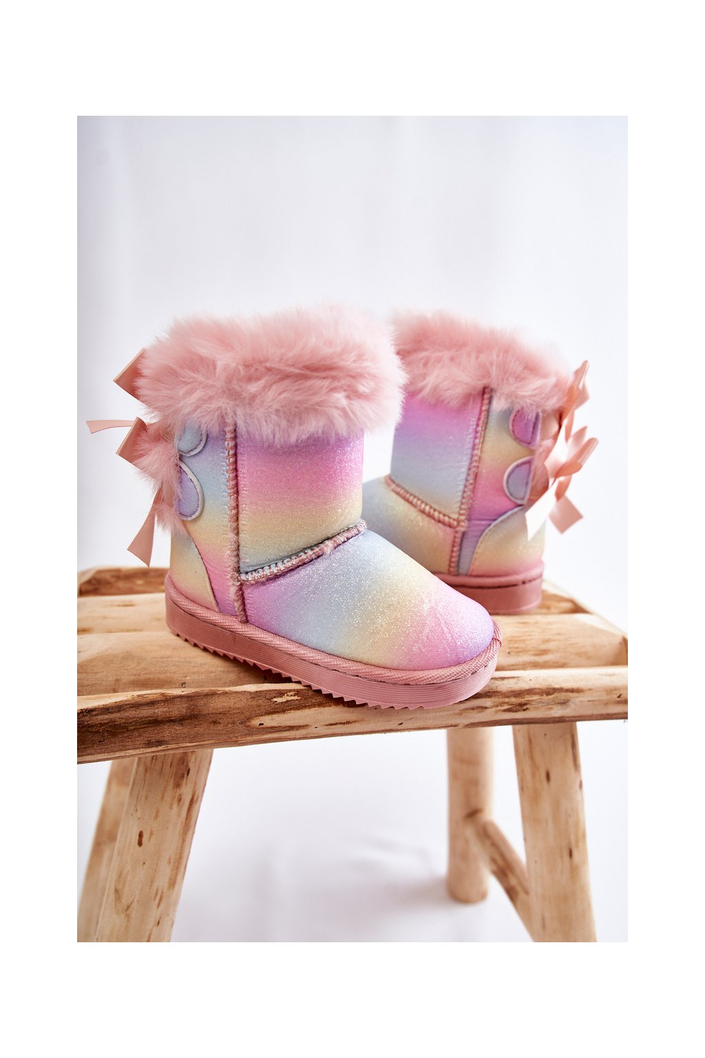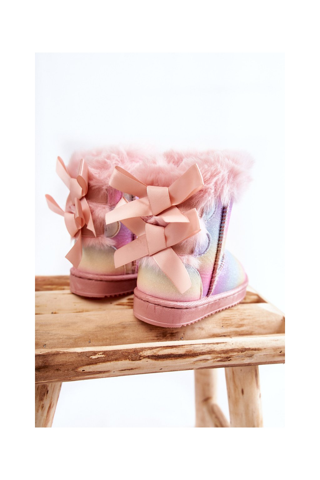 Detské teplé snehule semišové s mašlemi vícebarevne funky / 20231-D RAINBOW