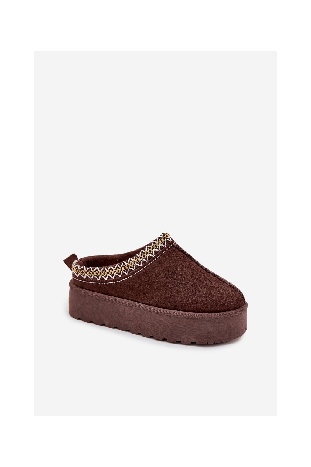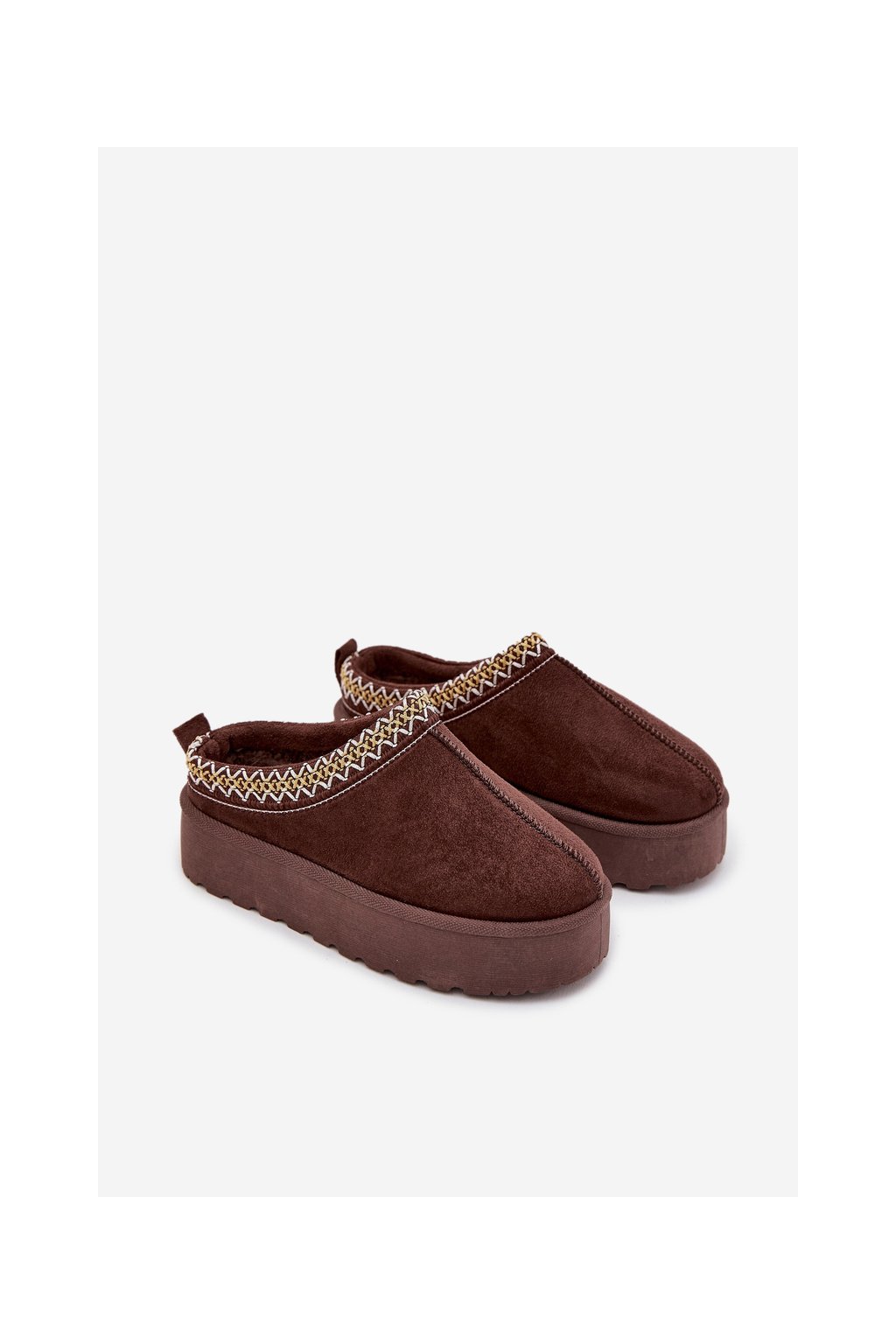 Dětské mládežnické sněhule s výšivkou na platformě čokoládové Jolisse