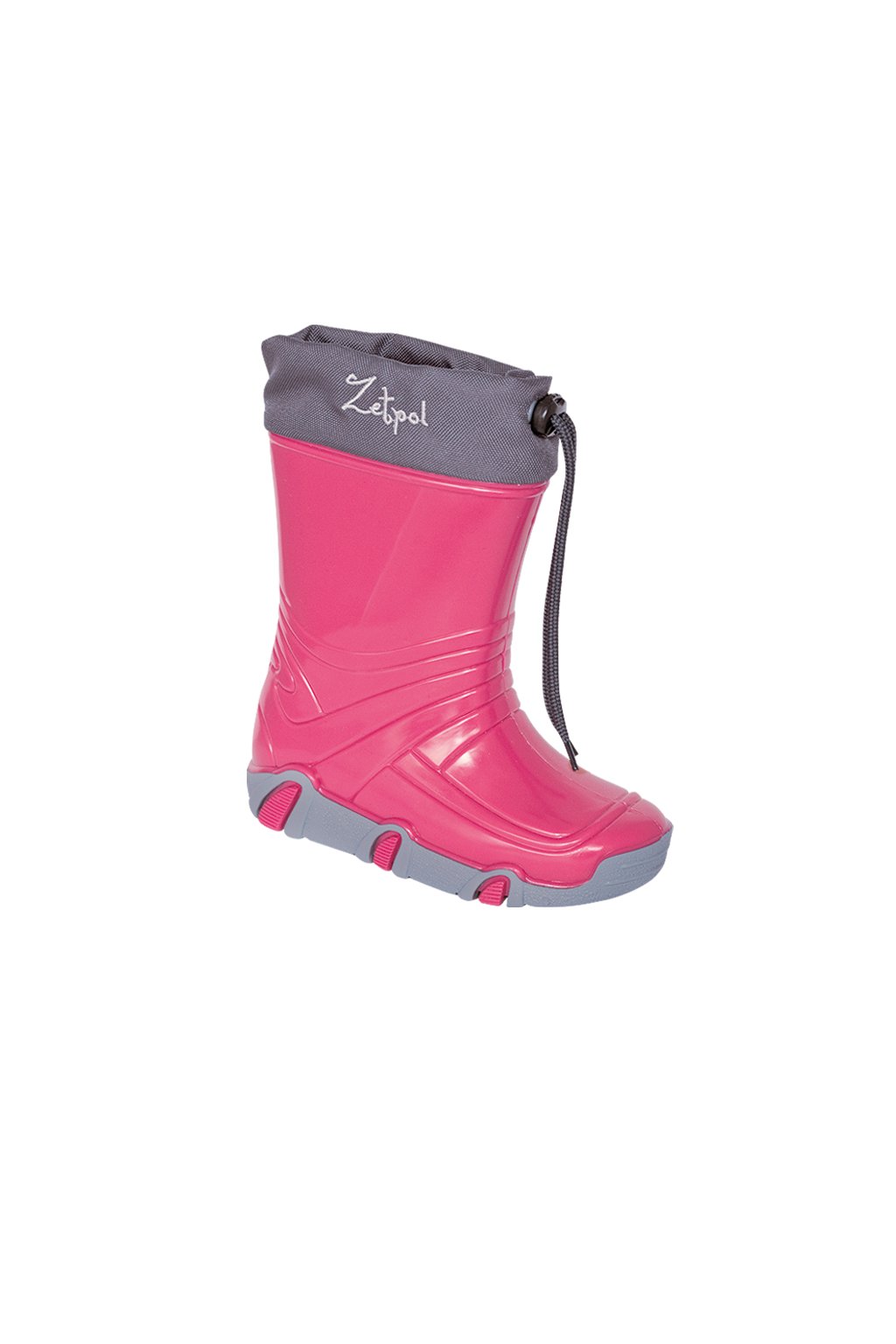 Ružové detské gumáky s nastaviteľným golierom a vyšívaním, vodotesné, kód produktu GU01 Pink