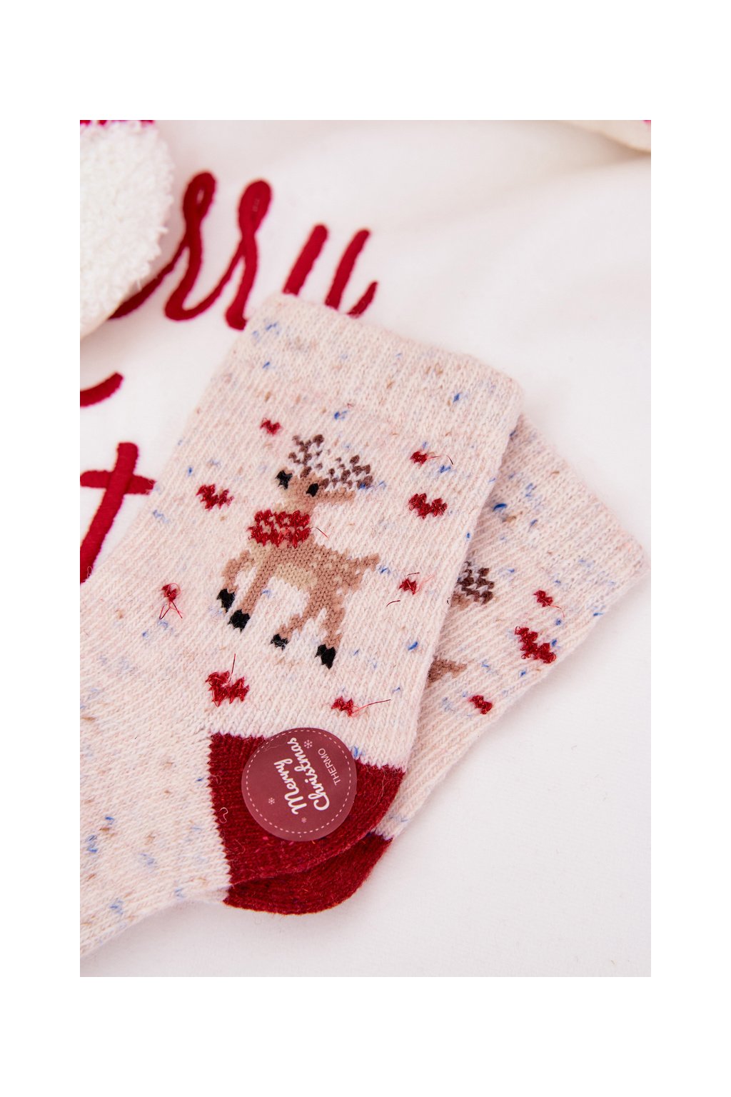 Červené detské zateplené ponožky s baránkom a motívom snežáka, kód produktu DN711 RED