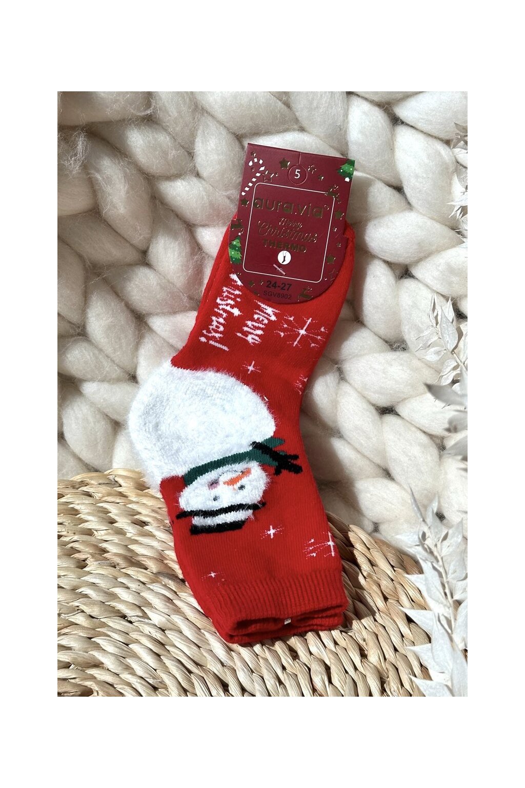 Červené detské bavlnené ponožky s ozdobným vzorom, kód produktu SK.32978/SGV8902