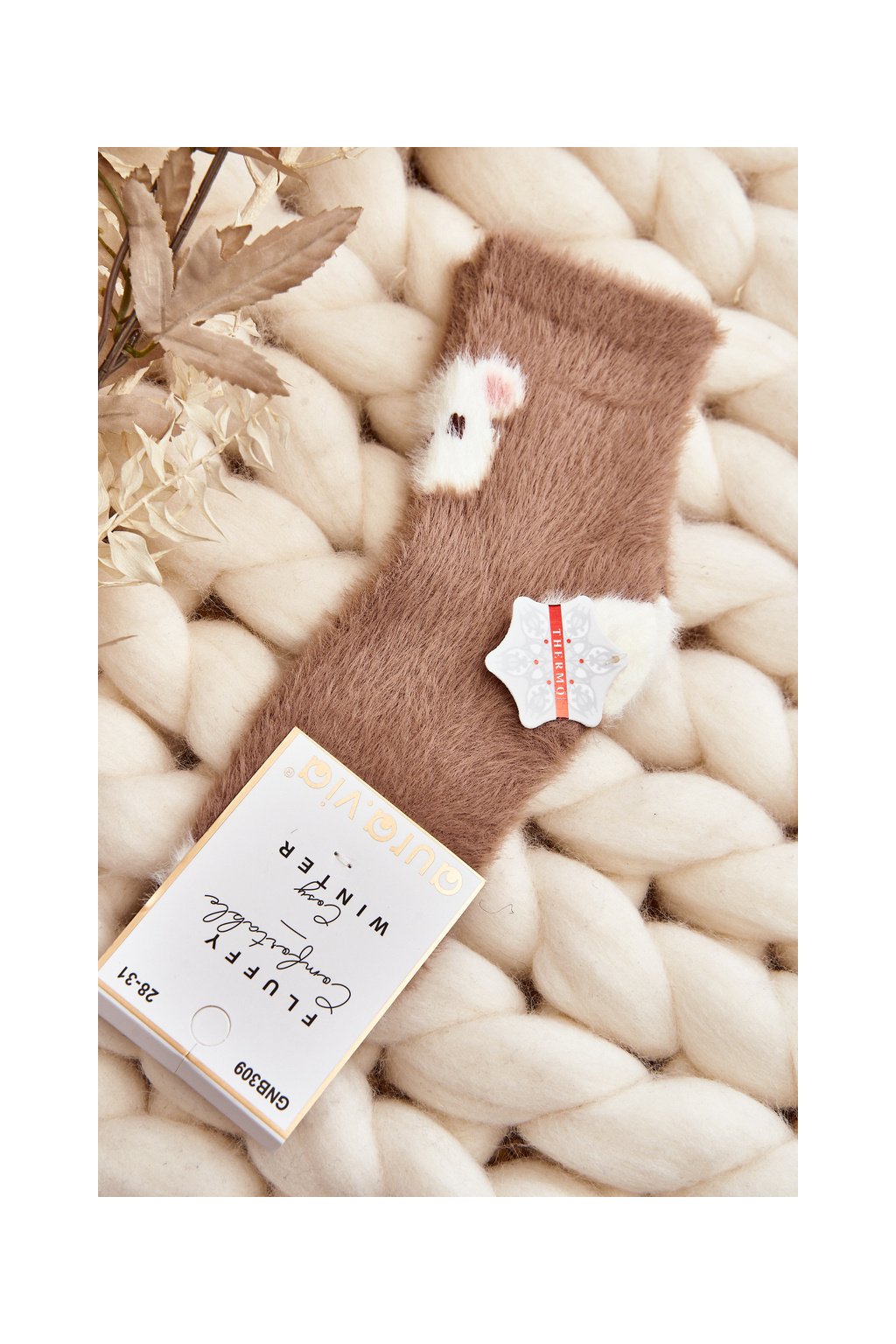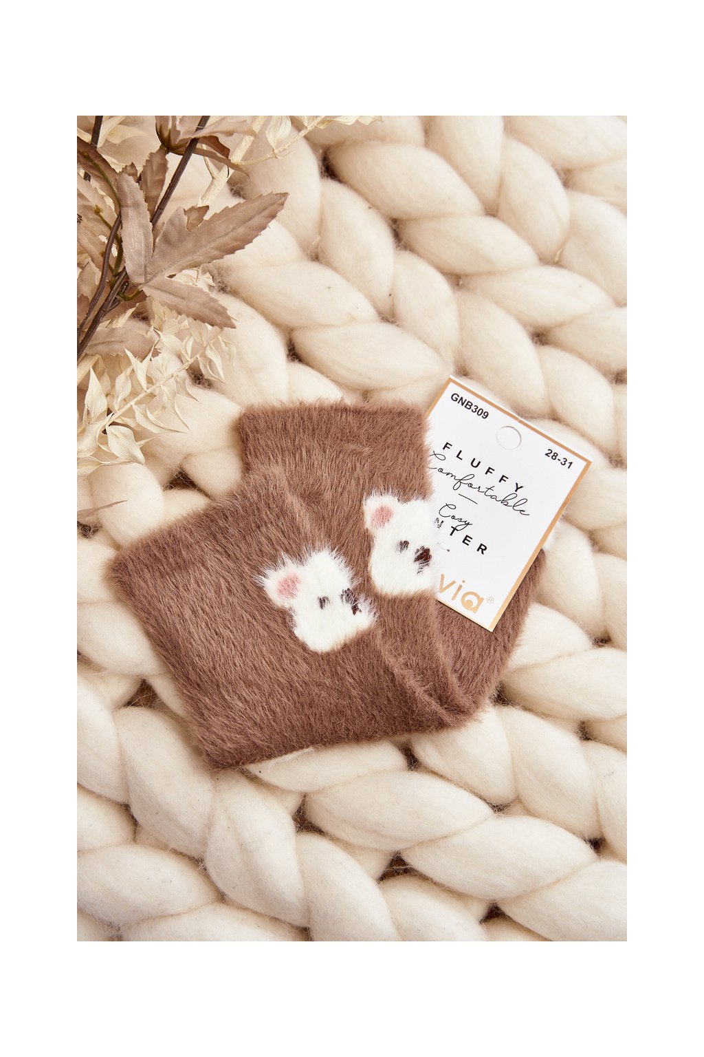 Detské teplé ponožky s baránkom tmavohnedé, protišmykové, kód produktu DN601 Dr.Brown