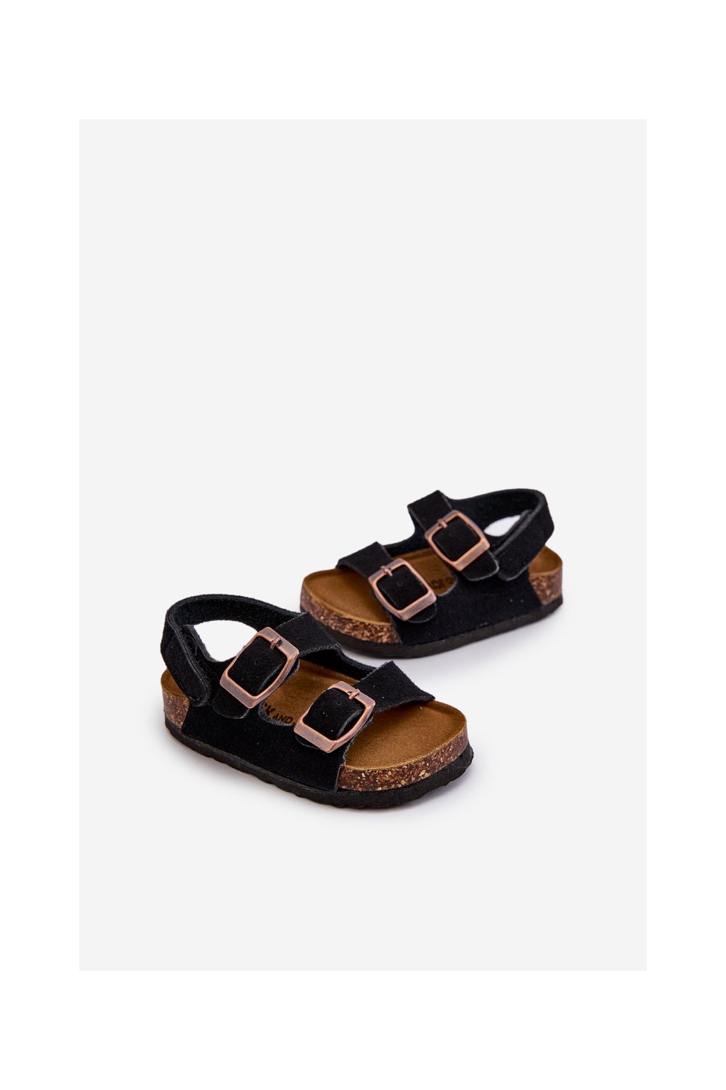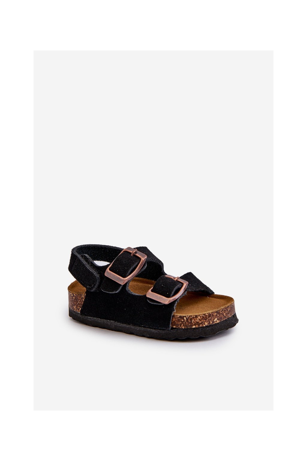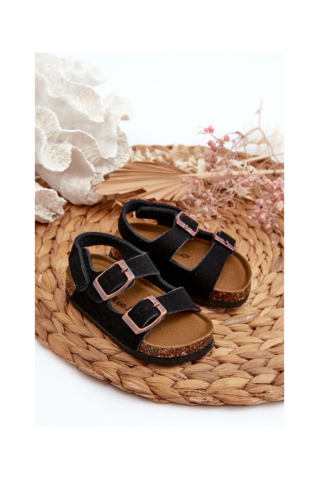 Detské sandálky na korkové platforme se suchým zipsom čierne rorria / 352-1A/2A/3A BLK