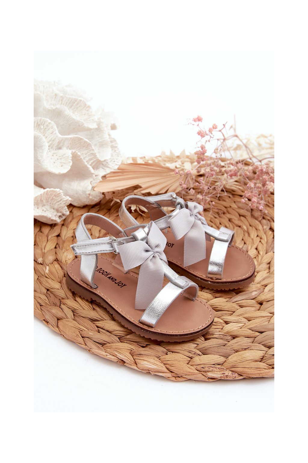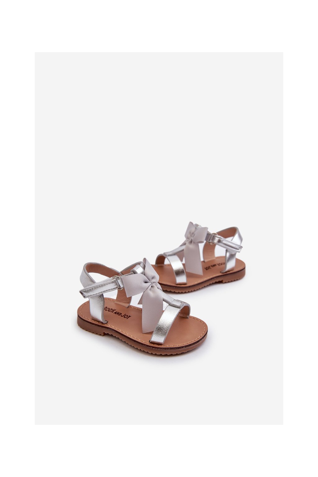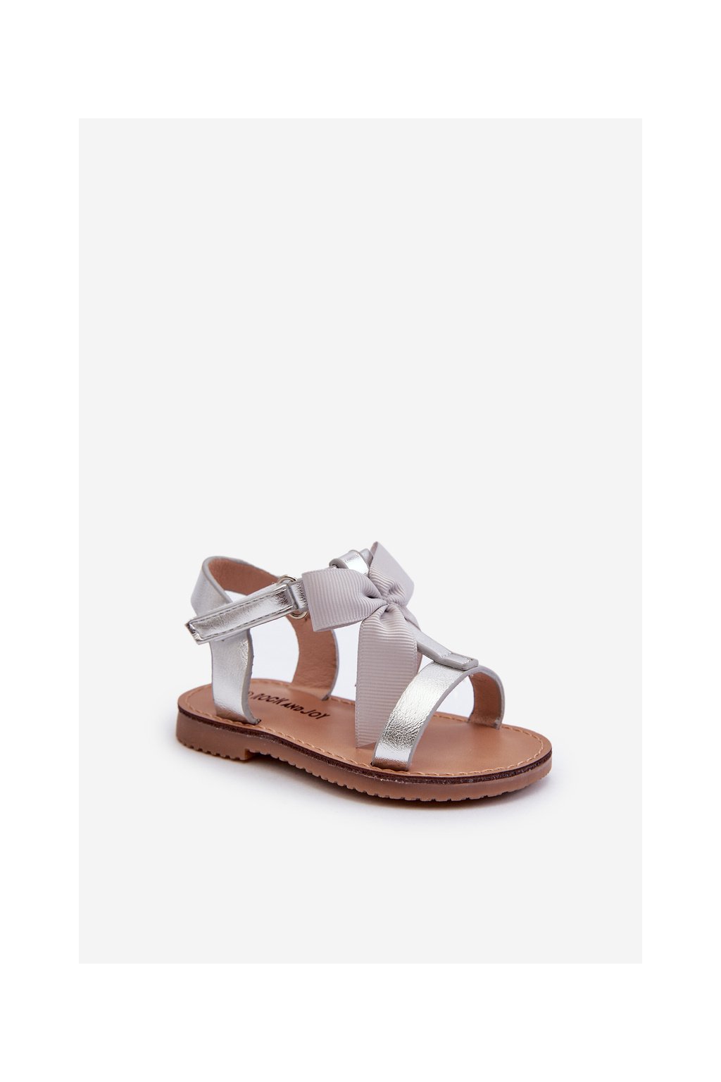 Detské sandálky s mašľou na suchý zips strieborné joratia / 333-1E/2E/3E SILVER