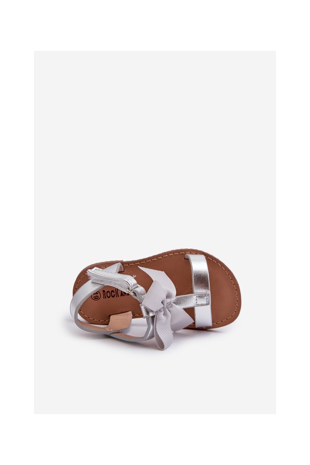 Detské sandálky s mašľou na suchý zips strieborné joratia / 333-1E/2E/3E SILVER (Veľkosť 19)