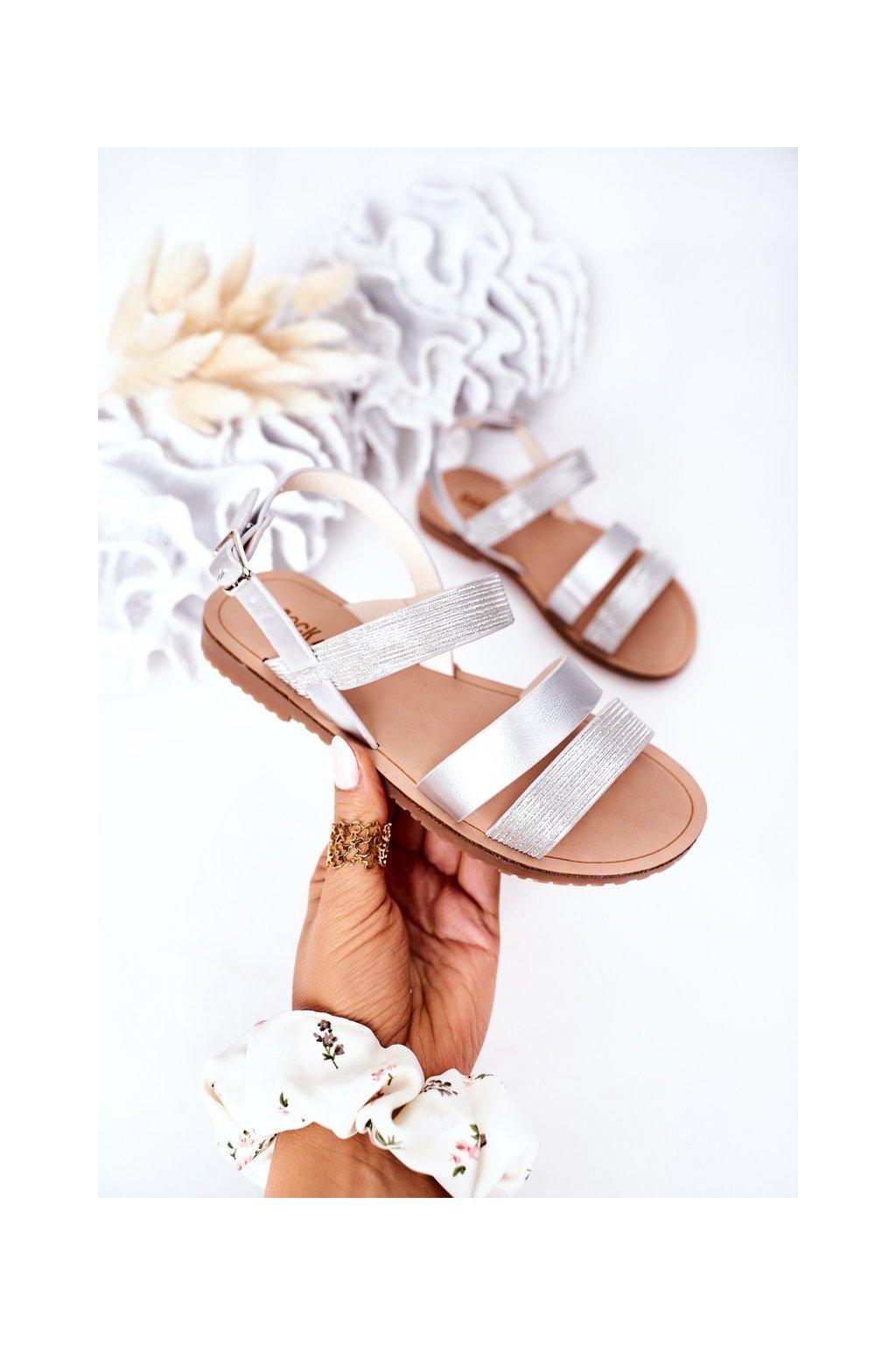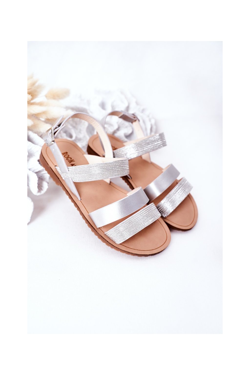 Detské lesklé Sandále strieborné natalie / 255-C SILVER