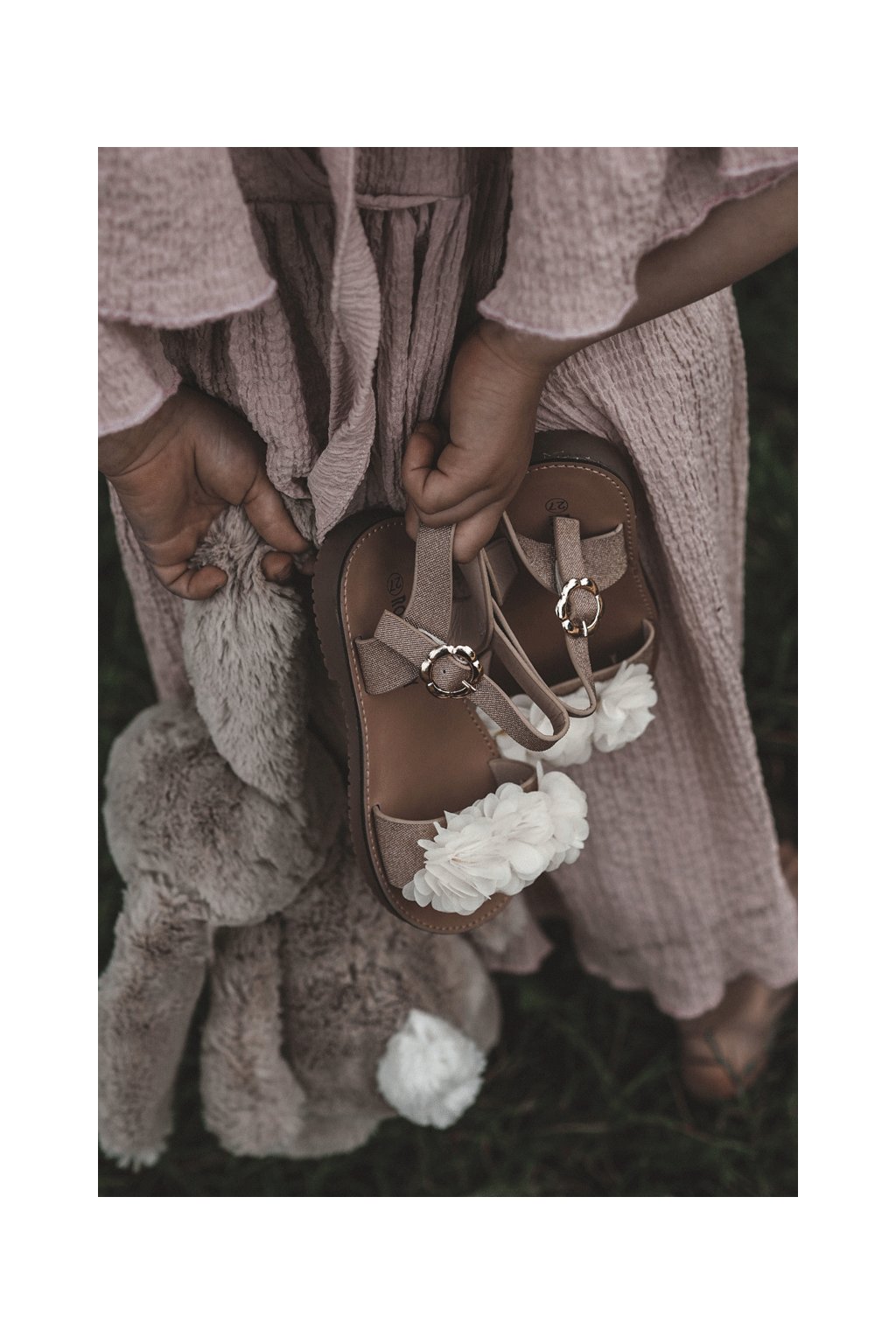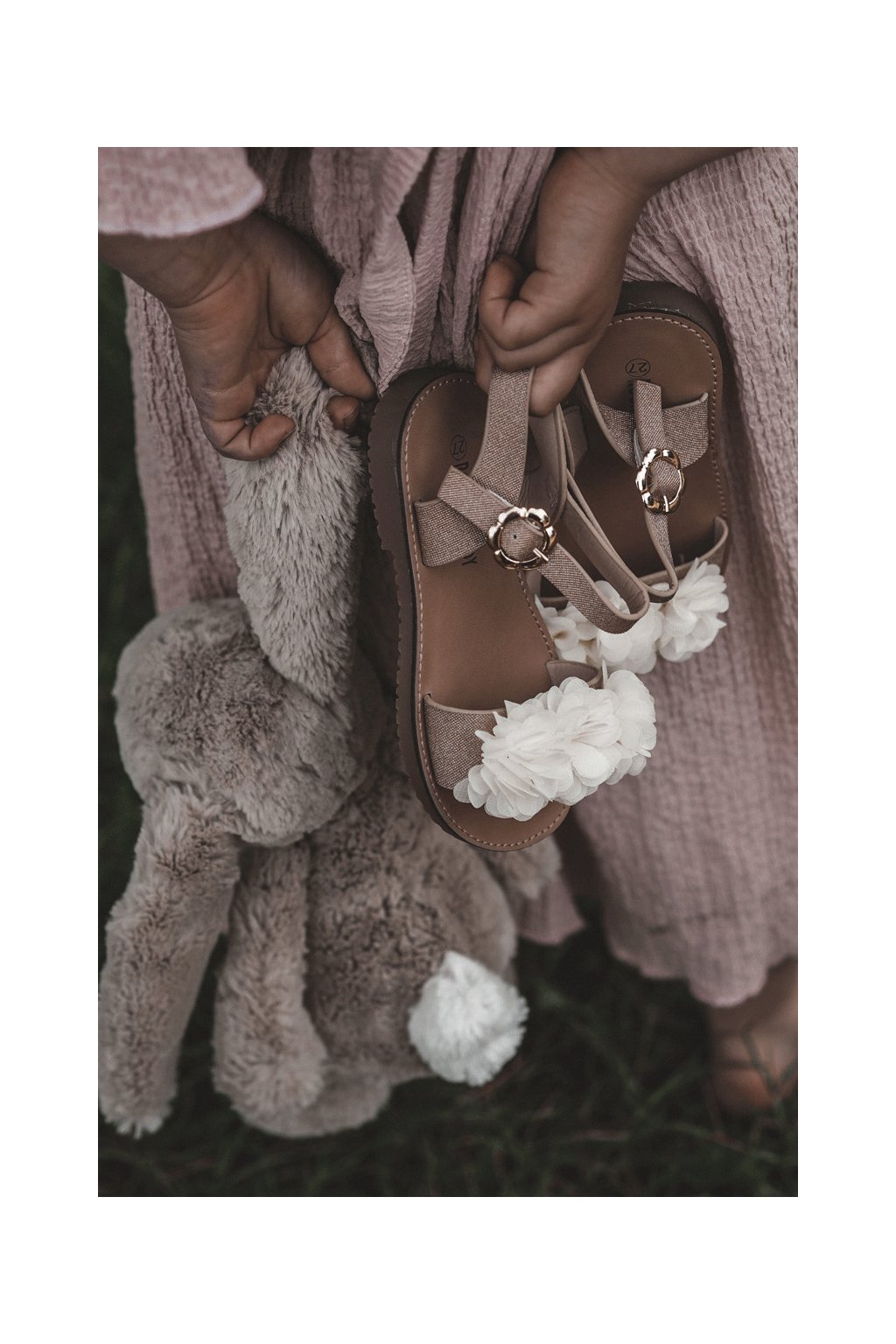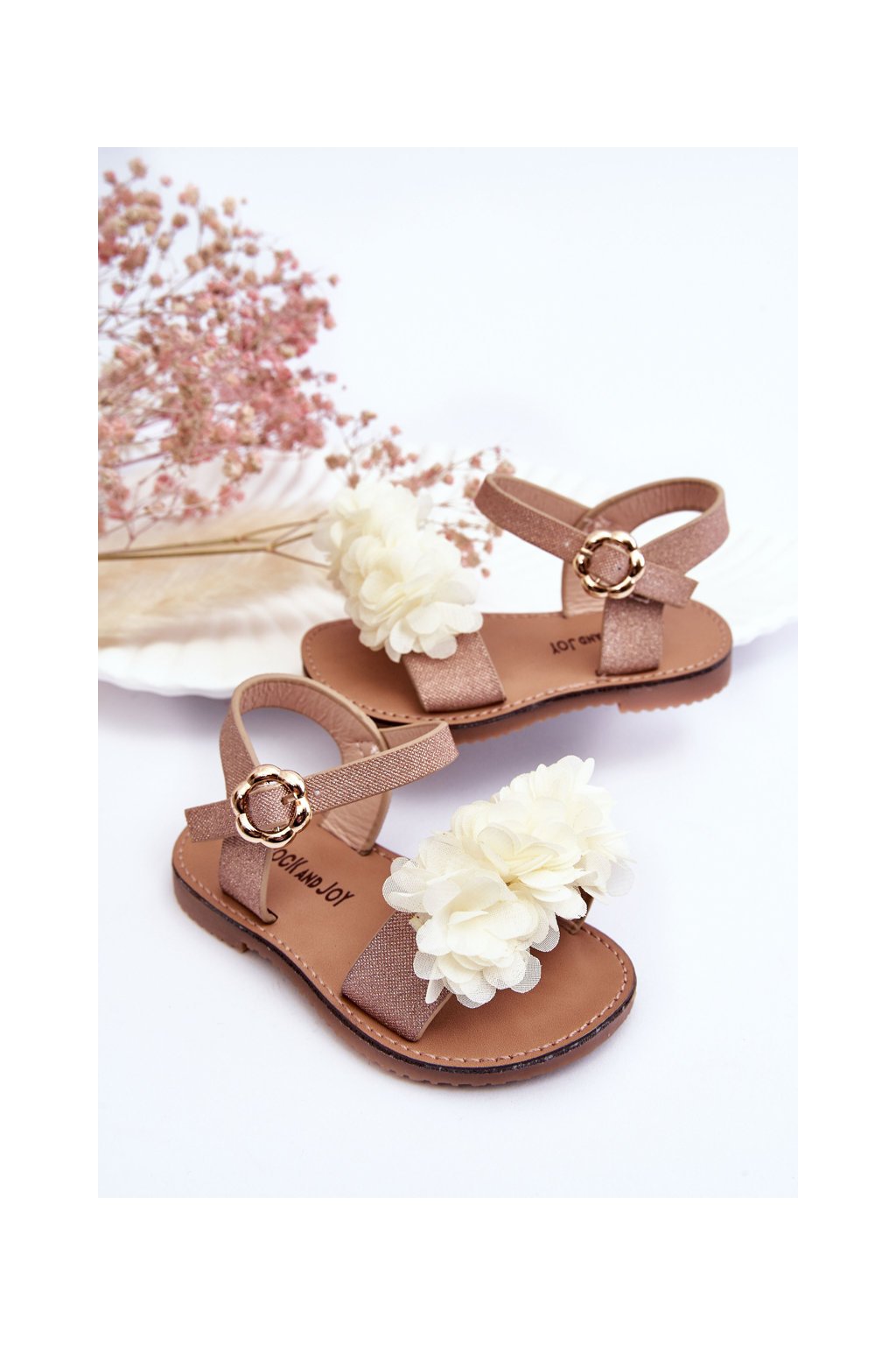 Módní dětské sandály s květy Béžovo-zlaté Poly