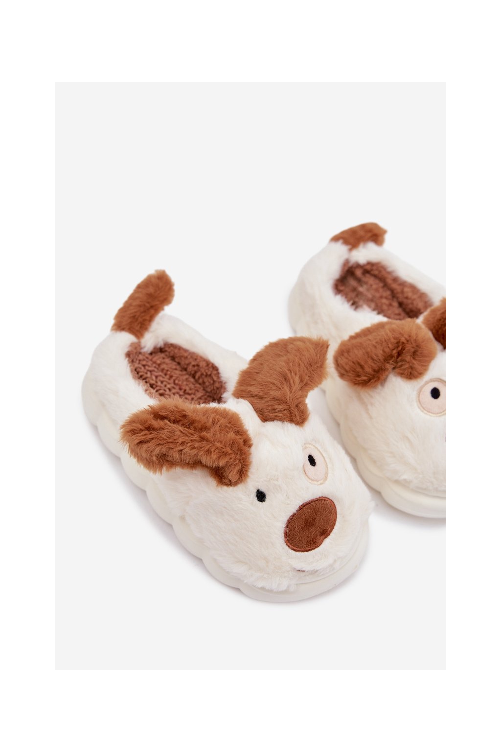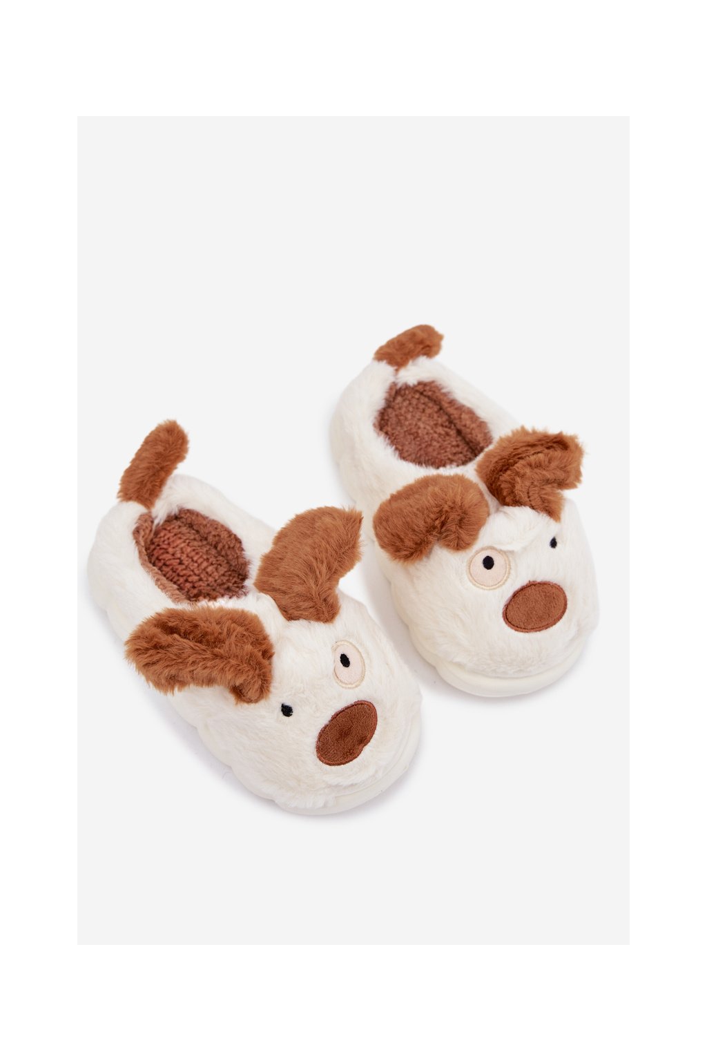 Detské chlupaté bačkory pejskové hnedé farnise / KIT255121-0 BROWN (Veľkosť 30/31)