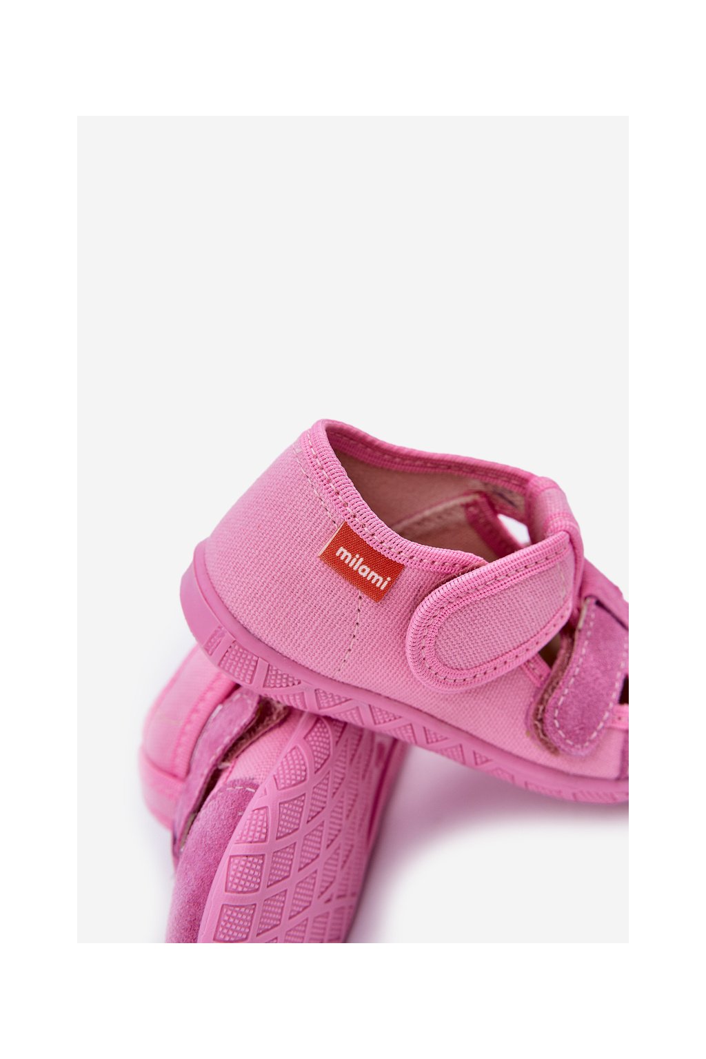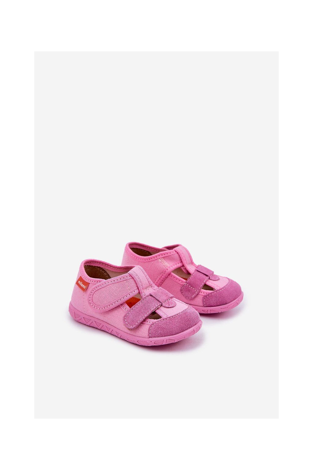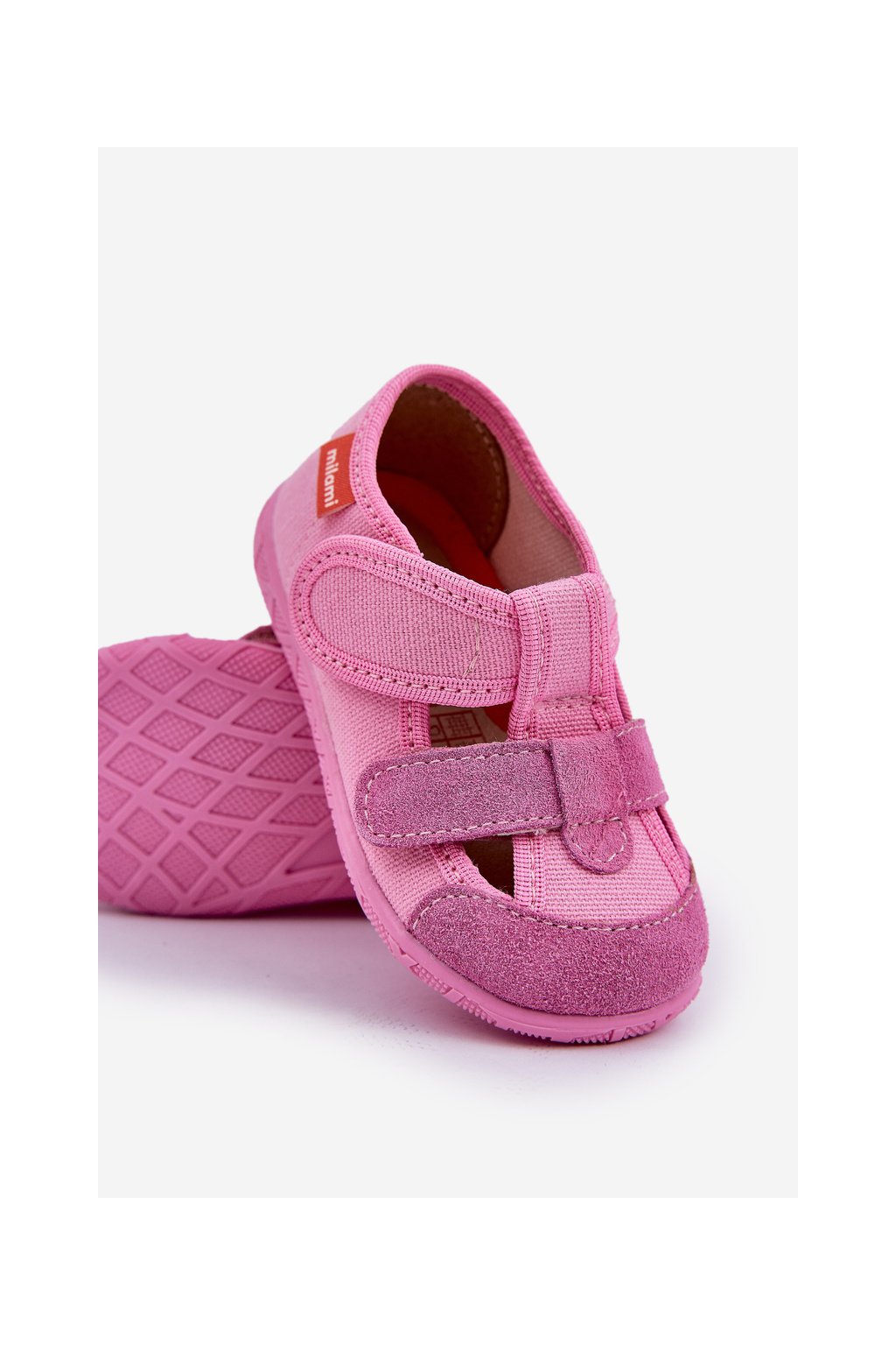 Ružové dievčenské papuče s prírodnou kožou, kód 118 PINK