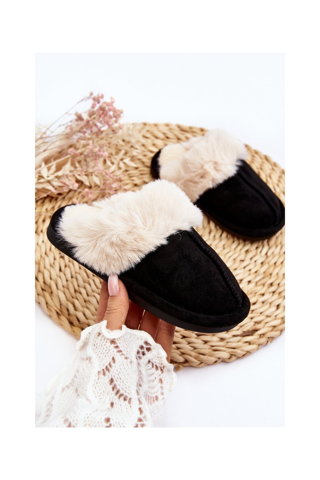Detské papuče s kožušinou čierne befana / EV-280 BLACK