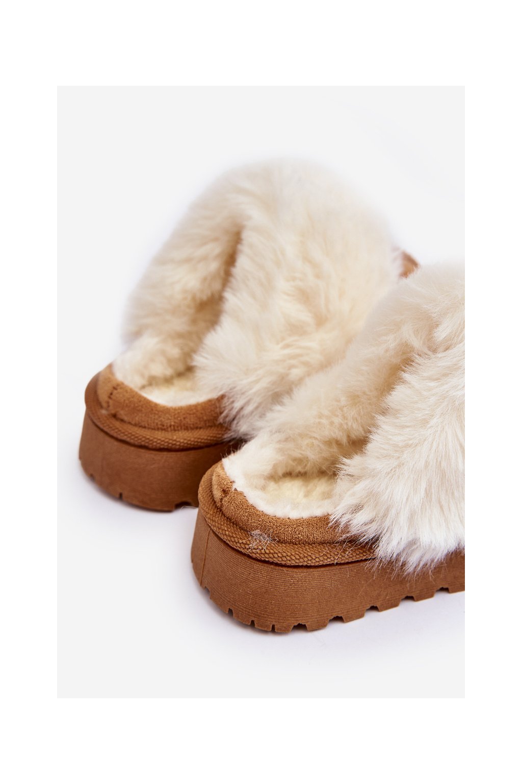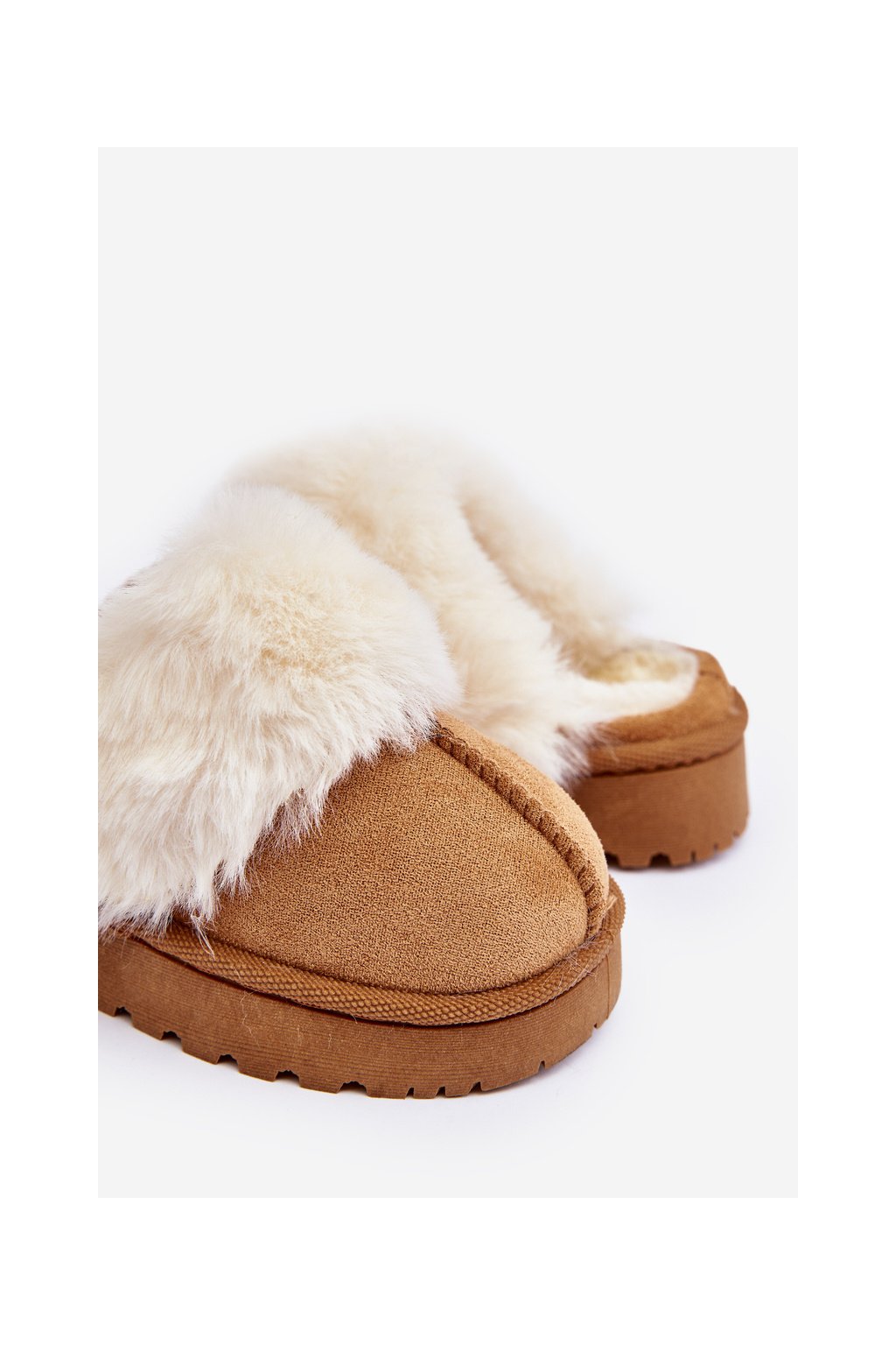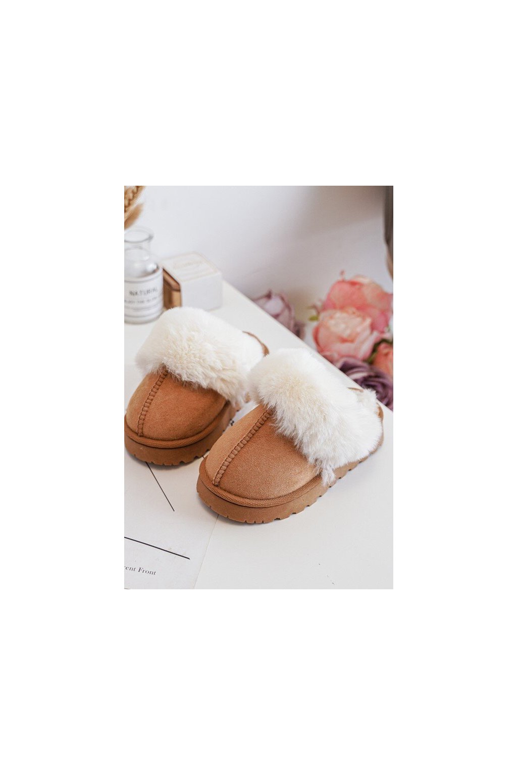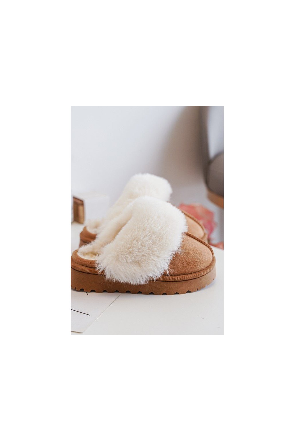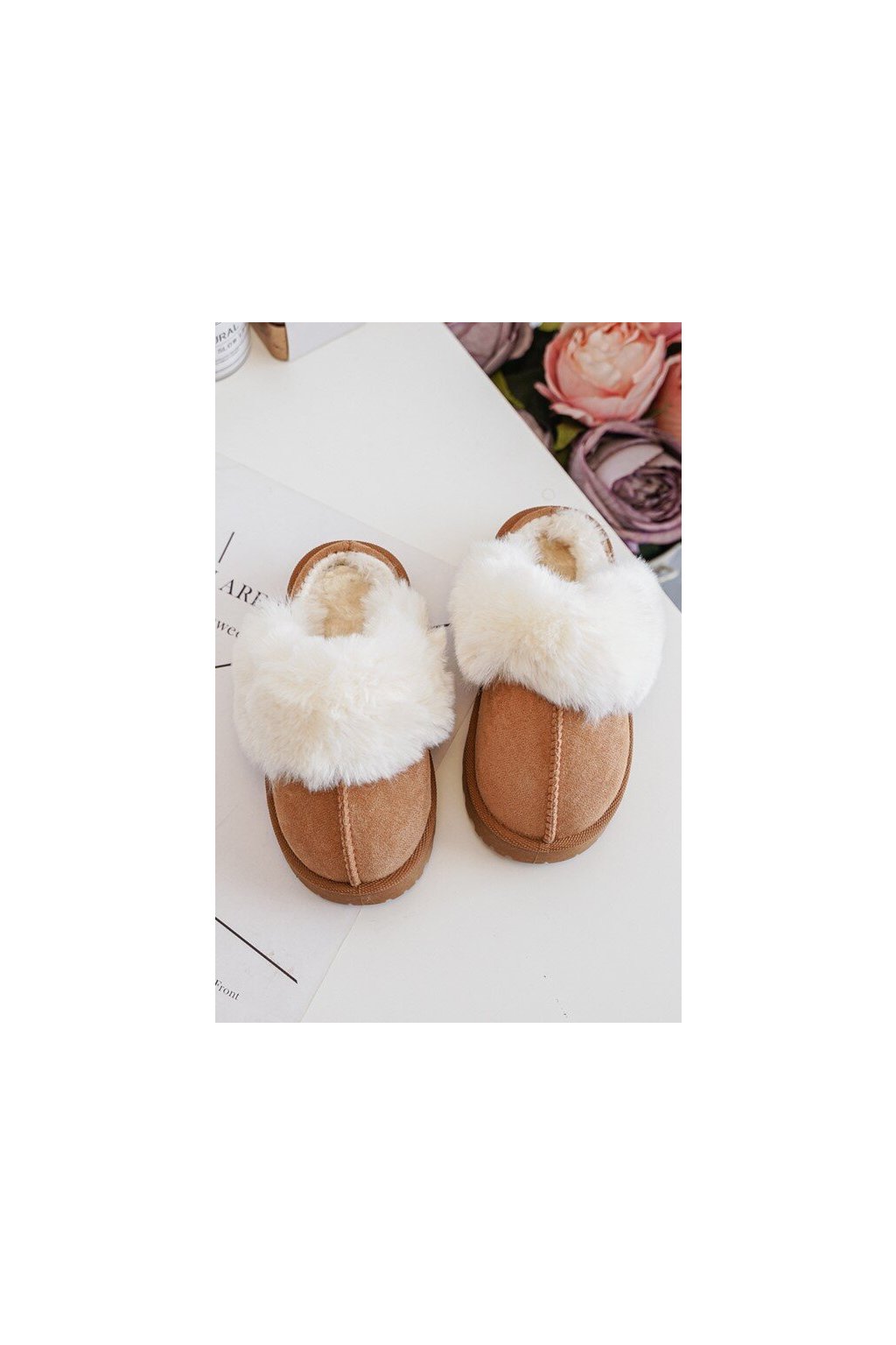 Detské papuče s kožušinou birasta / 2017-2B/3B CAMEL
