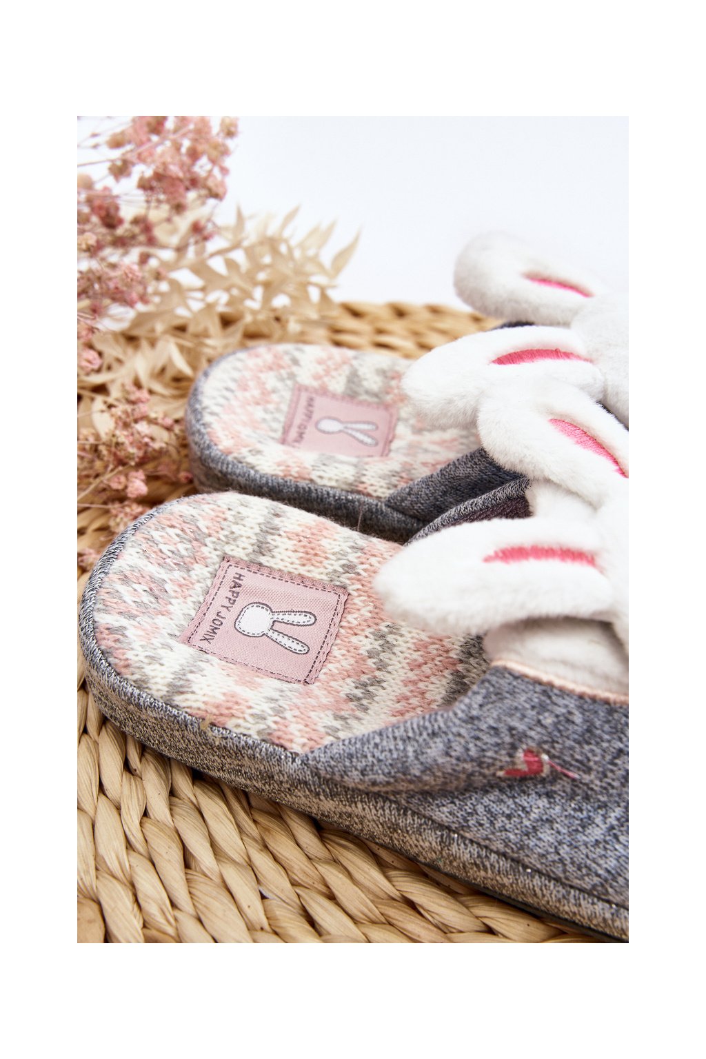 Detské papuče na tlusté podrážce králíčci šedé dasca / MB8514 LIGHT GREY