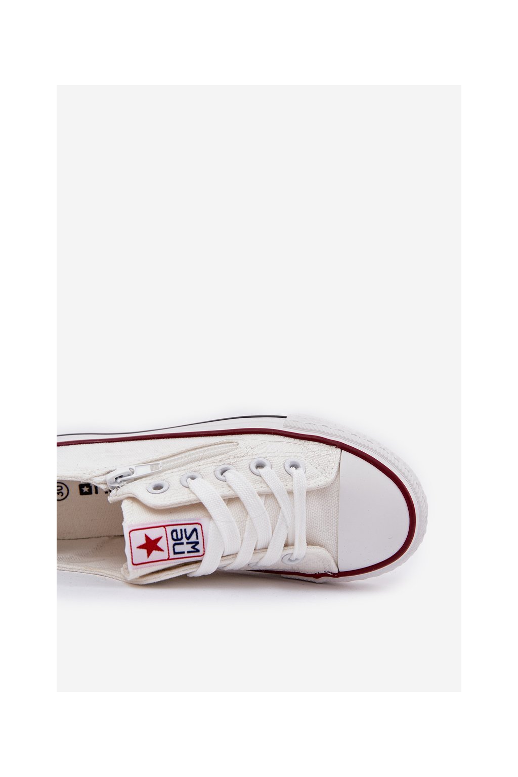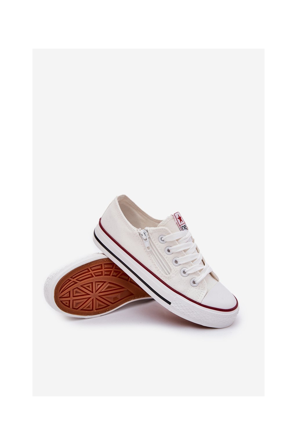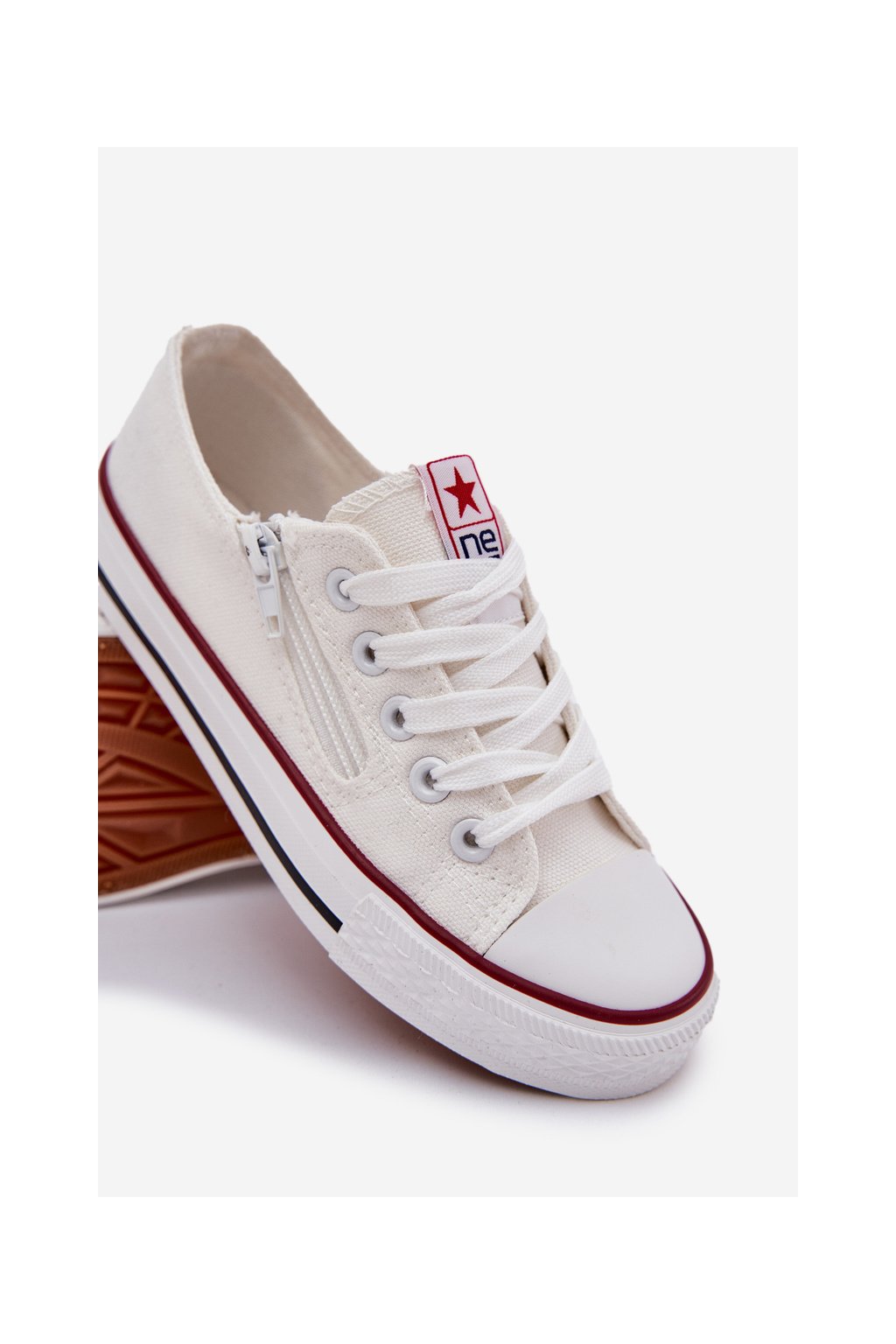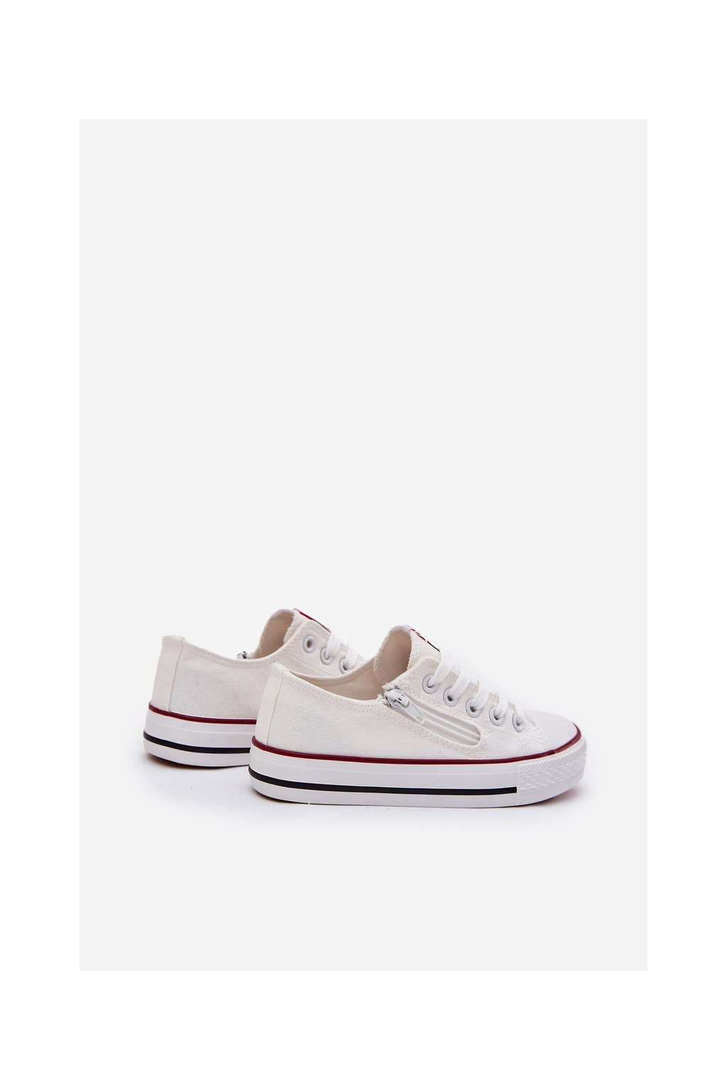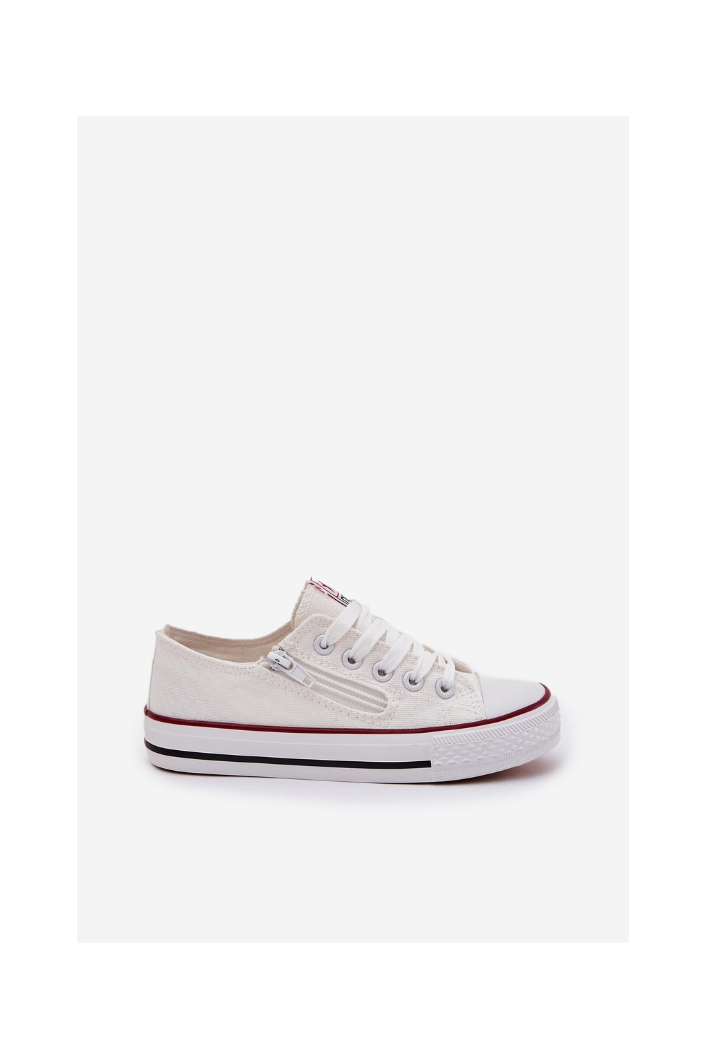 Biele detské šnúrovacie tenisky z textilu s rovnou podrážkou, kód produktu 22DZ02-1151 WHITE