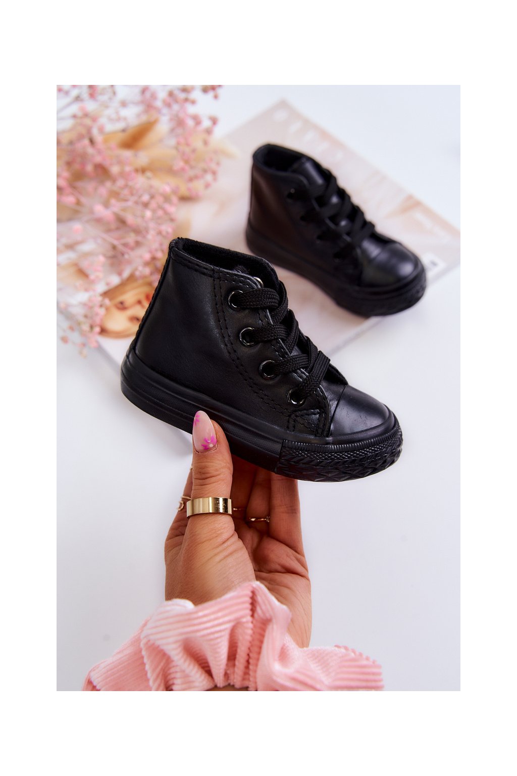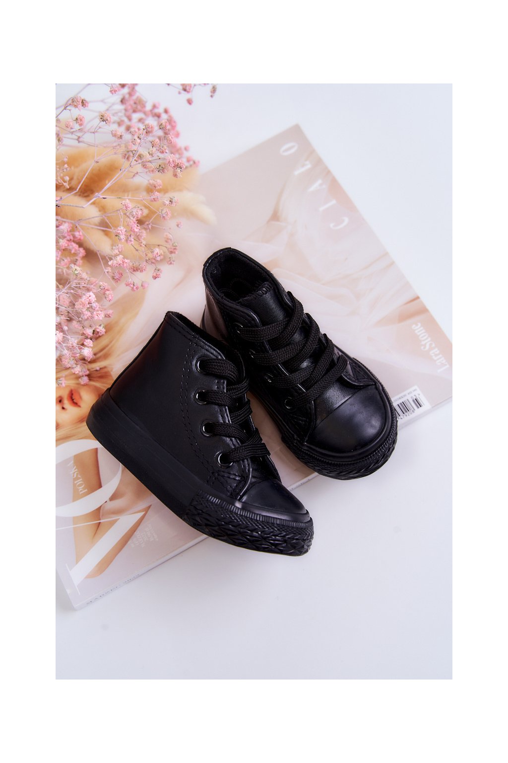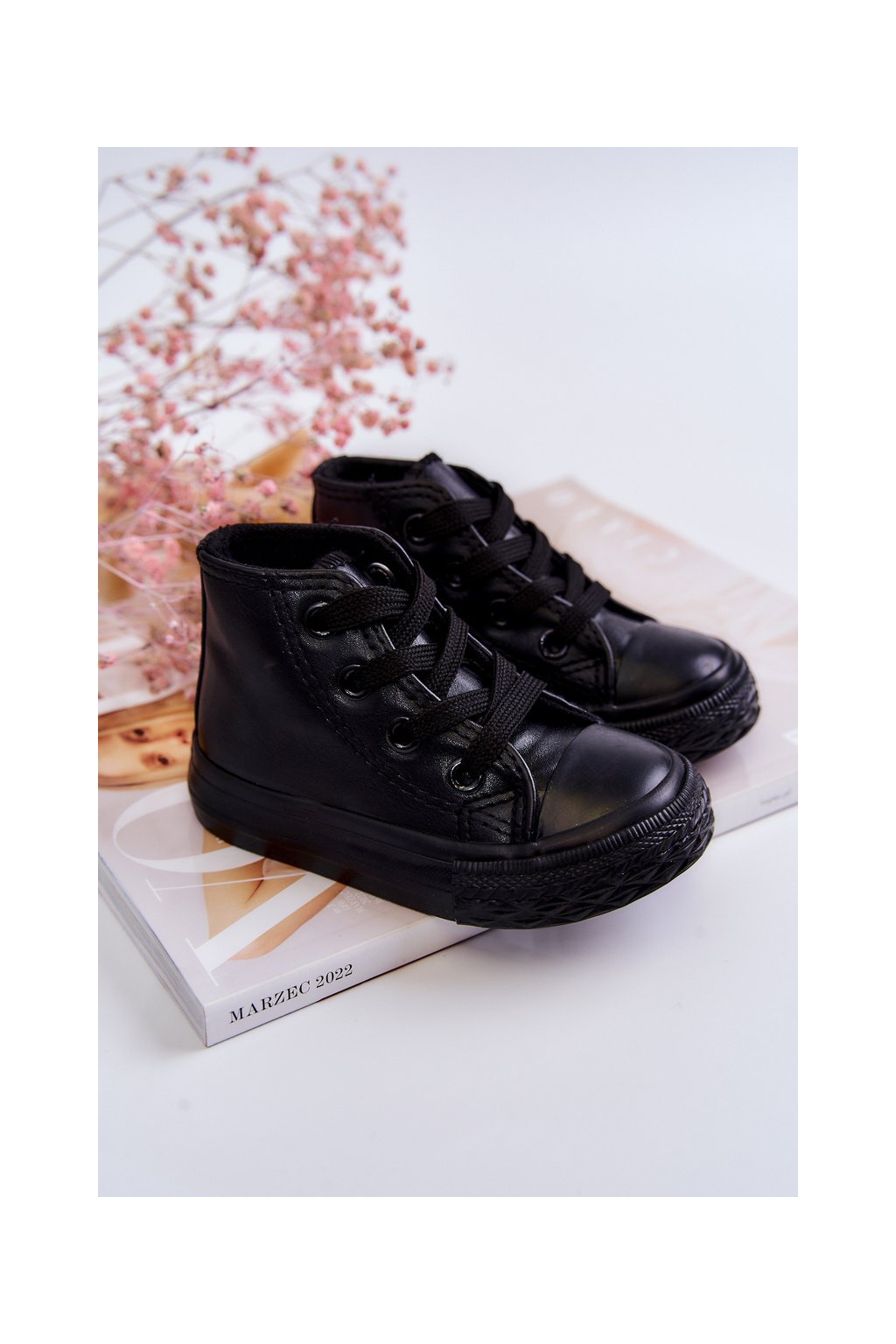 Detské kožené vysoké tenisky čierne marney / 875-A ALL BLACK