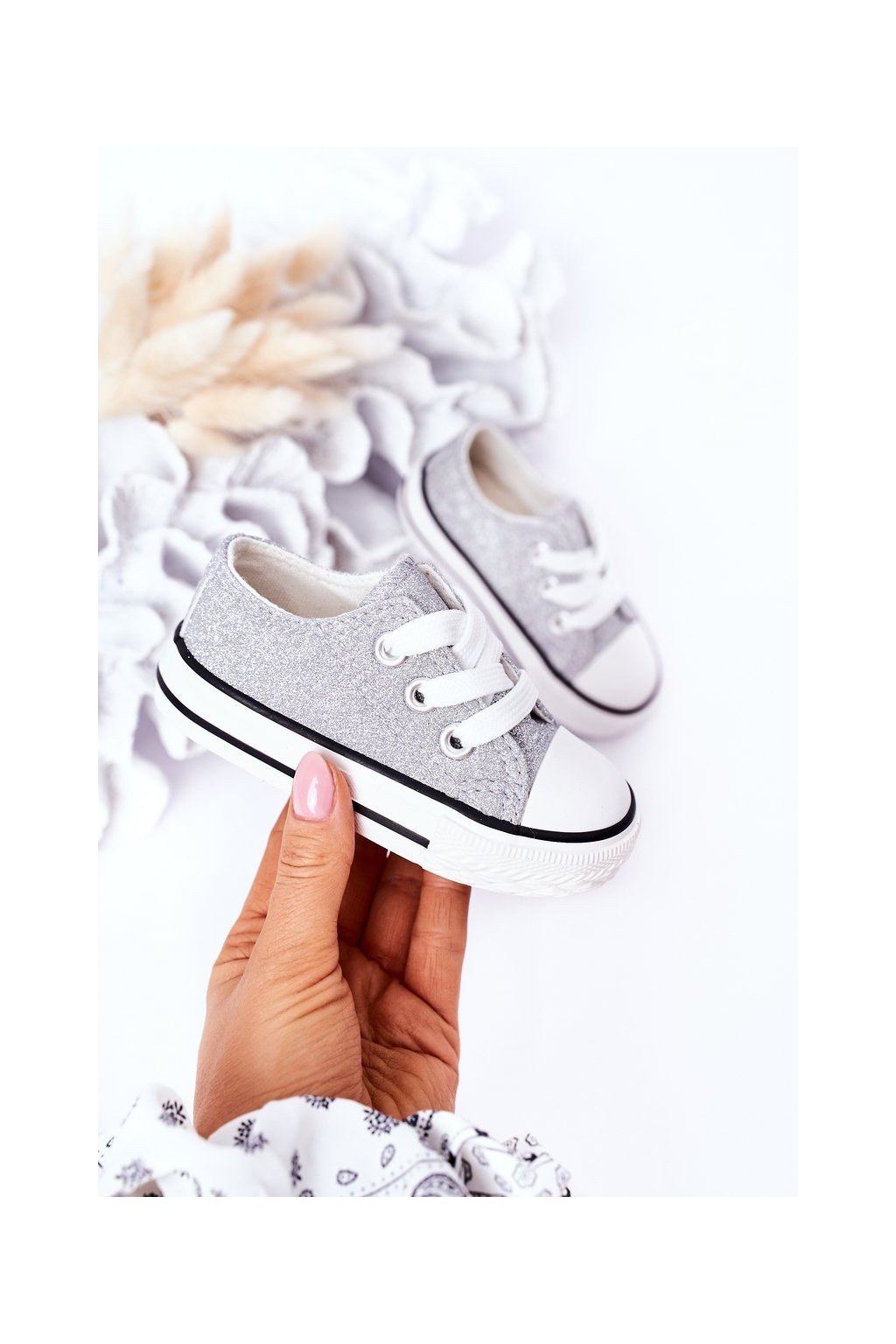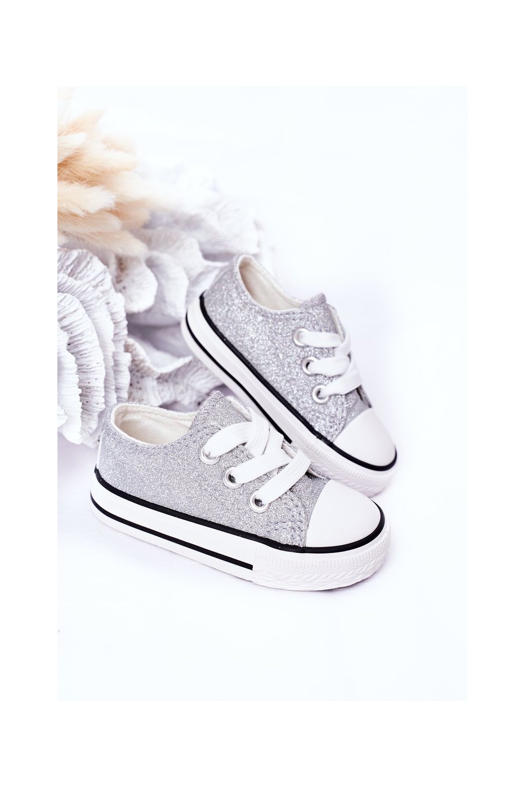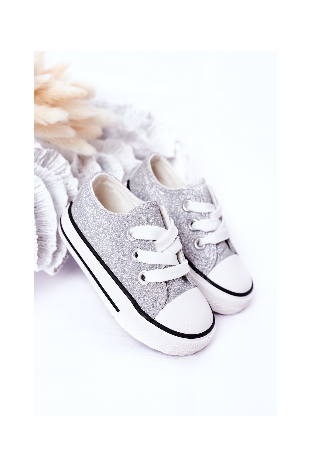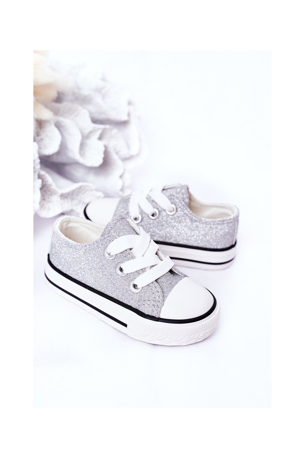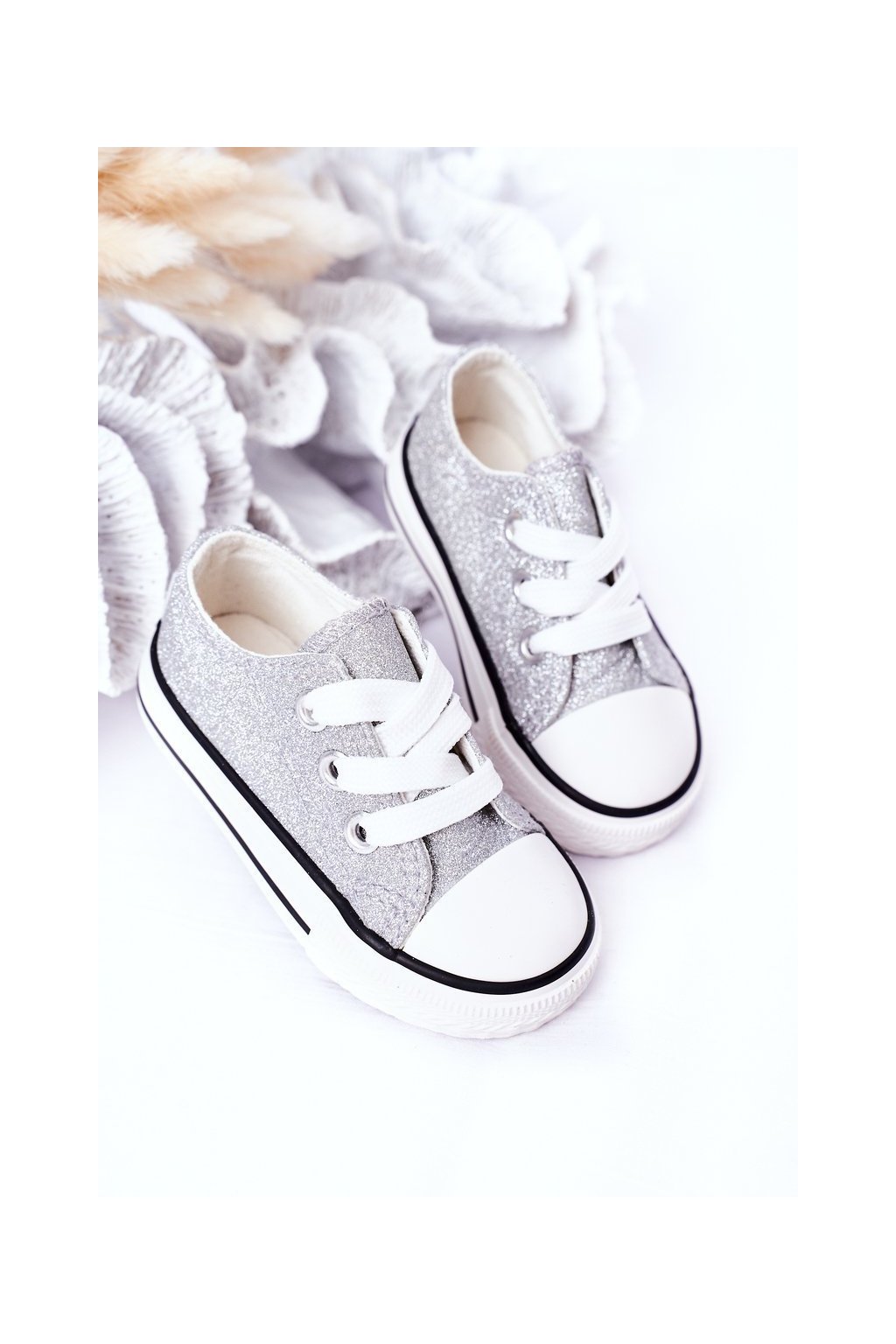 Detské brokátové tenisky strieborné bling-bling / 888-B SILVER