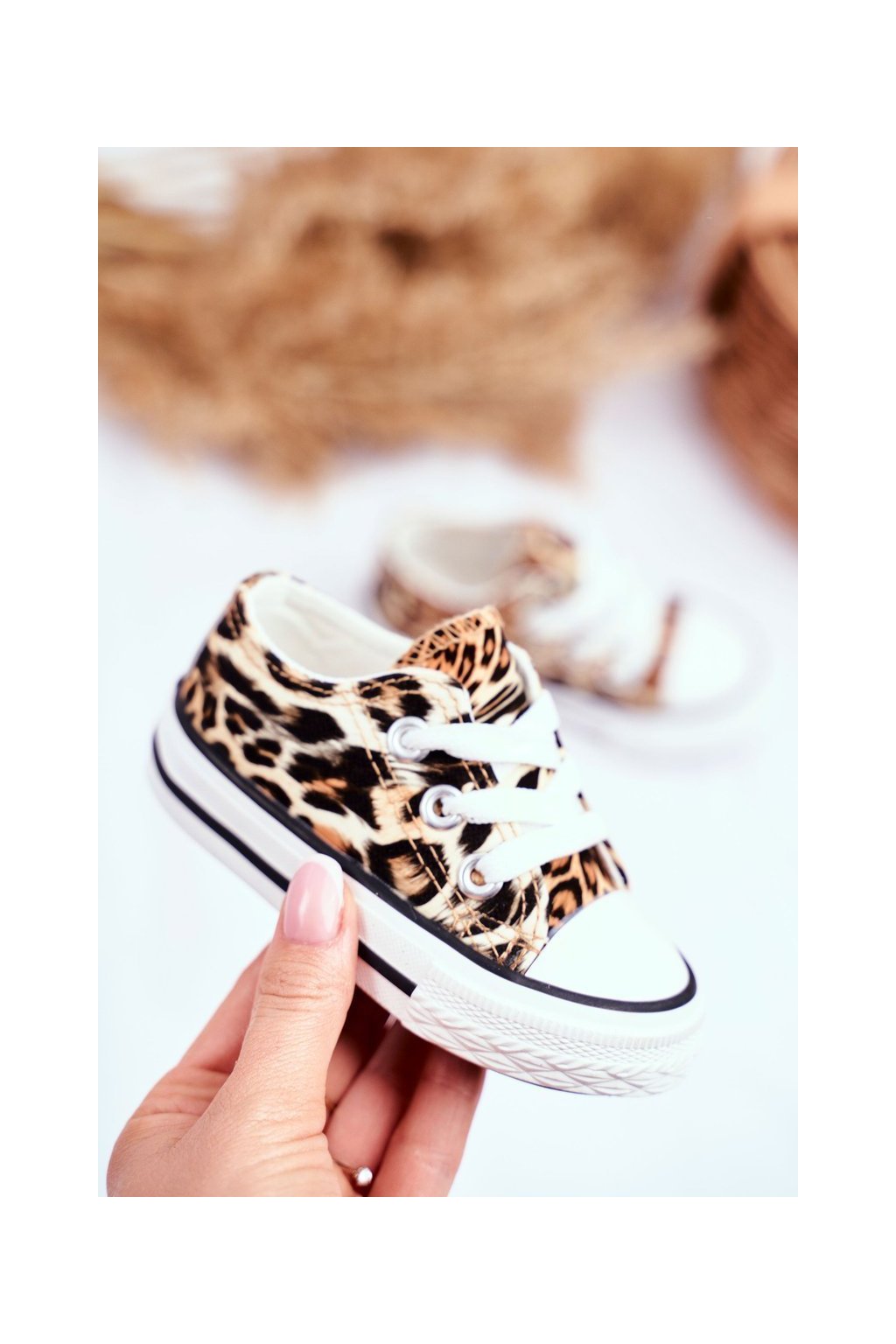 Dětské tenisky zdobené leopardím vzorem. Boty díky měkkému materiálu svršku dobře padnou do tvaru nohy. Tenisky mají protiskluzovou podrážku. Nezapomeňte se podívat na celou naši kolekci dětských tenisek! Při výběru velikosti použijte tabulku velikostí.